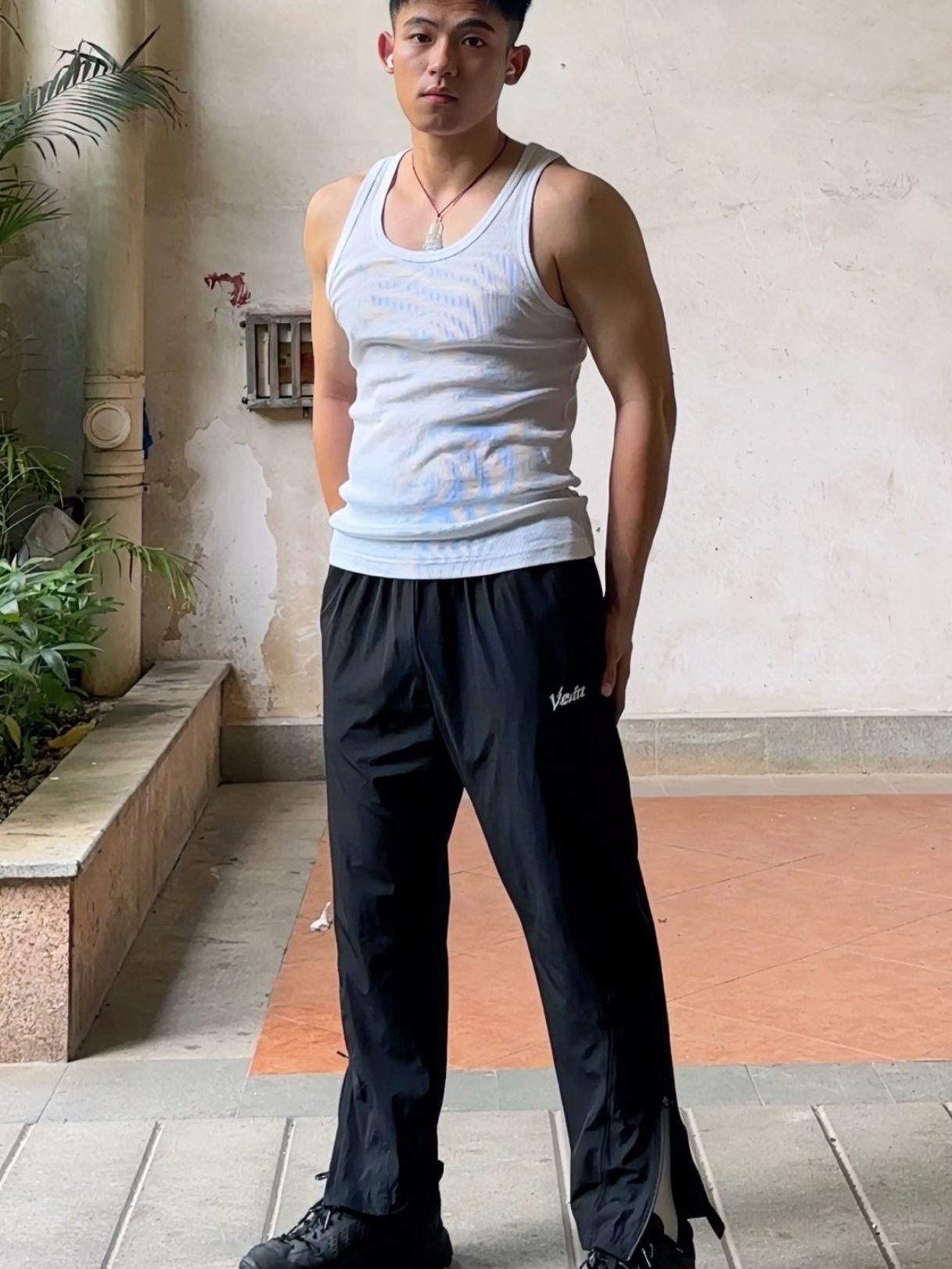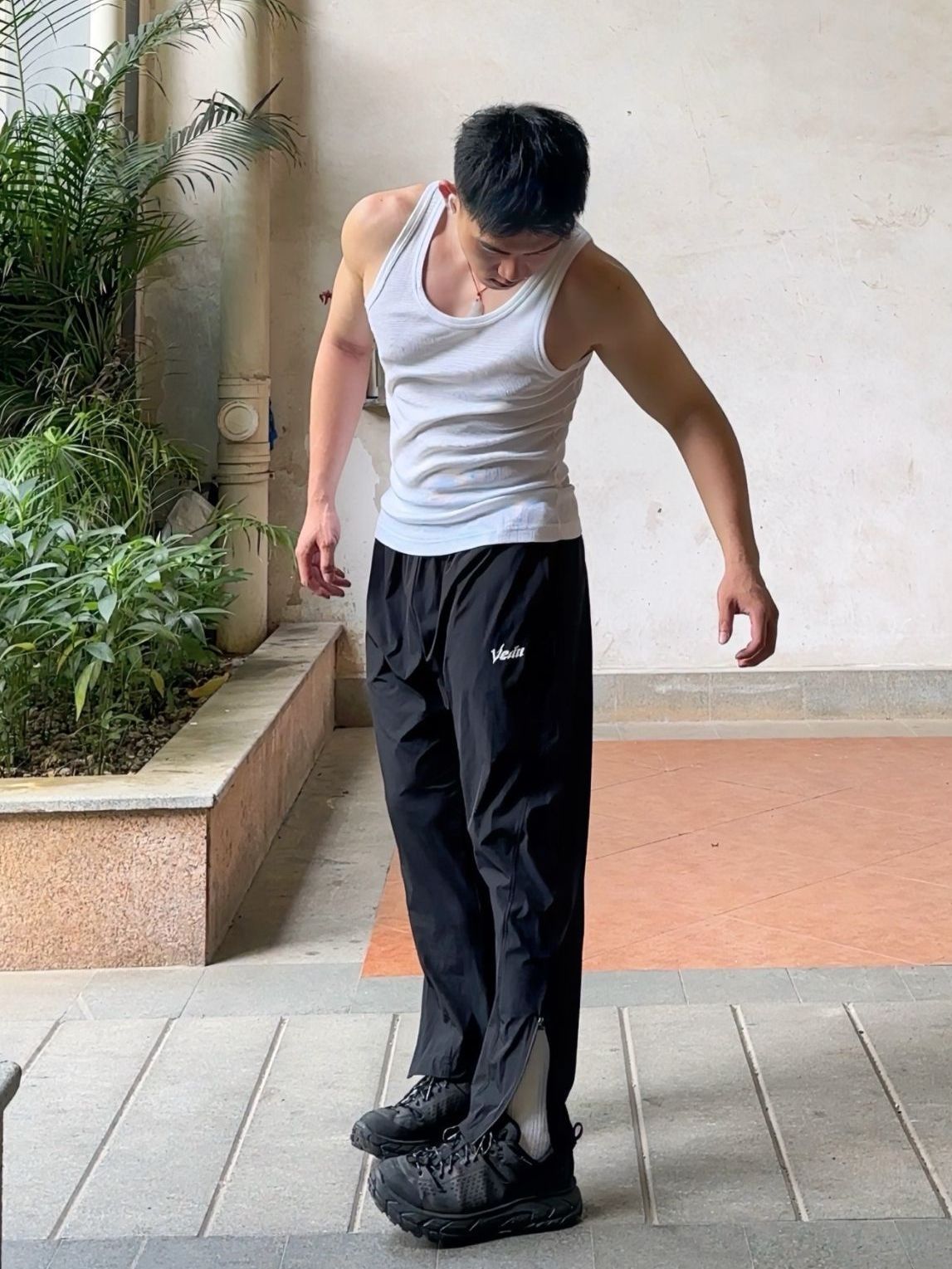 👦172/68 推荐个 白维动 VEIDOORN的更迭九分裤,弹性十足并且非常透气 裤角是拉链设计,直简九分裤的美式版型,非常衬腿型 上身简单搭配一件小背心就可以啦,我的身高体重裤子穿M码效果如图,硬朗帅气小哥哥此刻诞生 👔优衣库👖维动👟hoka 图源网络侵删