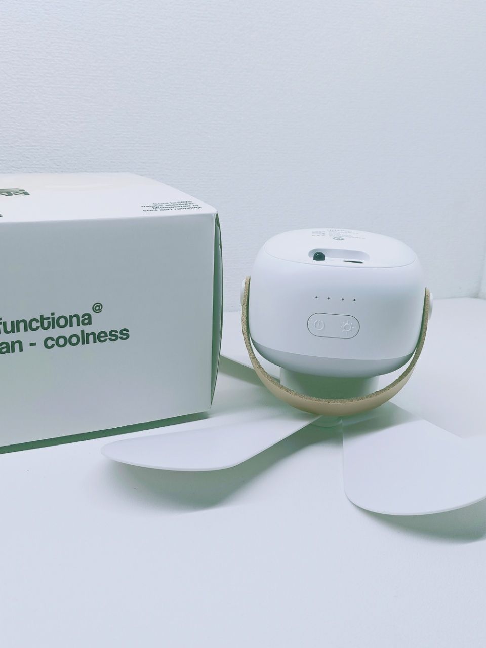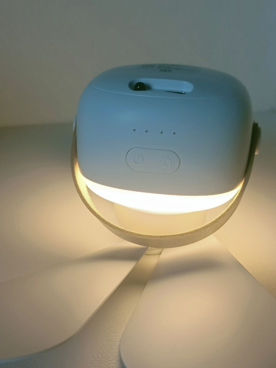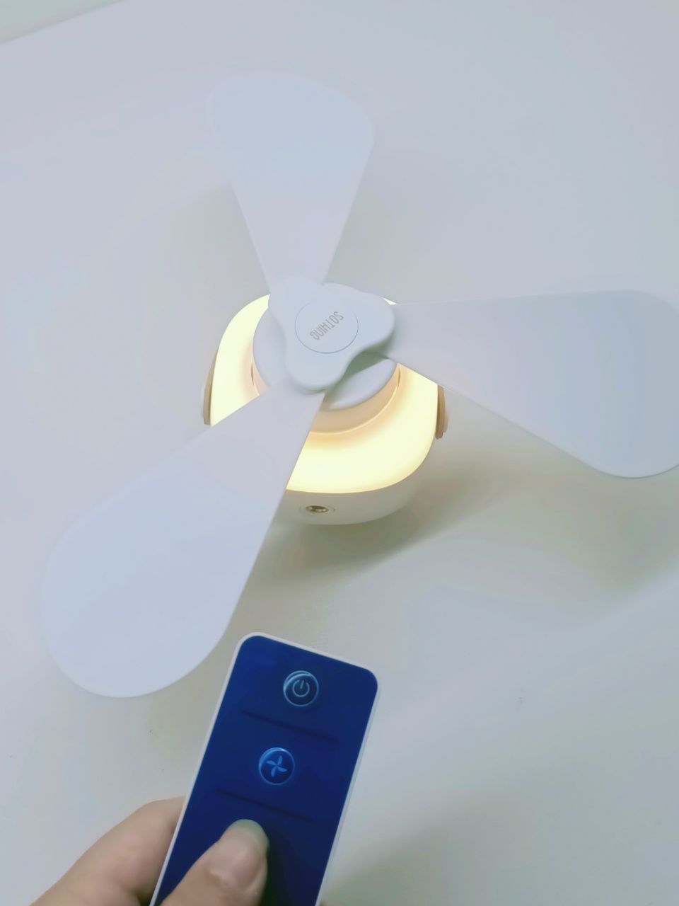 以为只是个小吊扇,没想到还是一个小夜灯! 属实是没想到!小小的惊艳到了~ 整体白色的搭配,简单又好看☺ 而且风力有四档,其中一个还是非常贴心的睡眠模式 小夜灯也是三档调节,是很柔和的暖光灯 哇塞!还有个遥控器,可以远程控制,也就不用特地去开关啦~很省事儿 一整个爱/:pig