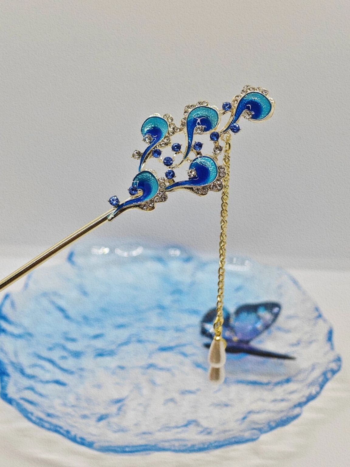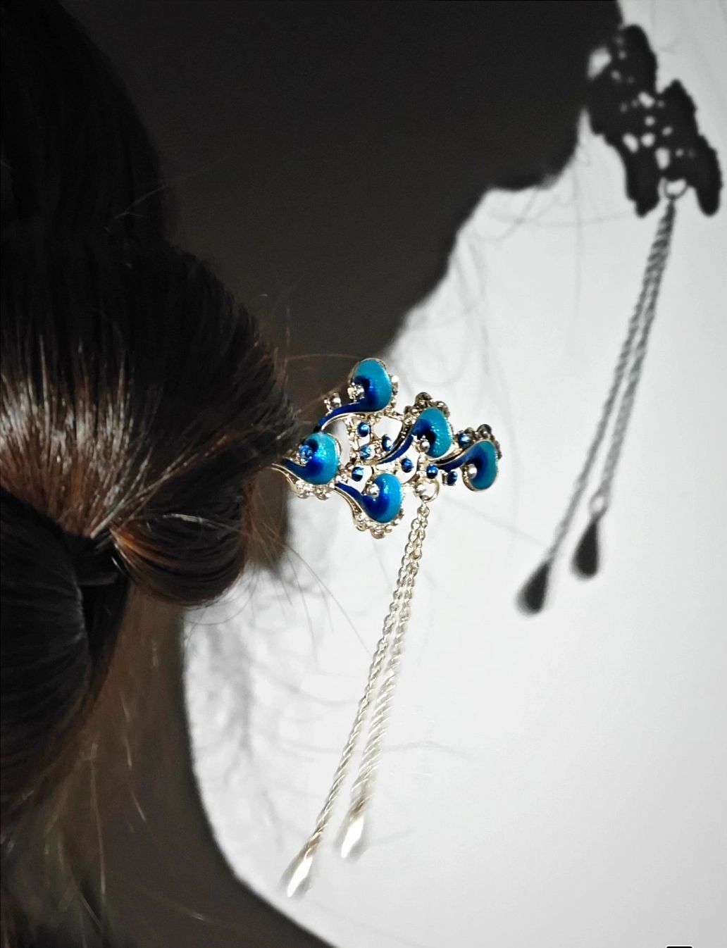 疯狂安利刚入手的新中式发簪!真的巨巨巨美!! 本人蓝色控!看到这款海浪流苏发簪的第一眼就被迷住啦! 这个渐变蓝超级好看,很干净大气!对于一位蓝色控说,简直是精准的击中我的心巴!看着它感觉心情都变好啦! 而且这个发簪的细节感也很赞,簪子海浪的周围镶嵌着小“钻石”,戴着它走在阳光下,反射的闪光,精致又俏皮。或许对于有像我一样超级爱拍照的女孩子来说,拍照超级出片!特别是搭配上新中式风格穿搭,拍好直接ku...