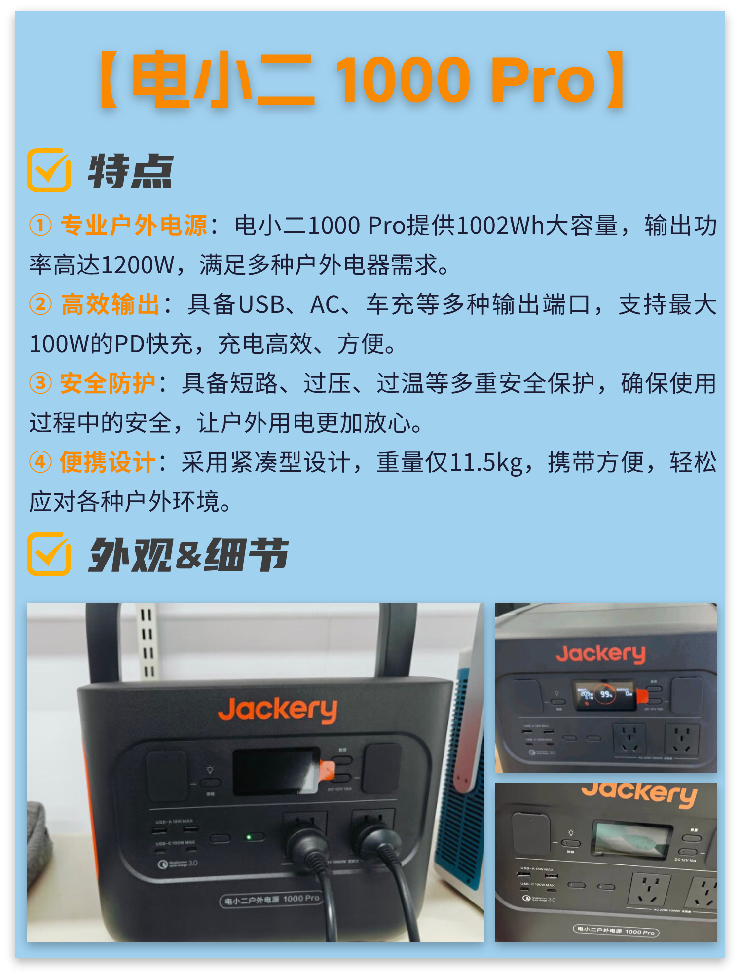 本篇笔记关联了电小二 1000Pro 1000W 户外电源 轻便小巧 一拎就走 黑橙色、电小二 2000PRO 1000W 户外电源 大功率 大容量 黑橙色等商品,为用户提供真实的使用体验和购买参考。