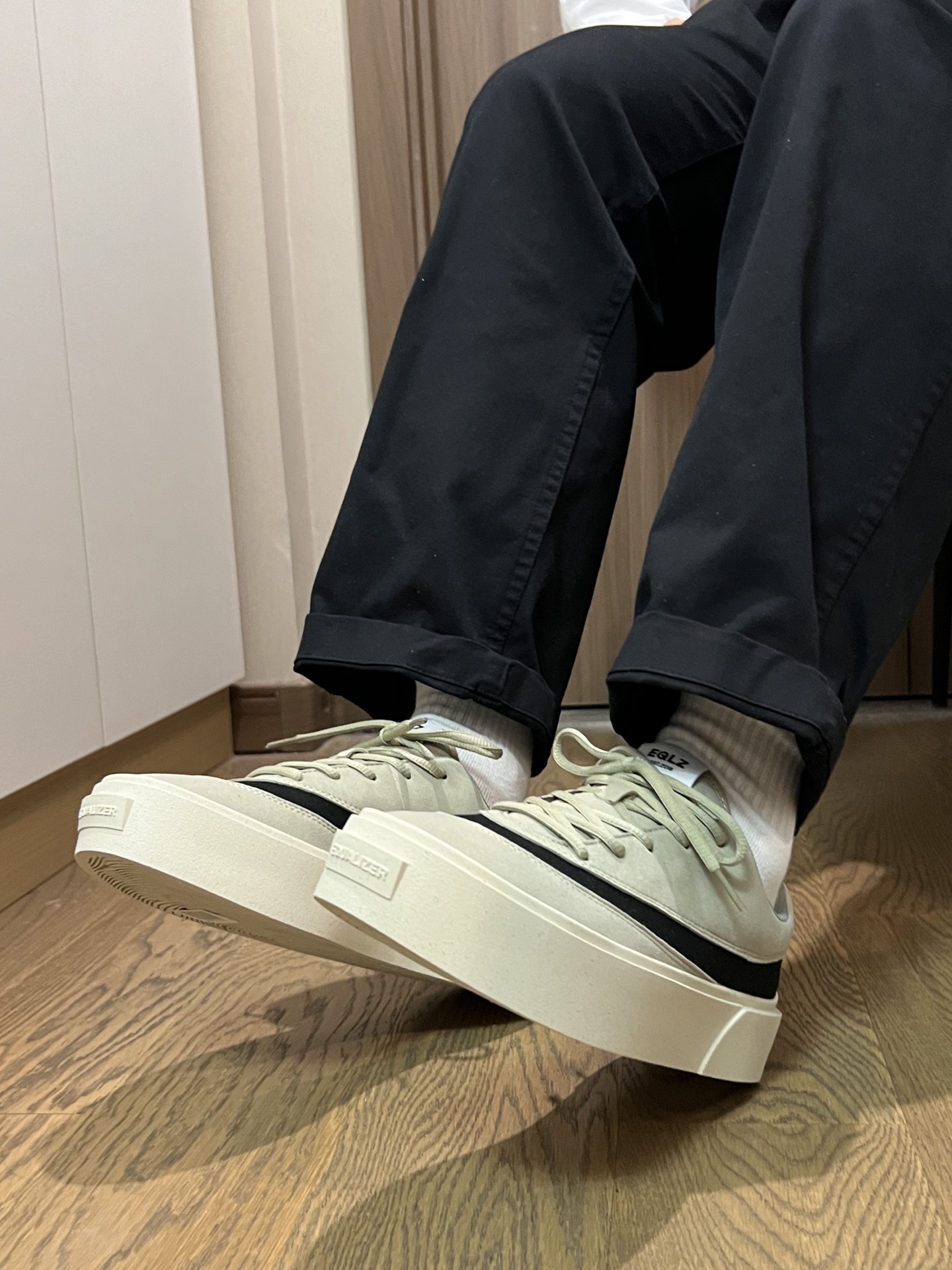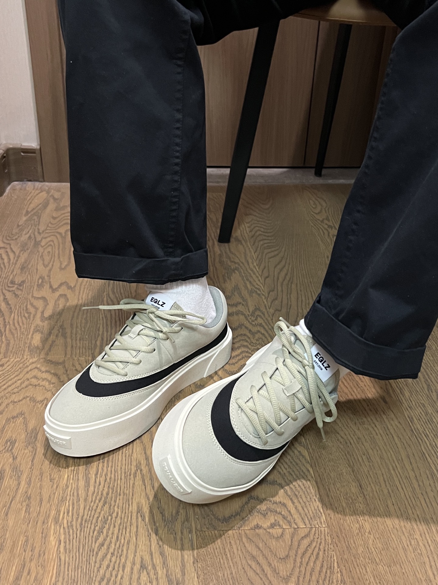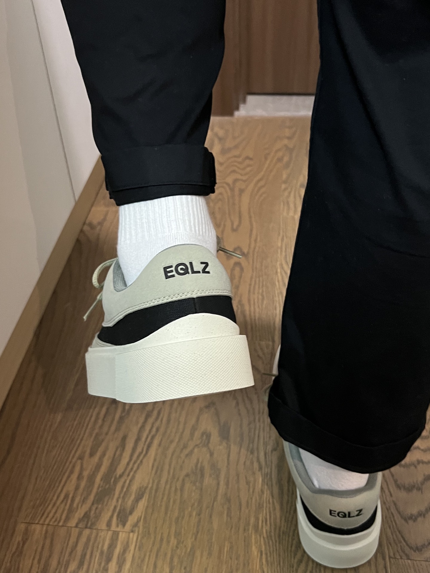 #晒鞋底挑战 最近非常流行晒鞋底挑战 我不得不拿出我刚入手的EQLZ新品~ 喜欢潮流美式风的给我来看看🫰抹茶🍵色配黑色 居然一点都不违和💕 平时搭配工装裤都很不错 我们一起来看看上脚效果吧✅ #EQLZ板鞋 #上得物入手好鞋男女同款 #夏日宝藏帆布EQLZ #520送ta什么好
