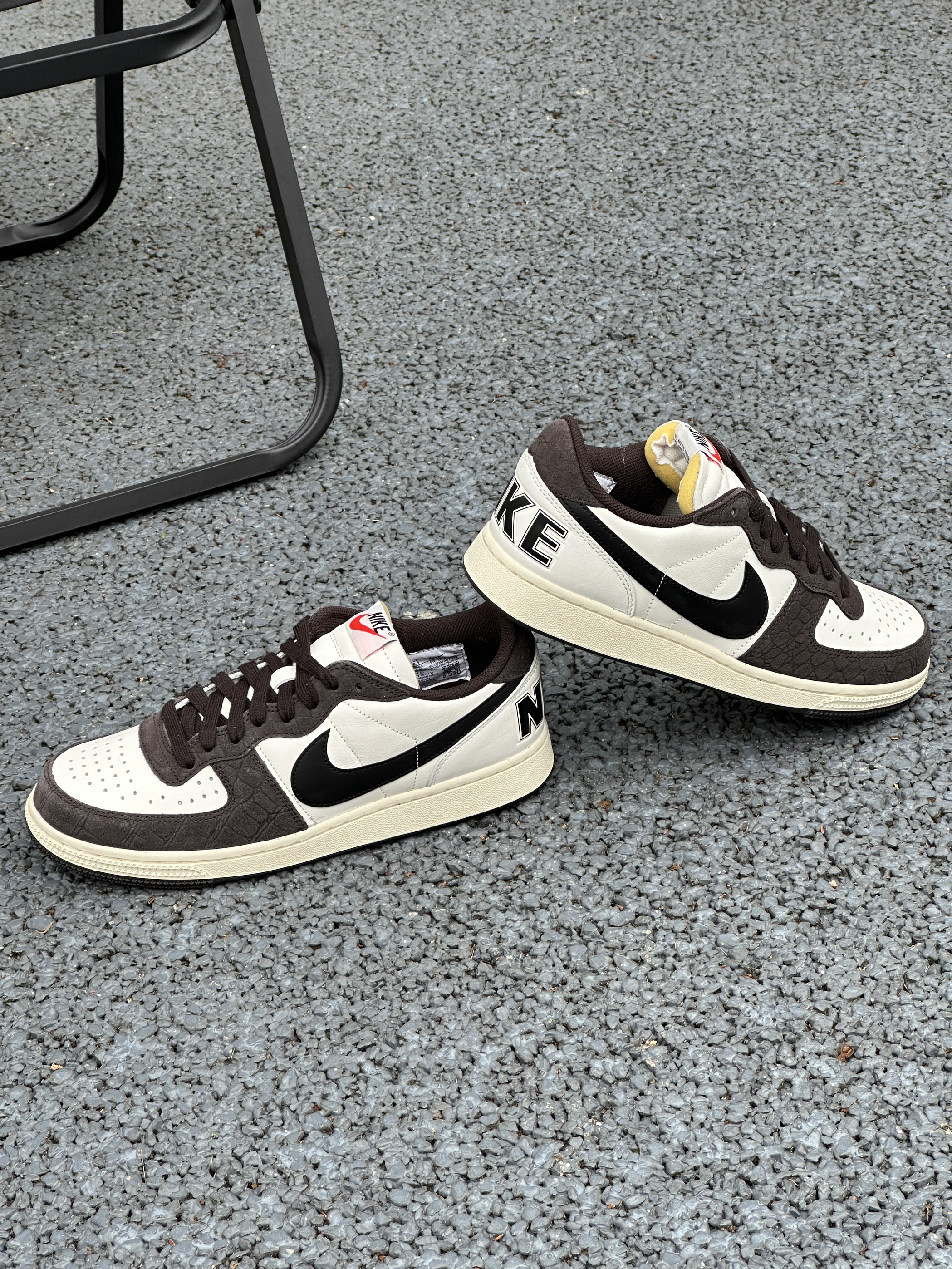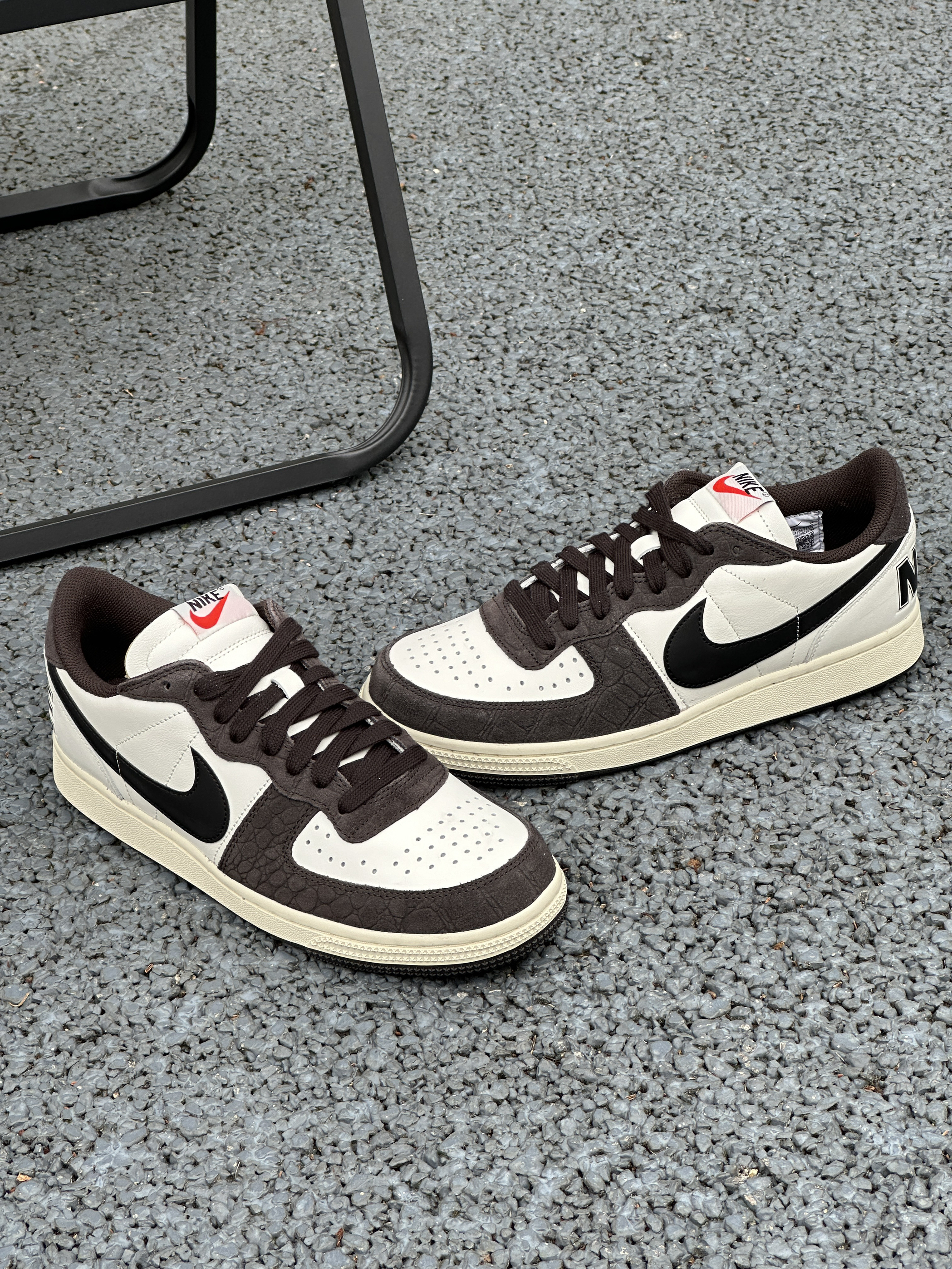 👟:Nike Terminator "Brown Croc"摩卡 低帮板鞋 男女同款 棕 hello,这里是陈白羊🐑!今天给大家分享一款最近比较喜欢的Nike Terminator丝绒摩卡☕️ TA的鞋面整体由白色🤍为主调,搭配上摩卡色的框架,细节部分则是辅以黑色修饰,以及自带氧化效果中底与麂皮材质的组合,可谓是将复古气息完美演绎,高级感十足。 外露式海绵🧽鞋舌设计,一定程度的提升了穿着的舒...