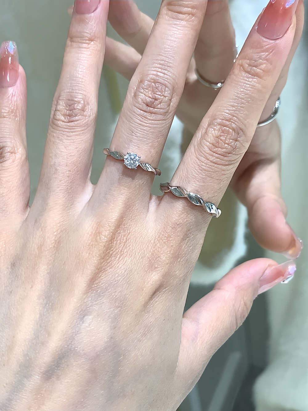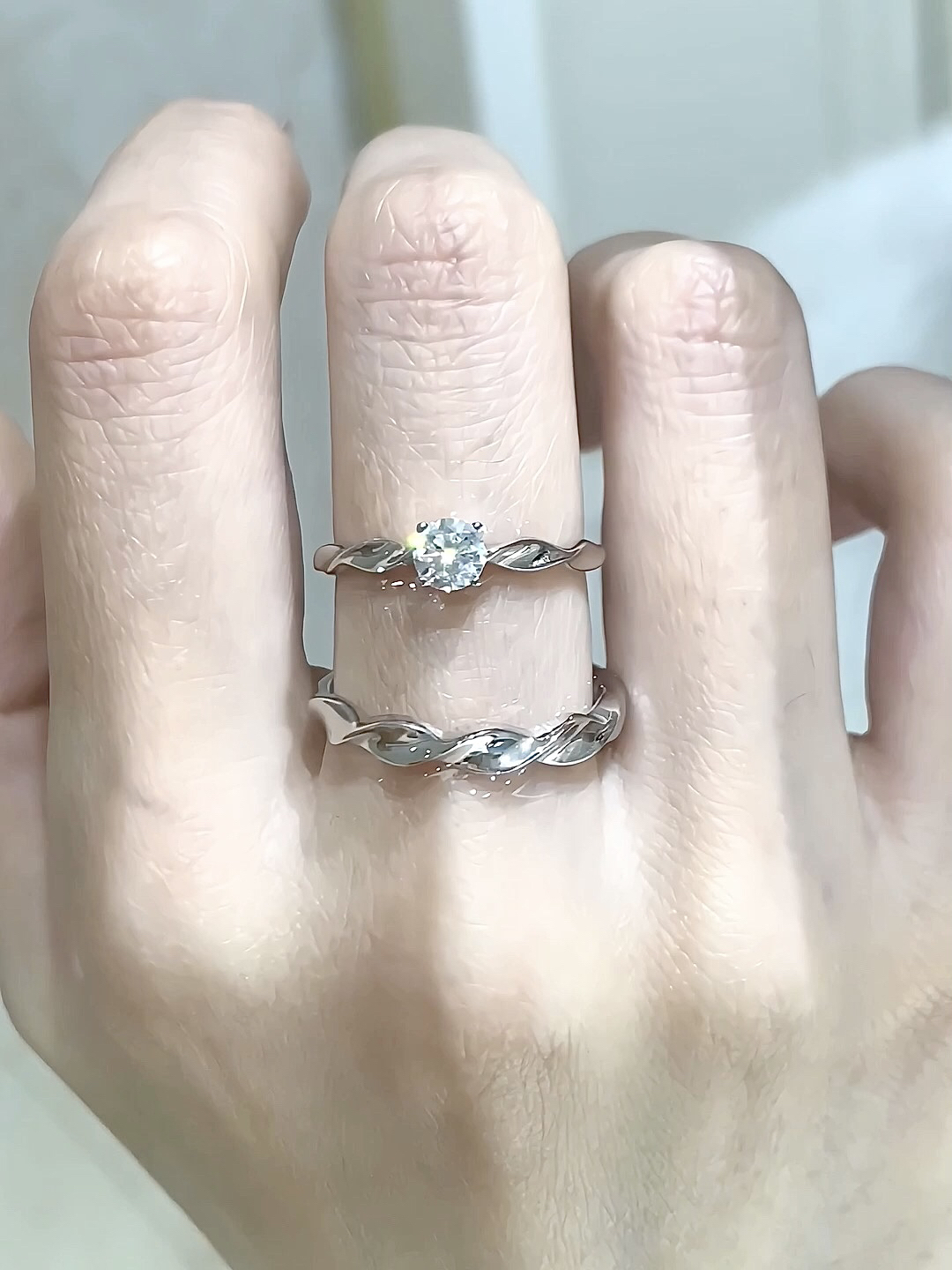 好耐看的一对戒指~ 单钻真滴好大气 很闪,戴在手上存在感也蛮强的 戒环也好精致 这对挺适合表白的!