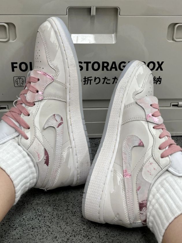 好好看的鞋子,一整个爱上了!!! 樱花粉的鞋子真的好美,淡淡的粉色,Nike的标还用了辐射累的设计,真的好喜欢,520送这双也好合适。#Aj1low粉白 #aj1low马卡龙 #AJ11樱花康扣 #AJ312粉白 #aj11粉蛇