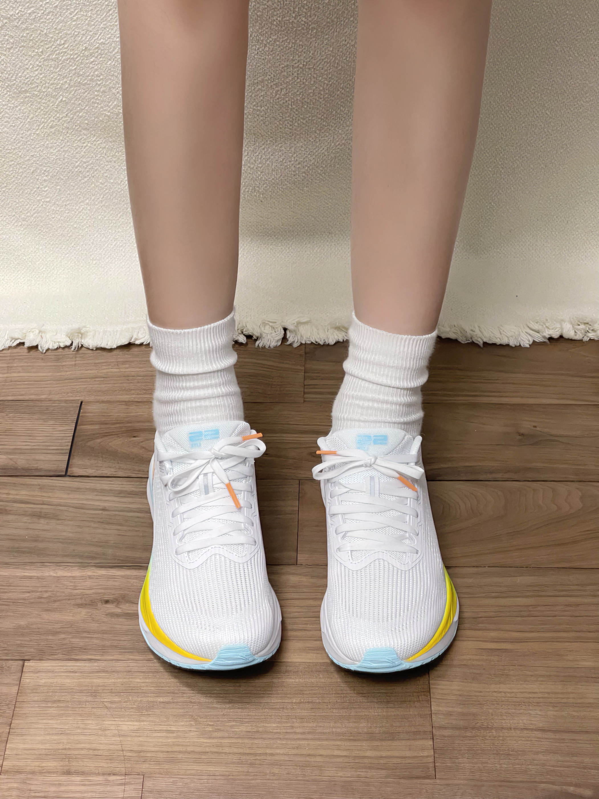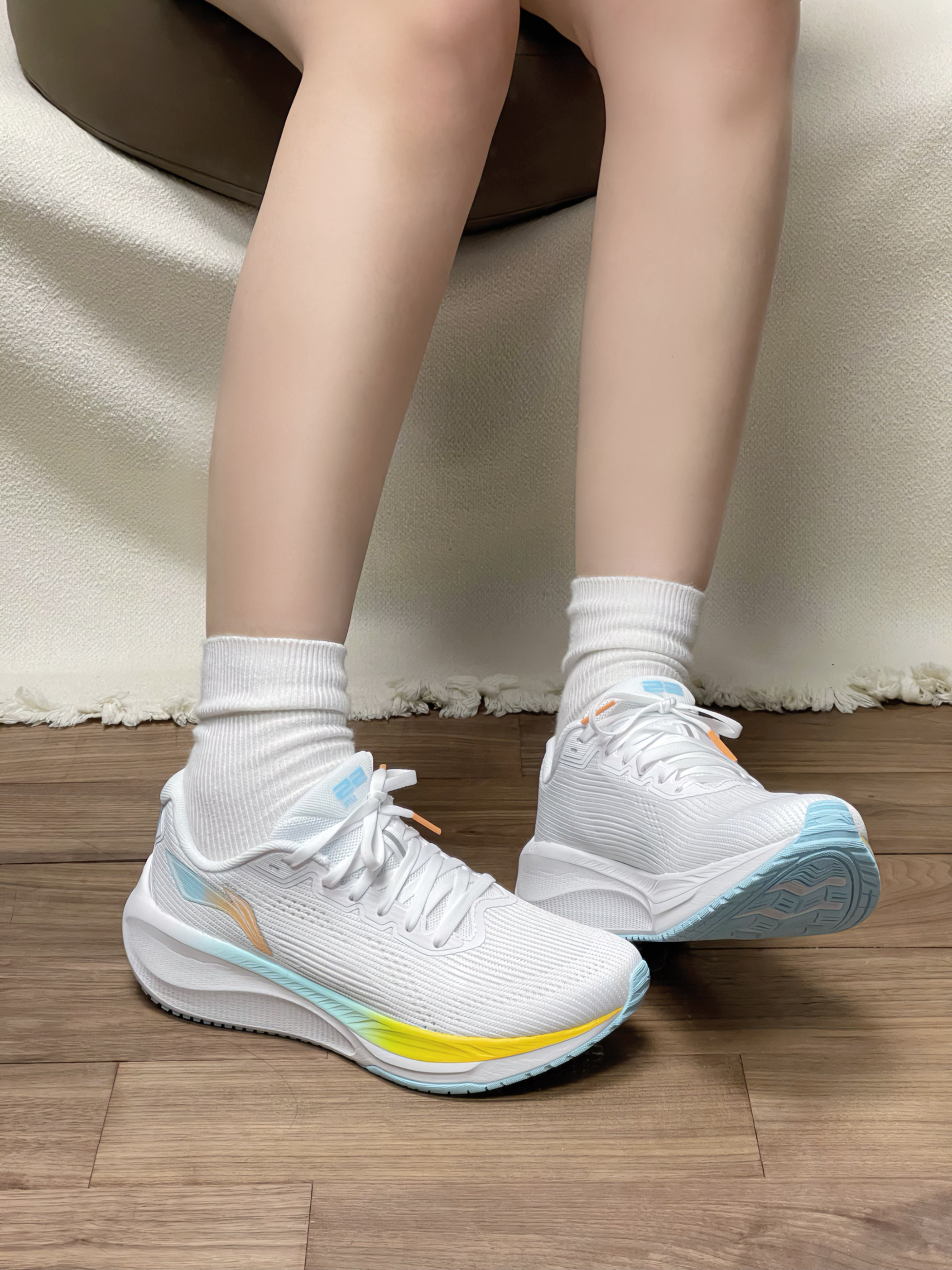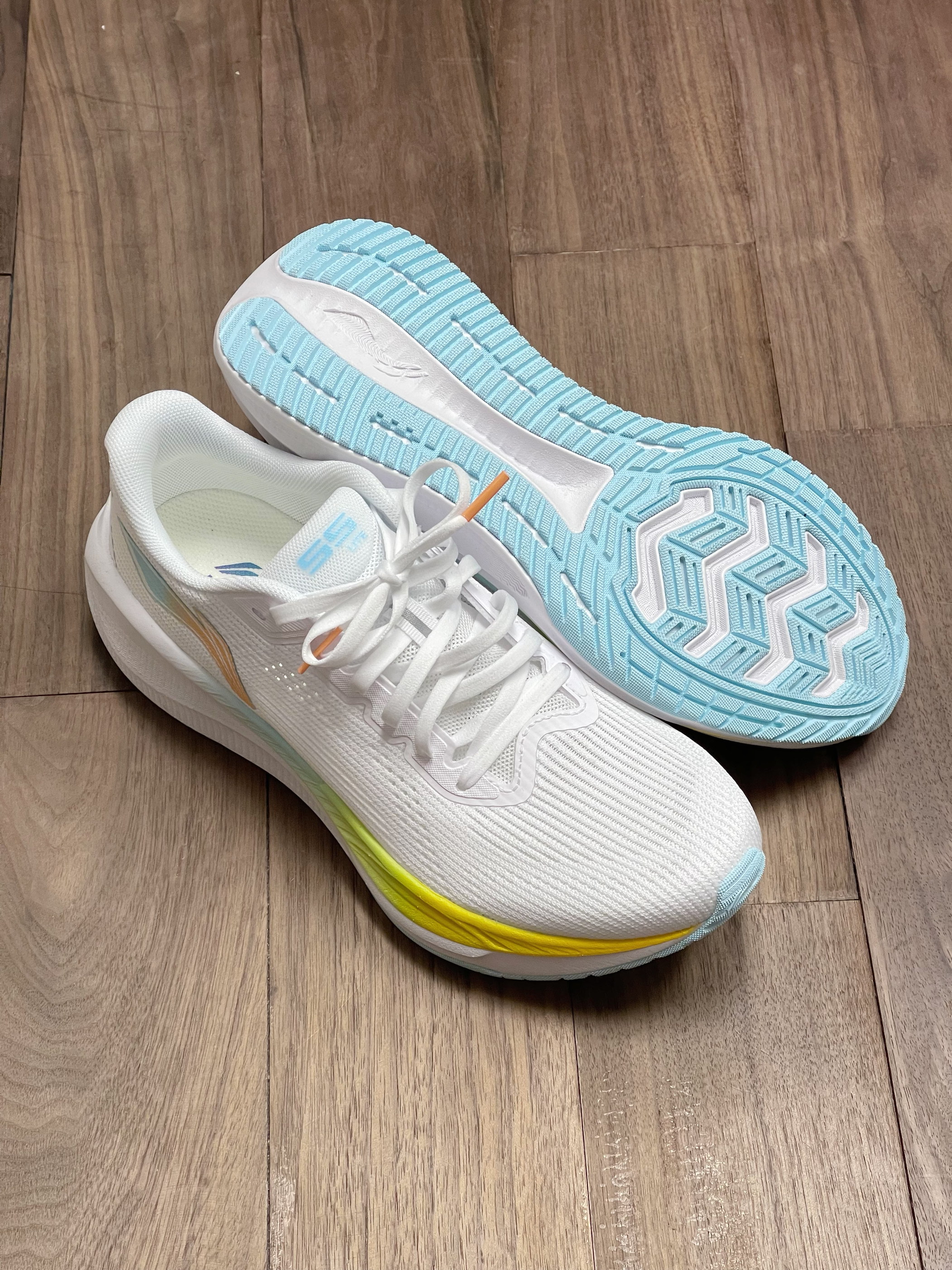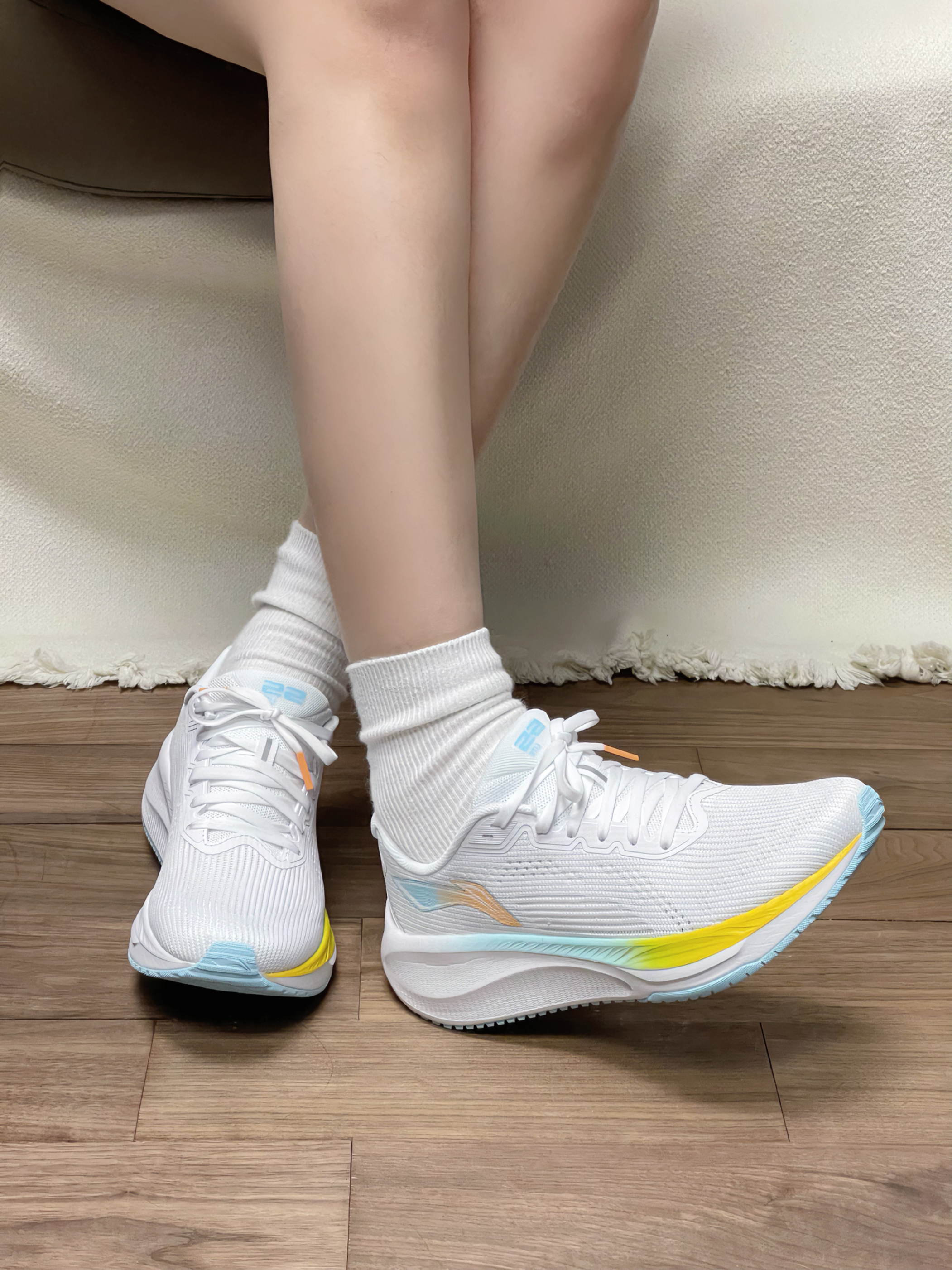 姐妹们!!!李宁吾适LITE 2.0这双跑鞋真的有点东西的!! 鞋底又轻盈又Q弹,回弹嘎嘎好~ 长时间跑步一点不累脚,减震也蛮好滴! 它的橡胶鞋底敲耐磨!防滑度也都很🉑️ 鞋面是轻薄网面的,这点我很喜欢! 运动出汗也不会闷jiojio 颜值也是尊嘟很高! 奶fufu的米白色➕蓝黄的撞色还蛮吸晴的! 运动跑步or日常搭配穿都ok!