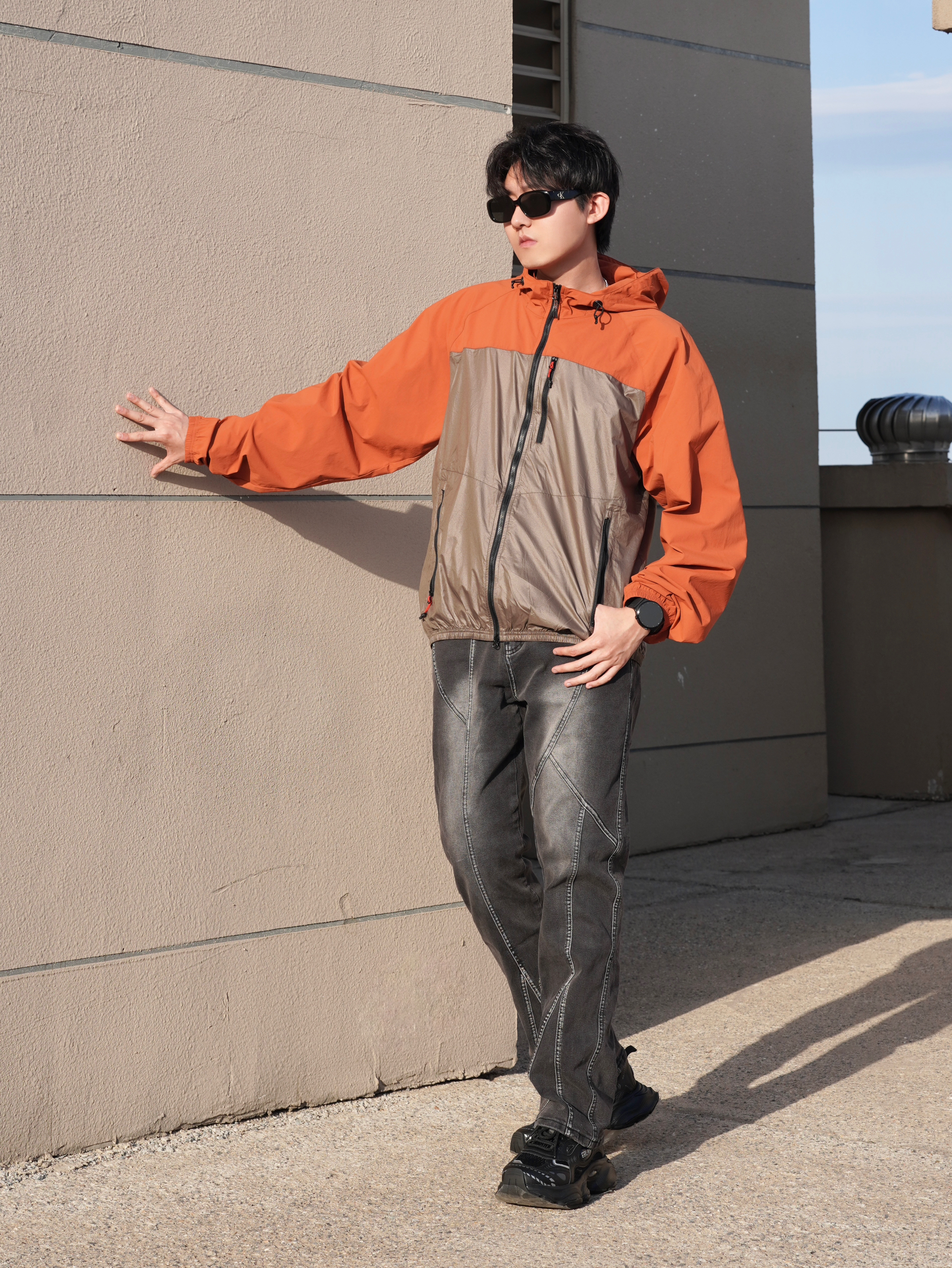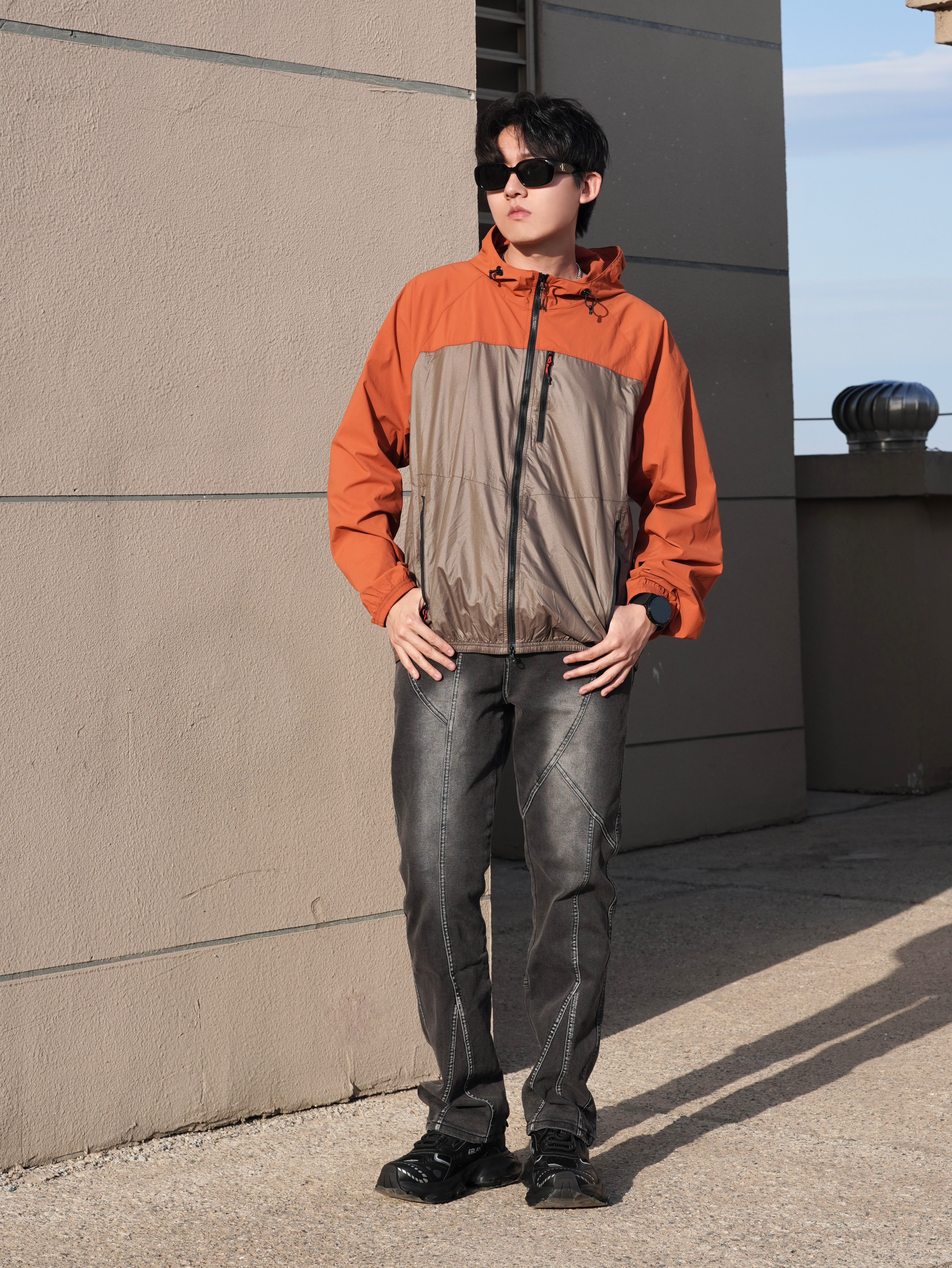今天来给大家分享我的日常穿搭 希望这一身搭配能对你有所帮助 衣服上身山系户外骑行防晒服 撞色设计时尚感满满 轻薄面料夏季穿透气舒适 版型宽松非常百搭 裤子搭配一条黑色工装风牛仔裤 不规则线条设计感十足 户外搭配简直不要太酷