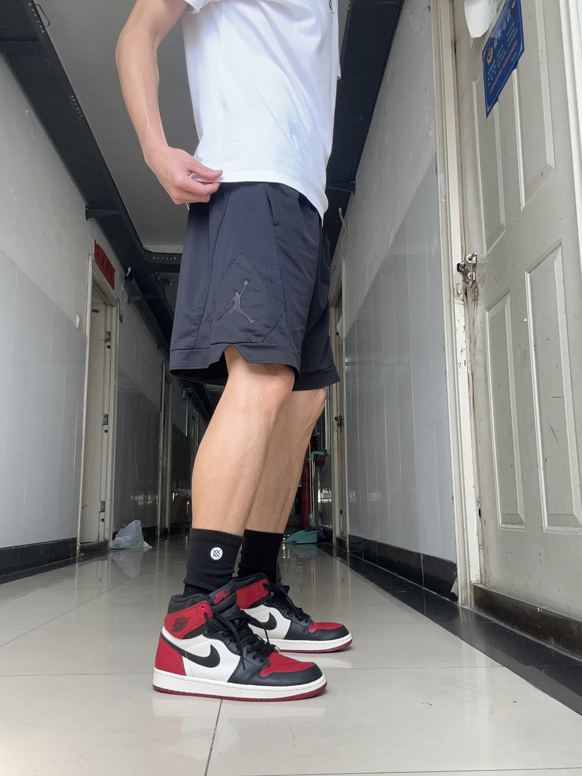 本篇笔记关联了Air Jordan 1 板鞋 运动休闲鞋 复古潮流支撑合成革 高帮/黑红脚趾、Jordan Brand/乔丹 Jumpman Diamond 透气速干训练拼接运动短裤 DA6792 黑、Nike/耐克 纯色球鞋印花圆领短袖T恤 DD3355 白等商品,为用户提供真实的使用体验和购买参考。