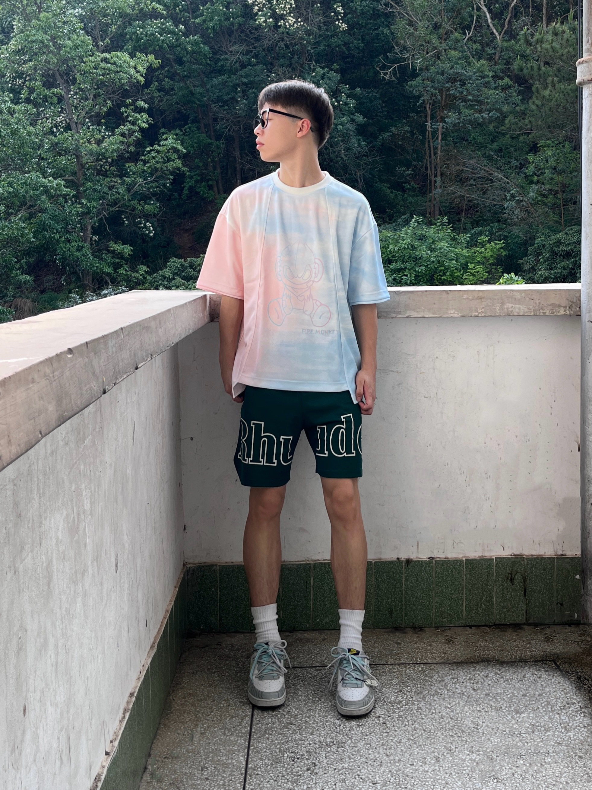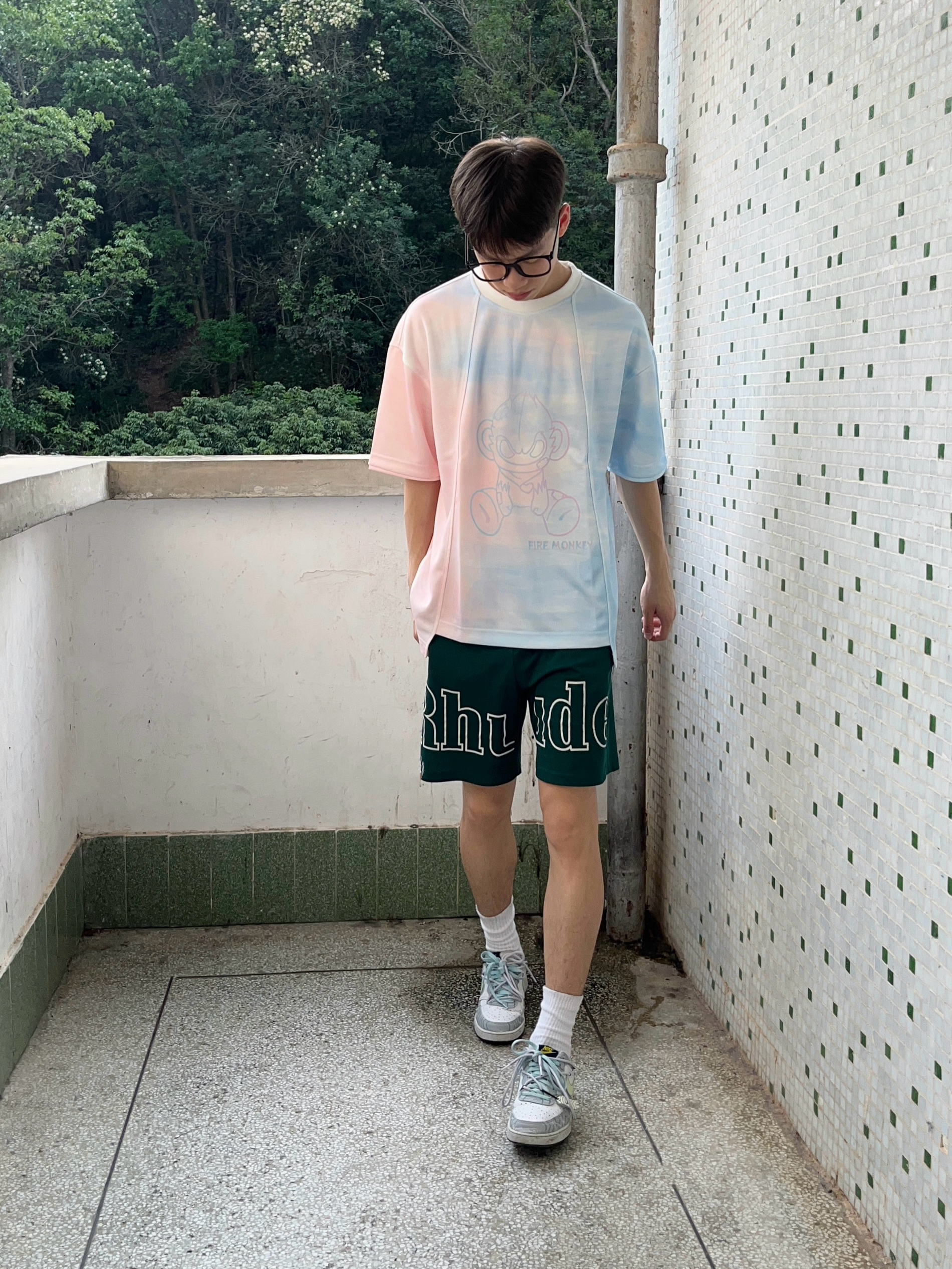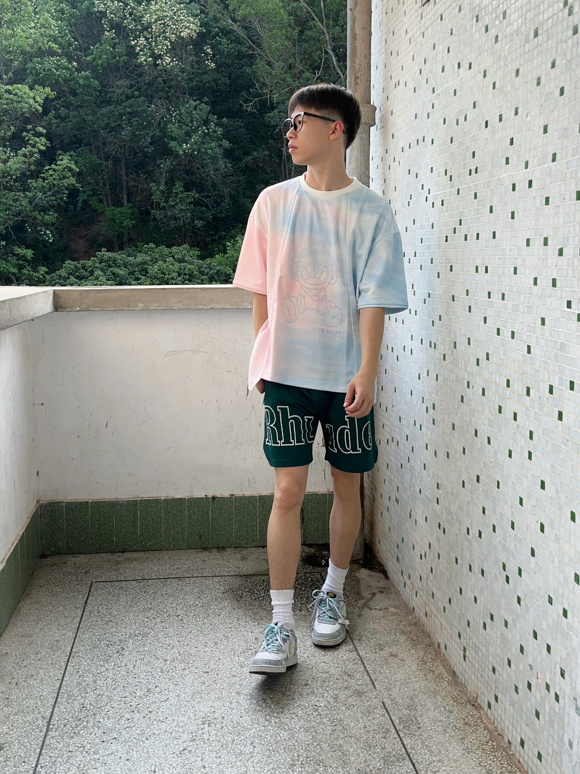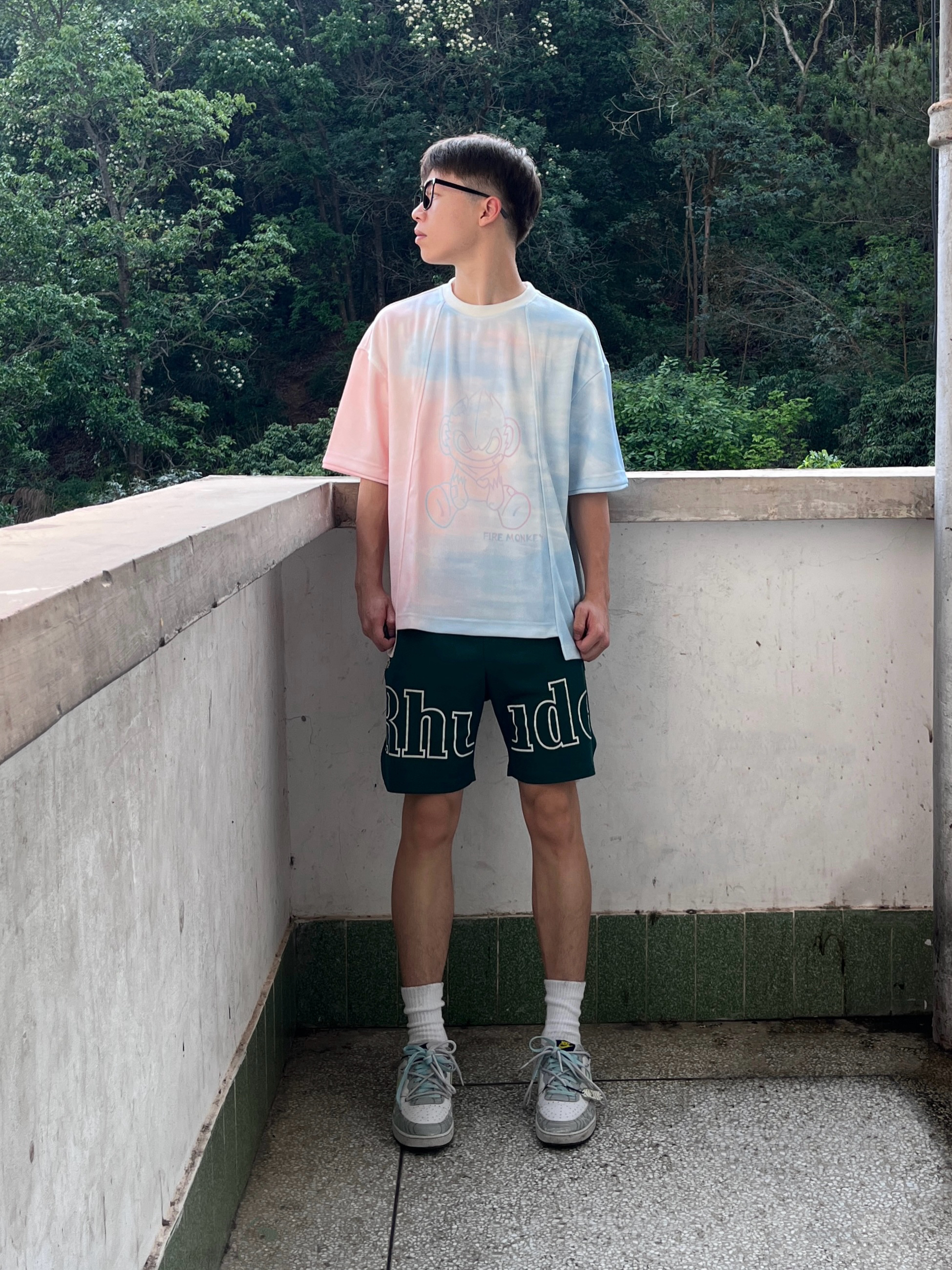 今日份5G入夏穿搭分享👀 衣服是 FireMonkey火猴 家的多巴胺卡通美式短袖 蓝粉配色简约时尚 很有夏天的气息 面料也很舒适 再搭配一条绿色五分裤以及上脚一双休闲板鞋点缀 一套搭配下来 百搭又好看