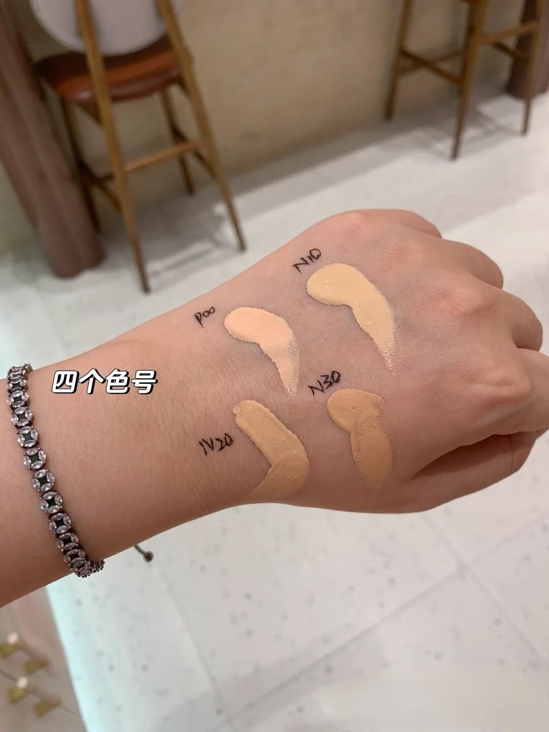 橘朵持妆粉底液 橘朵新老粉底液橘朵粉底液四个色号, p00粉一白,n10黄一白 n20黄二白,n30黄三白 正常肤色用n10或者n20色号,持妆型粉底液是容易很快干的,中性肤质干皮油皮都可以用。最后一张图是防水测试。