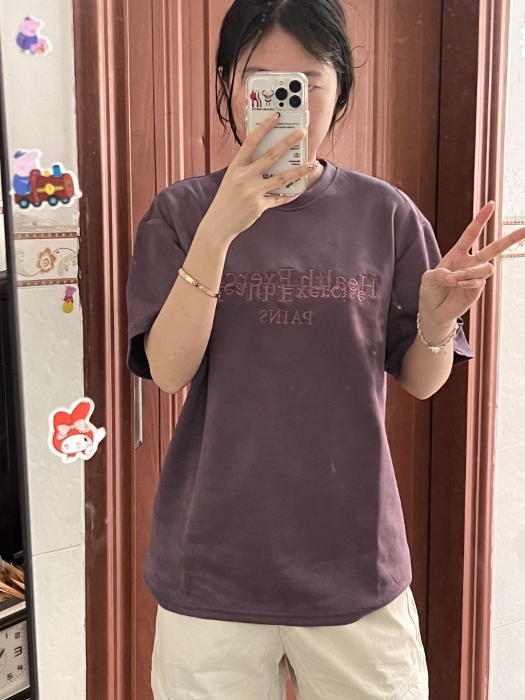 本篇笔记关联了VIISHOW 美式字母刺绣短袖麂皮绒圆领套头T恤 男女同款 TD189524 紫等商品,为用户提供真实的使用体验和购买参考。