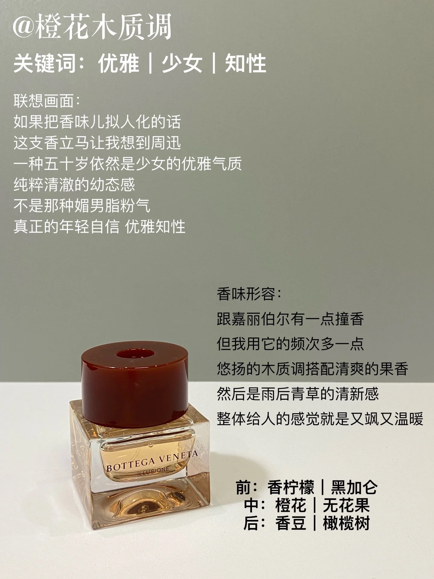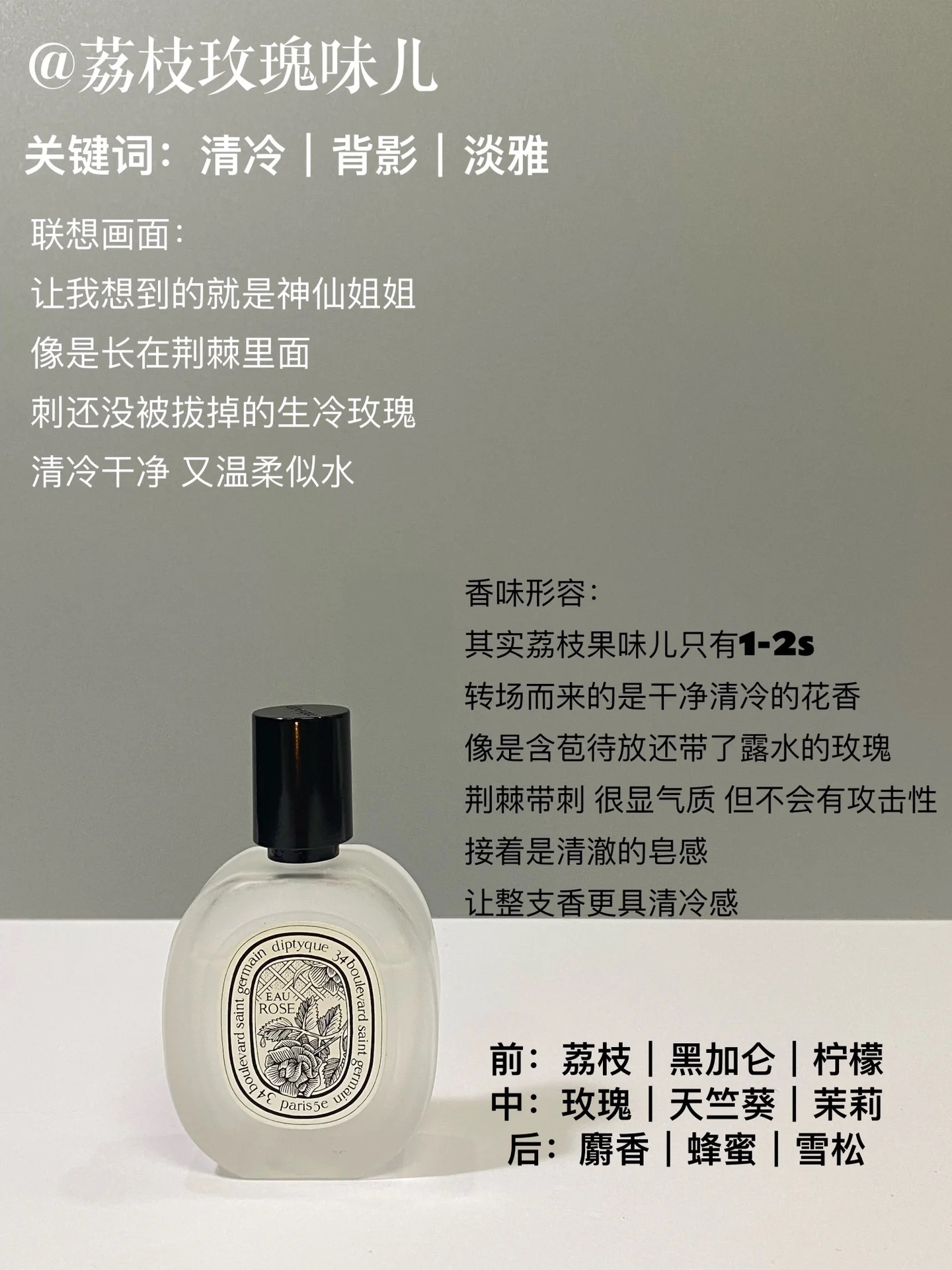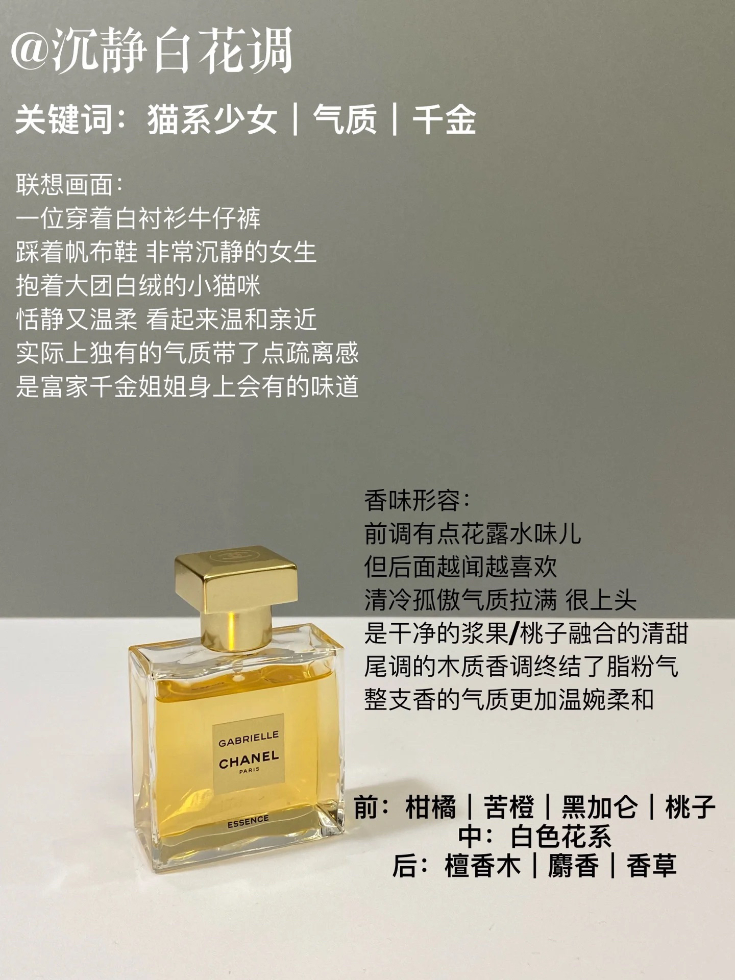 ▪兰蔻IDÔLE是我 “像胸口别着胸针的明媚语文老师;像鼻尖触碰到了晨间的新鲜花瓣。” ▪Chanel嘉柏丽尔 “穿着白衬衫抱着大团白绒的猫系少女;清冷孤傲的气质拉满。” ▪Diptyque荔枝玫瑰 “像是长在荆棘里的,刺还没被拔掉的17岁生冷玫瑰。” ▪BV 幻镜 “一种五十岁依然是少女的优雅气质。” ▪阿玛尼myway “扎着马尾的女孩蹦蹦跳跳,手里端着杯多肉葡萄汁儿” ▪...