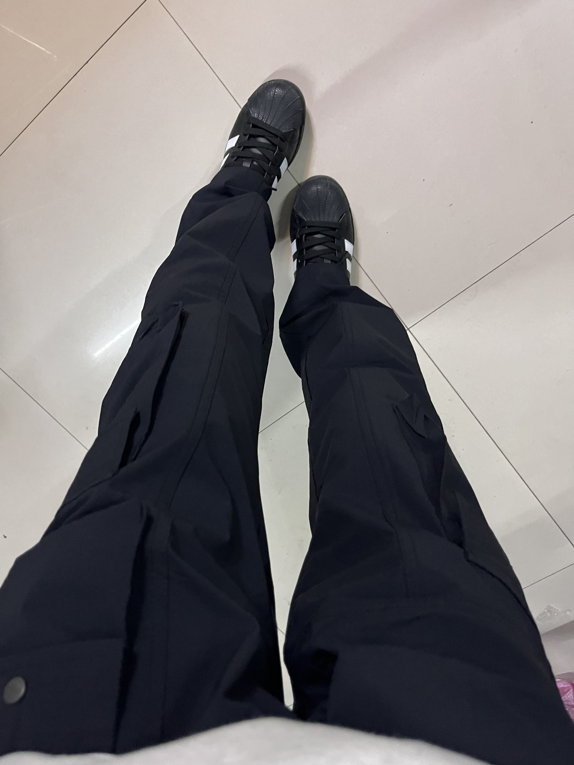 啊啊啊谁还没一条帅气的工装裤 裤腿的口袋设计就很绝 版型显高显瘦 搭上黑贝壳头帅飞了 黑白搭简单又帅气 近期爱裤!!