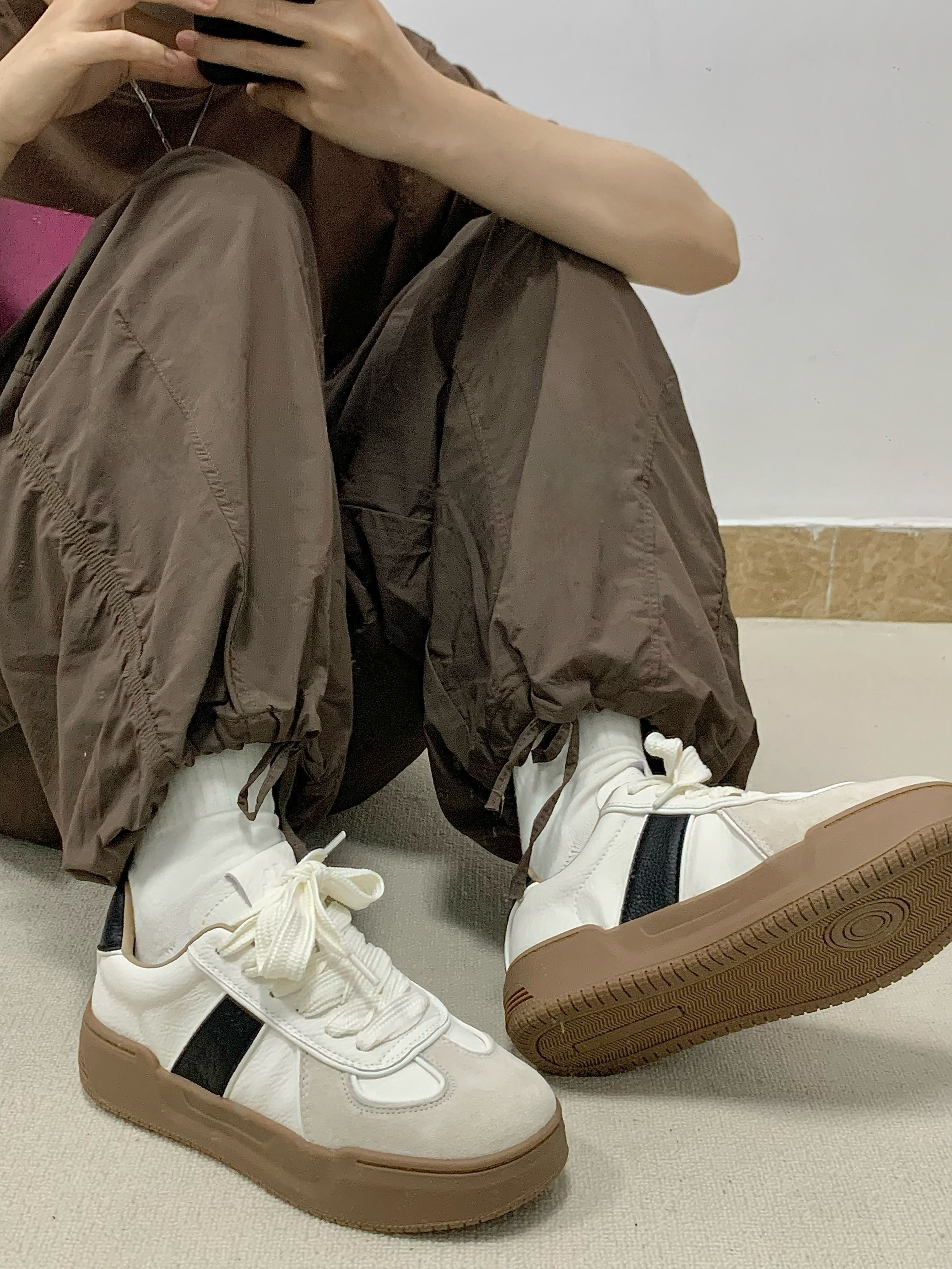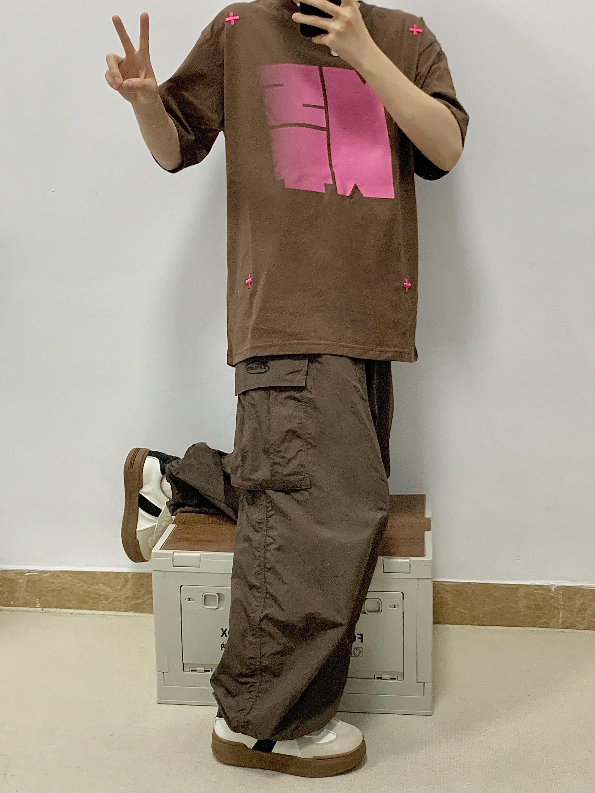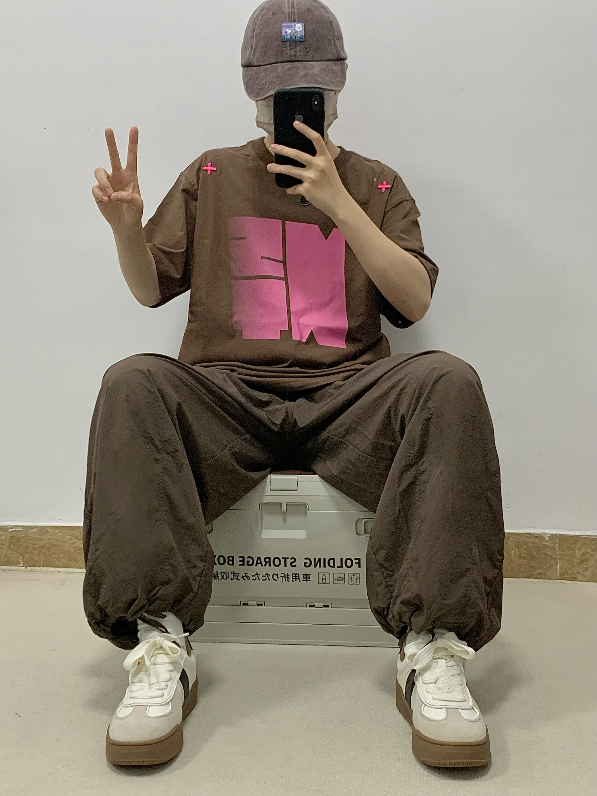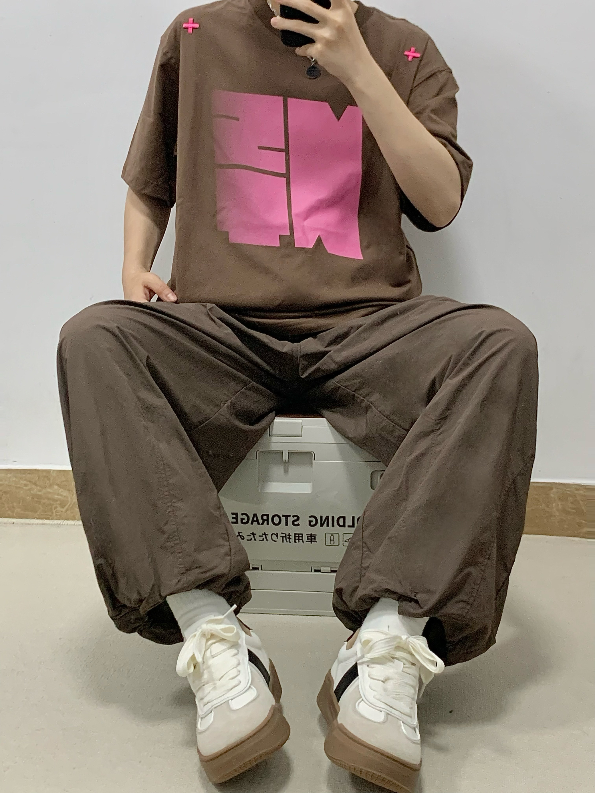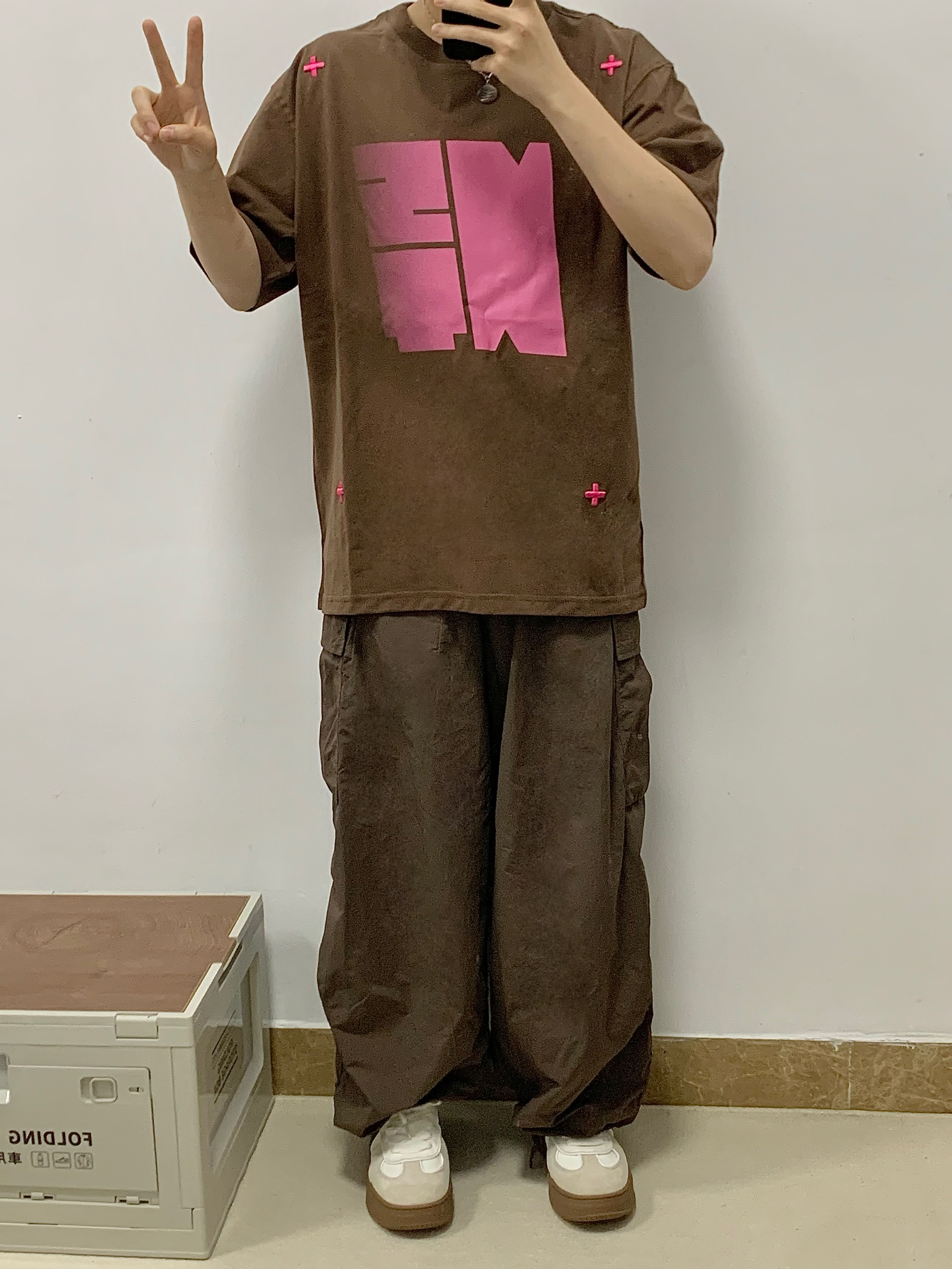 上衣是咖色的短袖 胸前粉色品牌Logo印花 100%纯棉材质 上身很舒服 下装是咖色的长裤 阔腿版型 裤脚抽绳设计 鞋子选择的是Kappa的板鞋 鞋面由麂皮和皮革拼接而成 搭配美拉德色系的大底 还有3cm左右的增高效果 520送这双 女友都夸! 👔:NSTNEW START 👟:Kappa