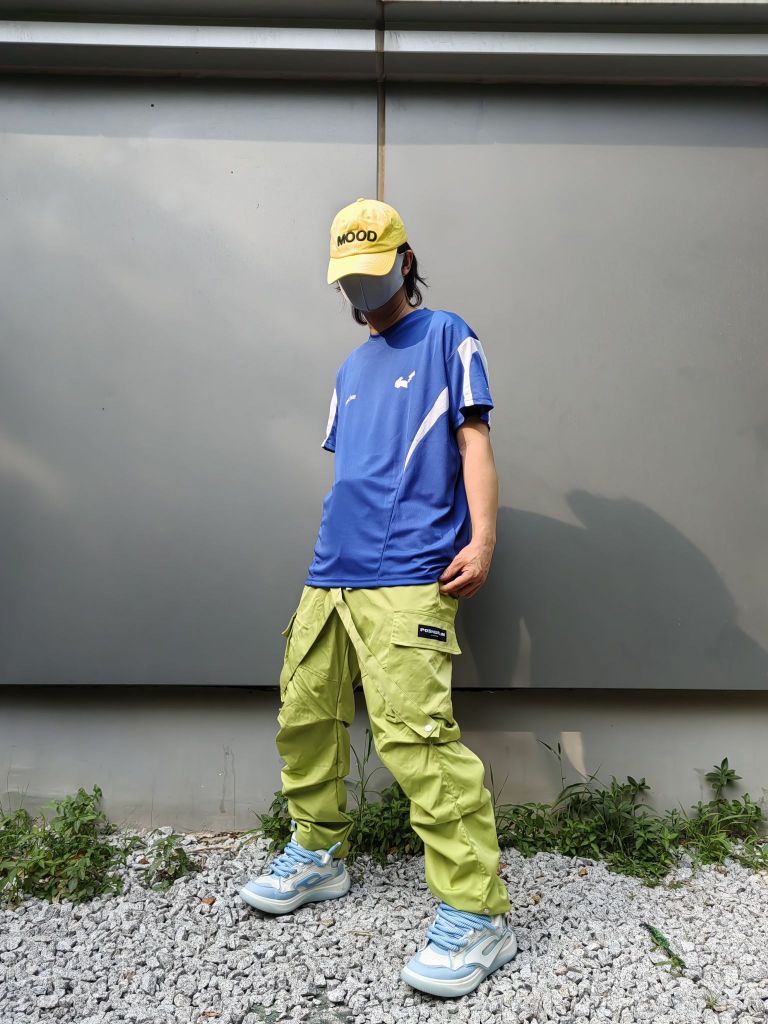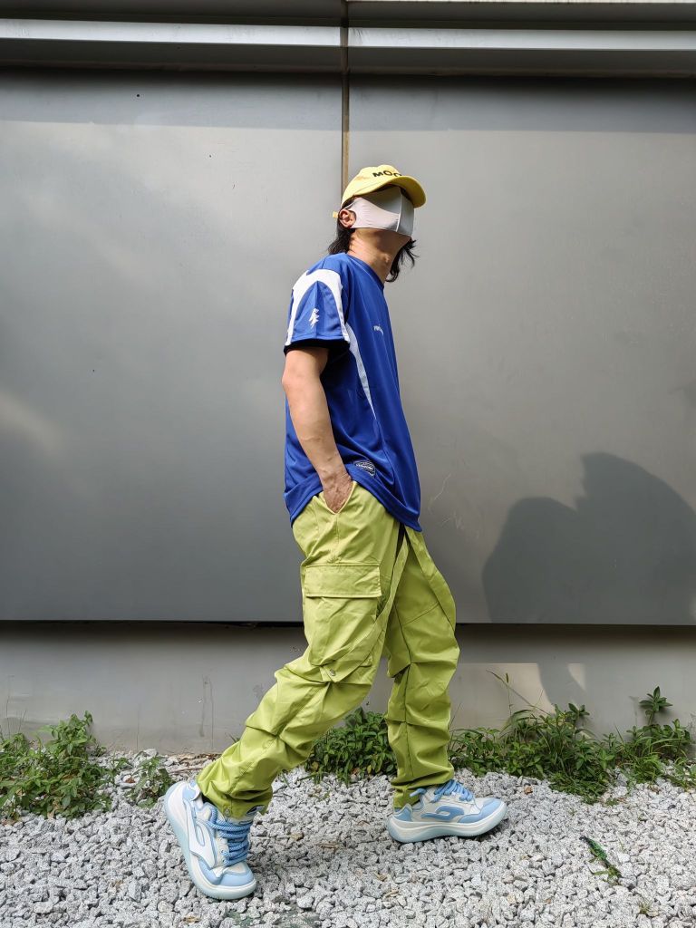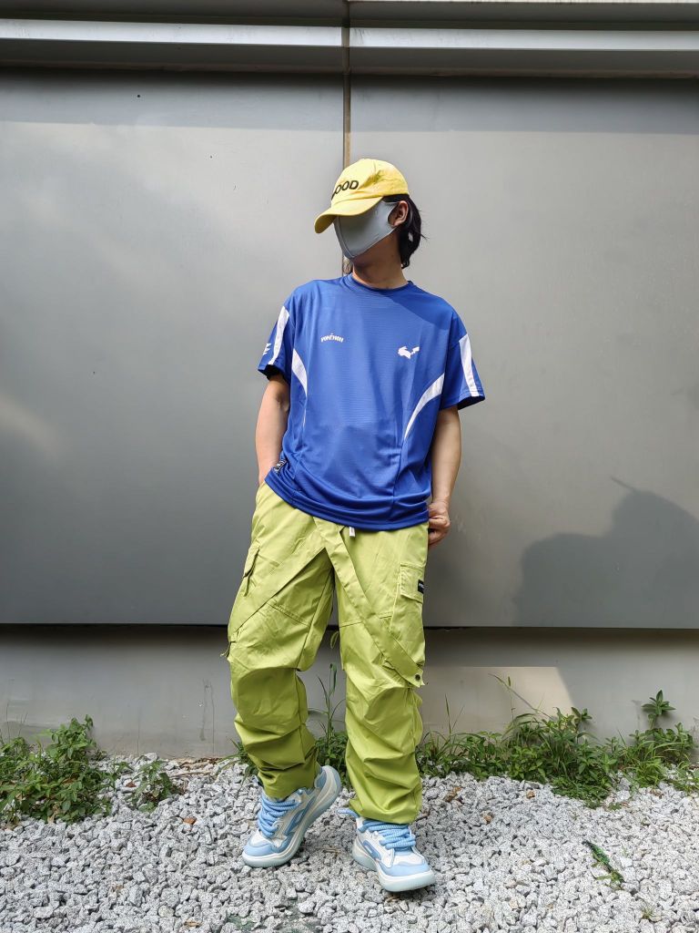 今日分享运动风松弛感户外穿搭日常 178/65kg 上衣VEIDOORN 宝可梦联名维动 拼色蓝色系 闪电⚡皮卡丘 透气 速干 圆领 短袖T恤 宽松清爽尺码xl 合身 下装:绿色工装风休闲裤 鞋子:厚底增高脚感软弹面包鞋