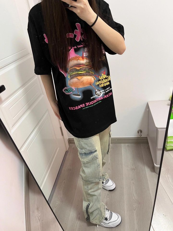 穿搭公式:宽松T恤+牛仔裤+小白鞋 这款牛仔裤采用的是微喇版型设计,非常的显腿瘦,而且能够遮住小腿粗的部分,很适合小腿粗的人穿搭 这款牛仔裤有两种颜色,个人更喜欢这款浅色的,很好搭配,适合夏天穿 图片素材来源于网络侵删