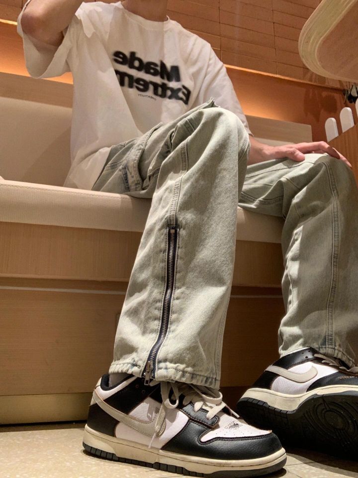 穿搭公式:休闲T恤+微喇牛仔裤+AJ 很喜欢这款拉链设计,风格很美式,而且设计比较经典,方便搭配衣服 整体版型较为宽松,也有可能是本人腿比较细,穿起来没有紧绷感,很舒服 图片素材来源于网络侵删