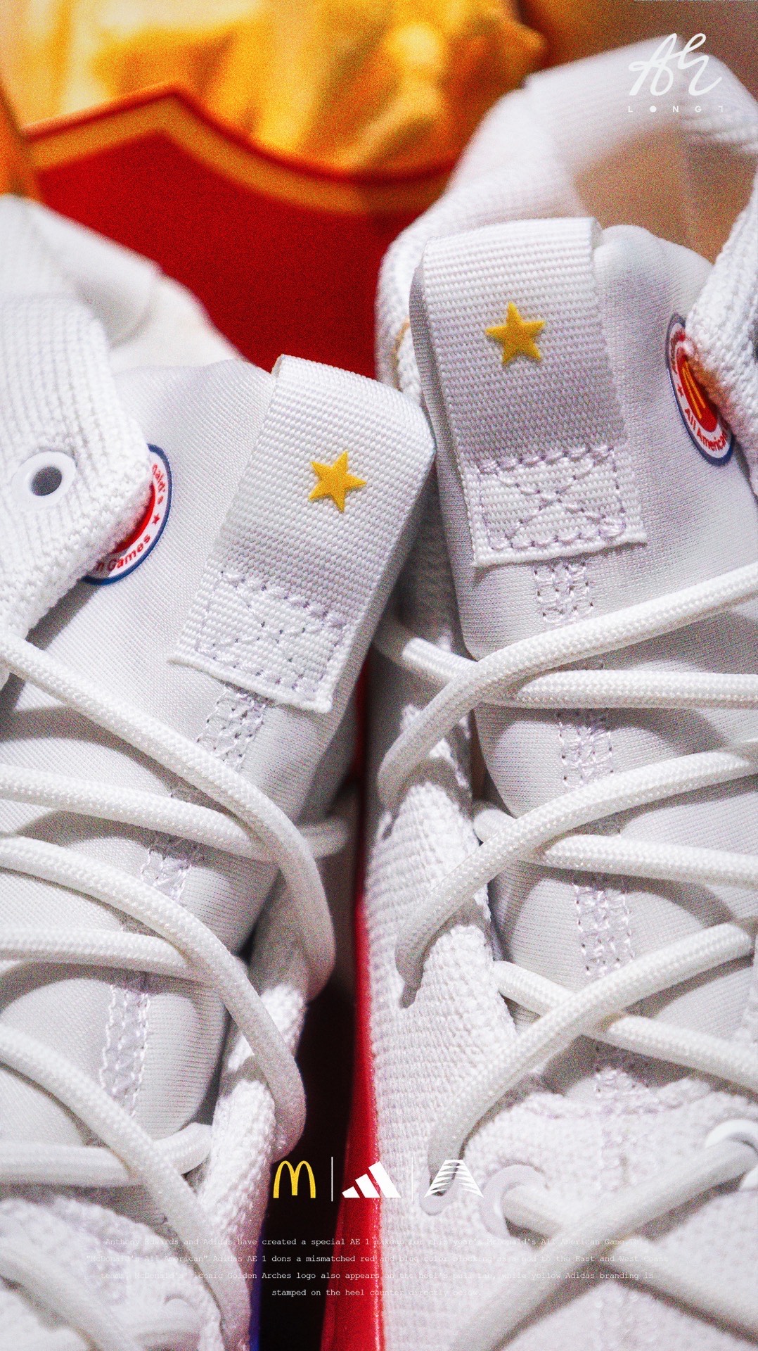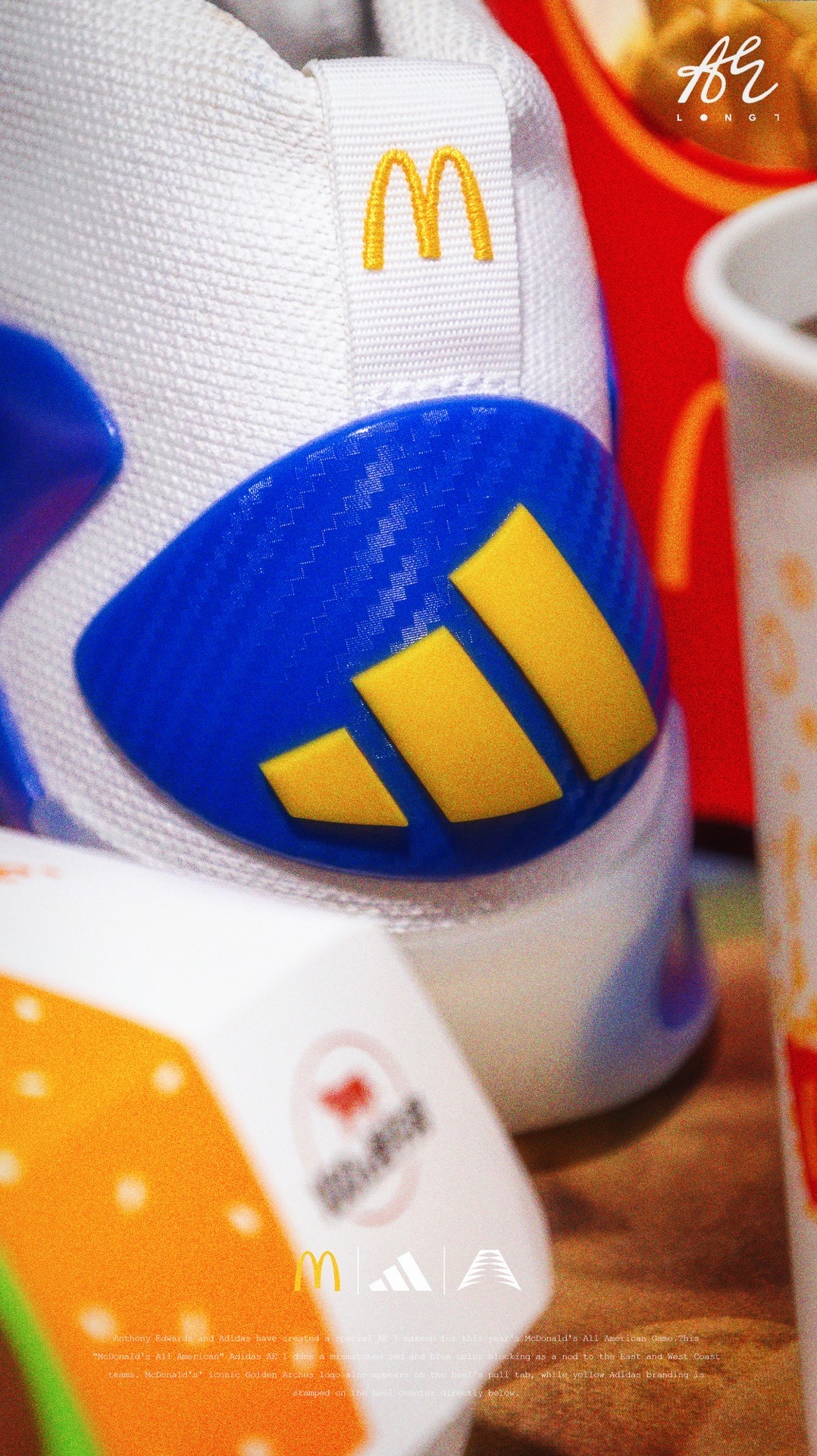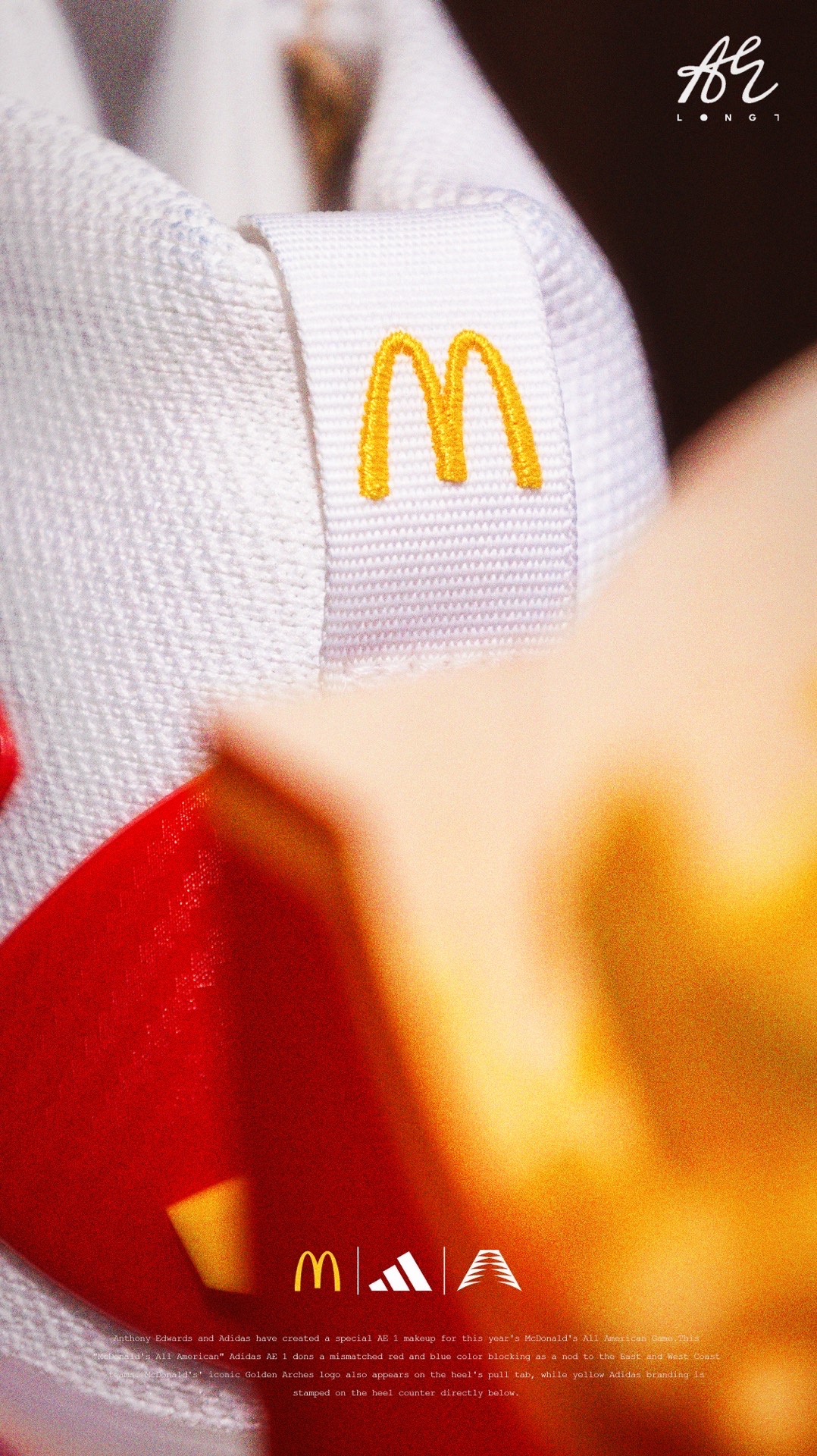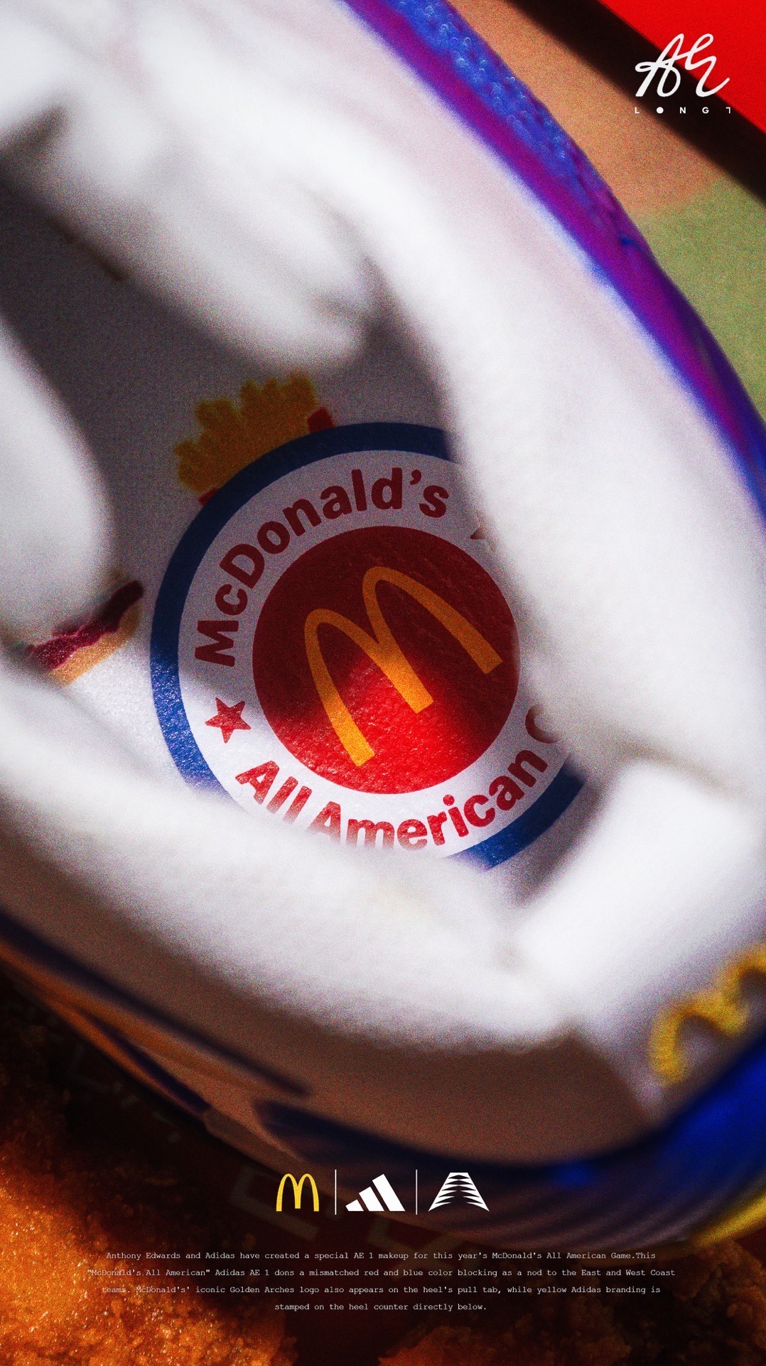 🍟麦门永存🍟 👟:McDonald's x adidas A.E. 1 adidas专为麦当劳全美高中生明星赛打造的A.E. 1,使用了红蓝色的鸳鸯设计,并在细节处点缀有麦当劳的经典logo与元素,也是少数使用了白色织物的A.E. 1,非常可惜的是该配色仅在Footlocker独家发售,所以入手还是有些许难度的~ #把麦门穿脚上 #麦门永存 #爱德华兹太像乔丹了