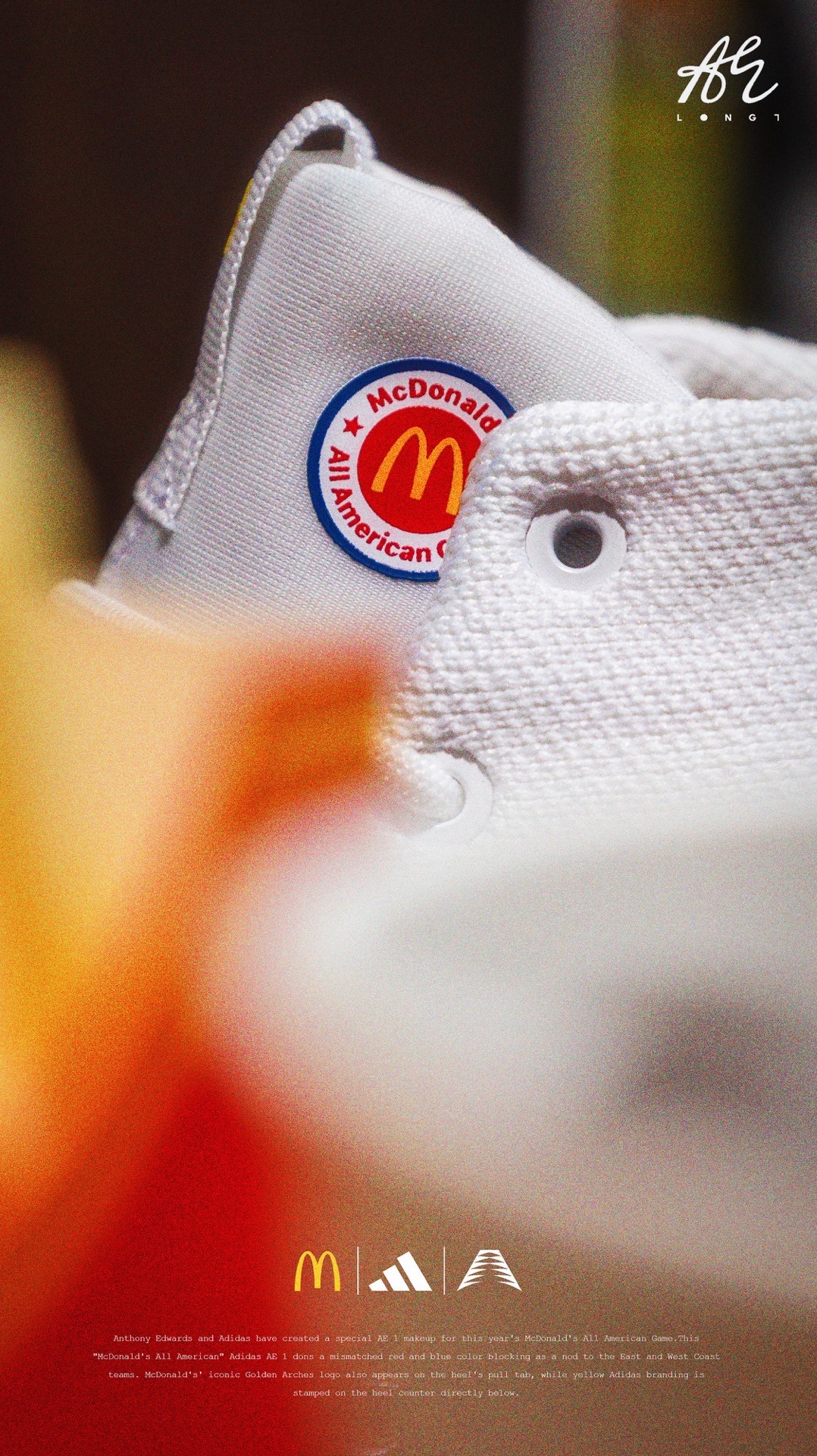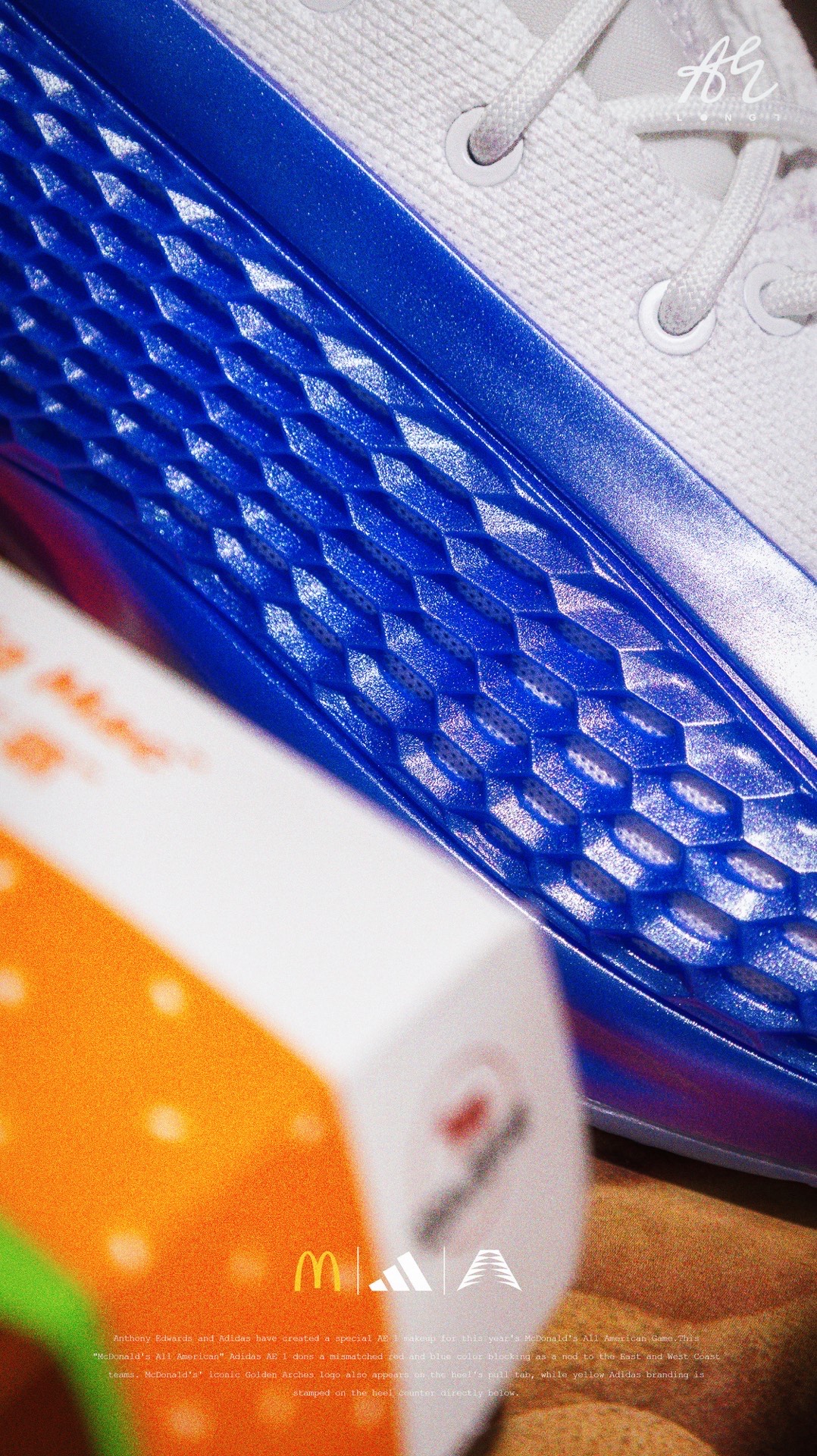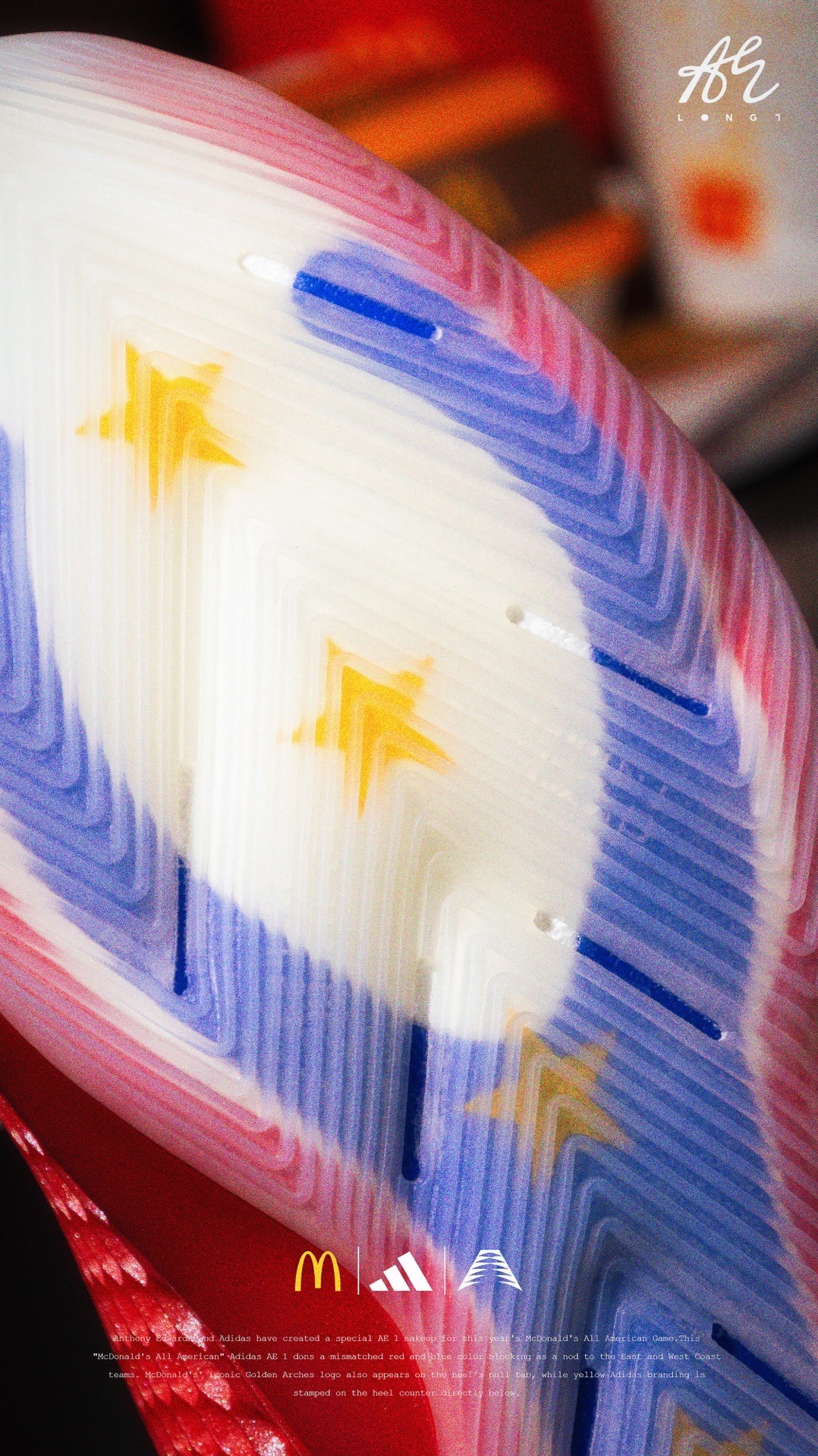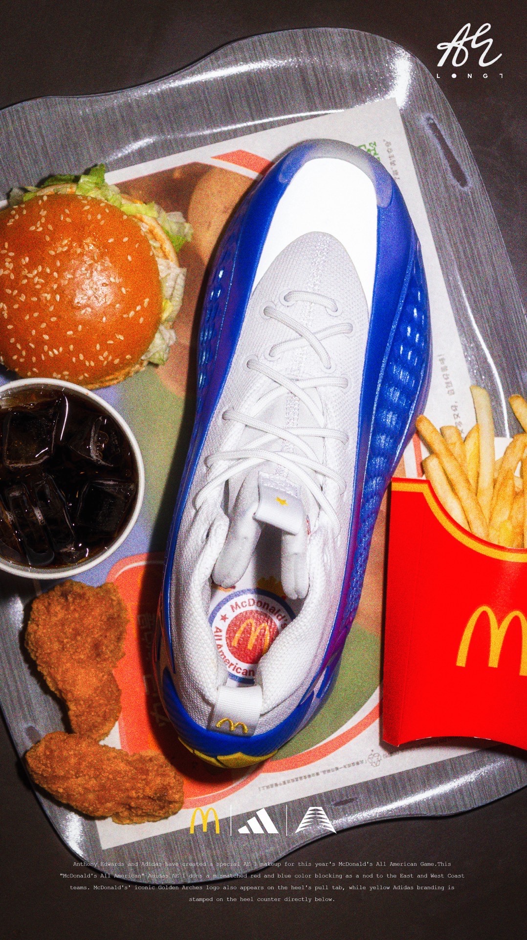 🍟麦门永存🍟 👟:McDonald's x adidas A.E. 1 adidas专为麦当劳全美高中生明星赛打造的A.E. 1,使用了红蓝色的鸳鸯设计,并在细节处点缀有麦当劳的经典logo与元素,也是少数使用了白色织物的A.E. 1,非常可惜的是该配色仅在Footlocker独家发售,所以入手还是有些许难度的~ #把麦门穿脚上 #麦门永存 #爱德华兹太像乔丹了