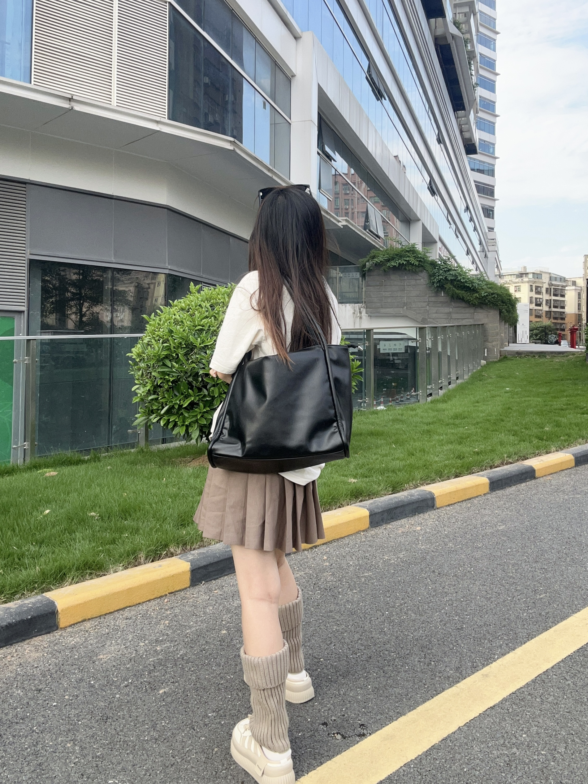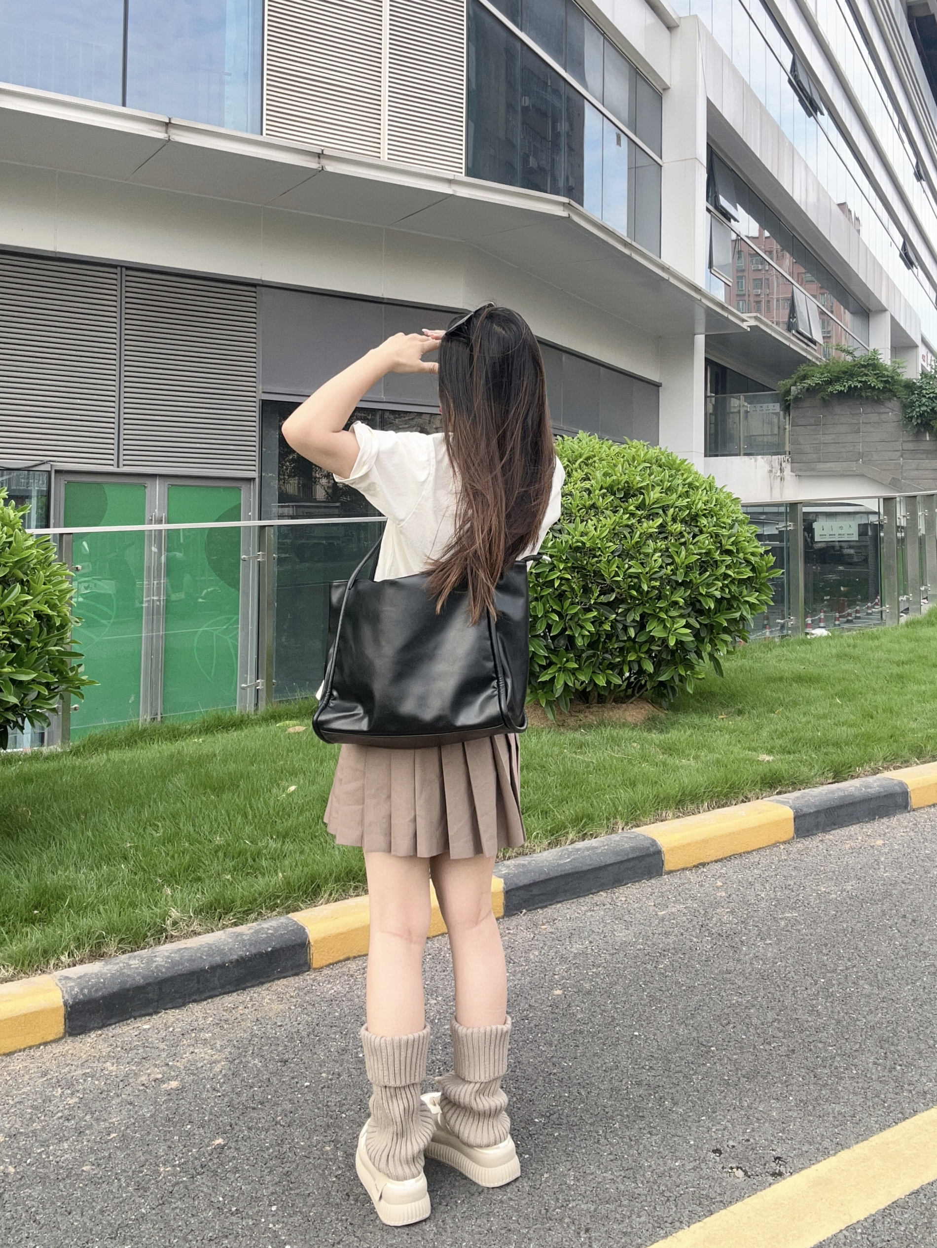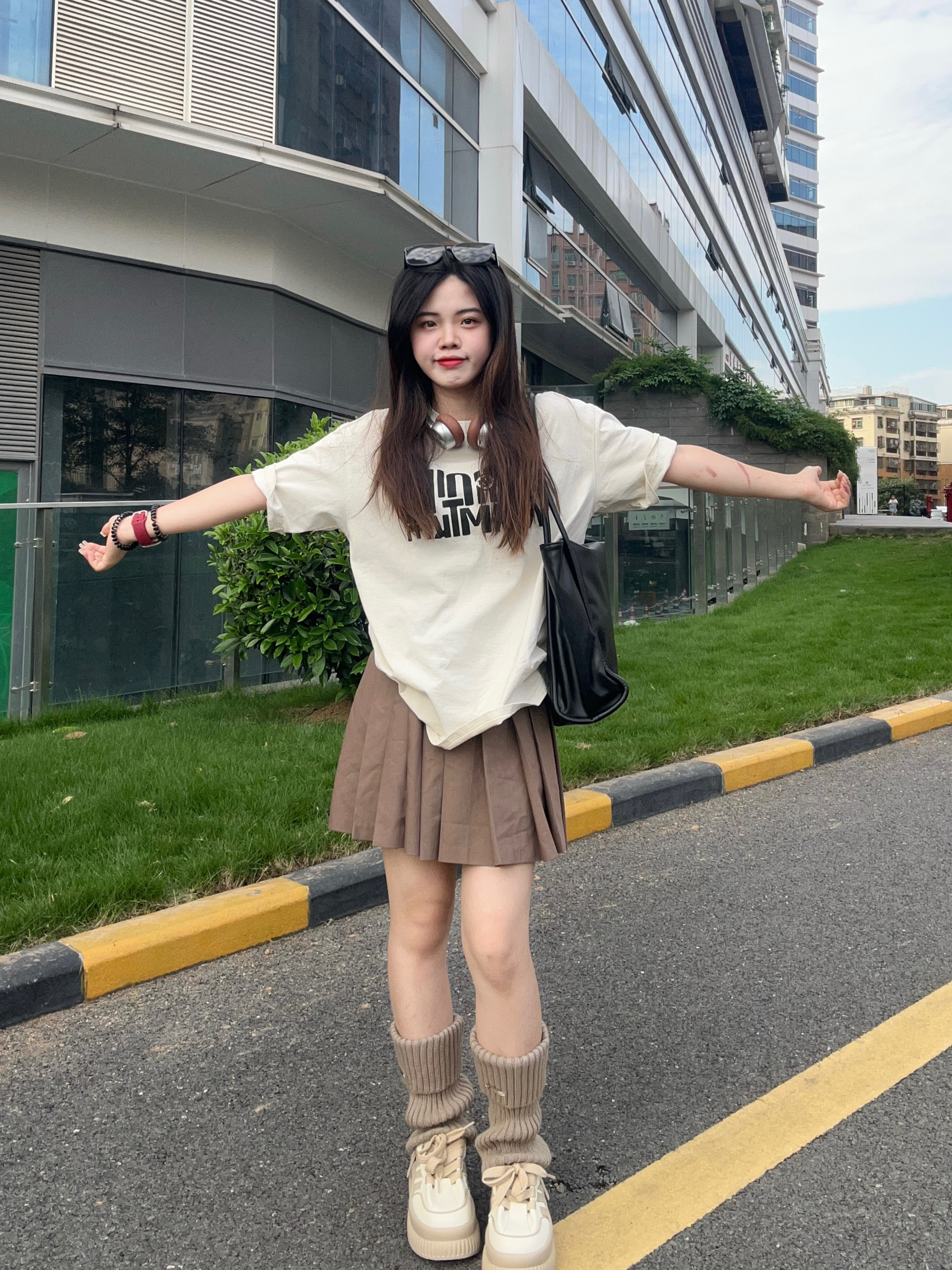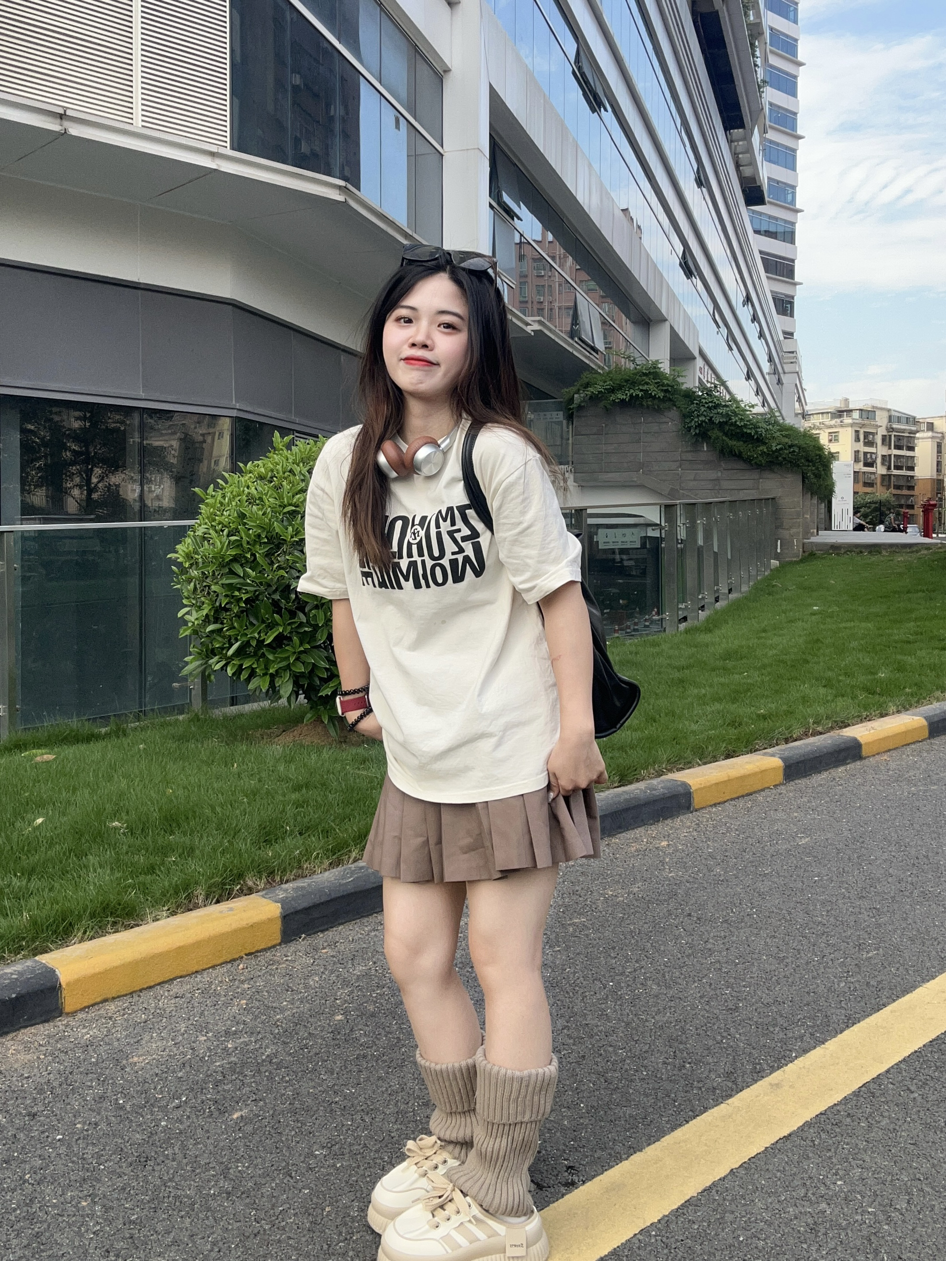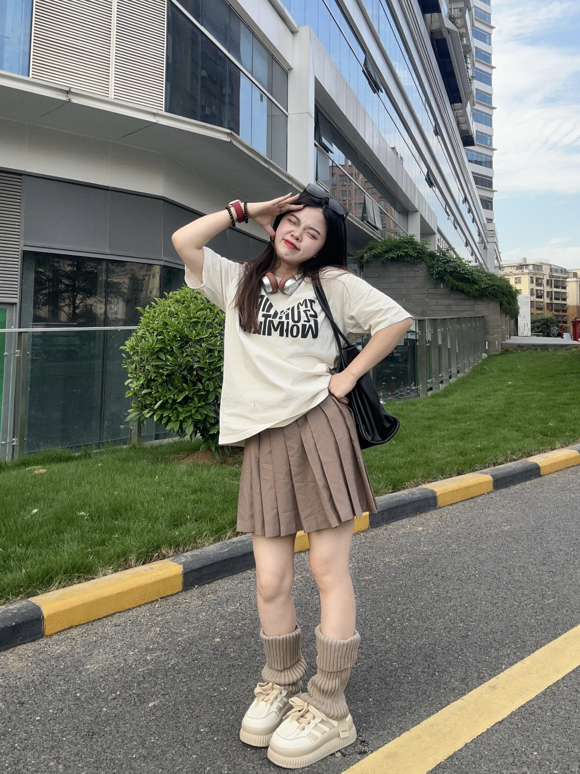 OOTD: 👚:淡黄的宽松T恤 👗:棕色百褶裙 👟:厚底增高包头拖鞋 💼:黑色皮包 一 今天是学习韩系穿搭的一天!芜湖~衣服的配色呢,都是选择邻近色去做一个撞色的搭配 衣服呢,是选择这件图案比较简单的淡黄色T 恤,前面只有简单的英文图案,看起来简简单单的。 裙子搭配的是一条棕色的百褶裙,下面穿了一双堆堆袜来做一个撞色的搭配! 鞋子今天穿的是一双超方便的包头拖鞋,像我这种穿鞋爱踩鞋跟的,简直不要太方...