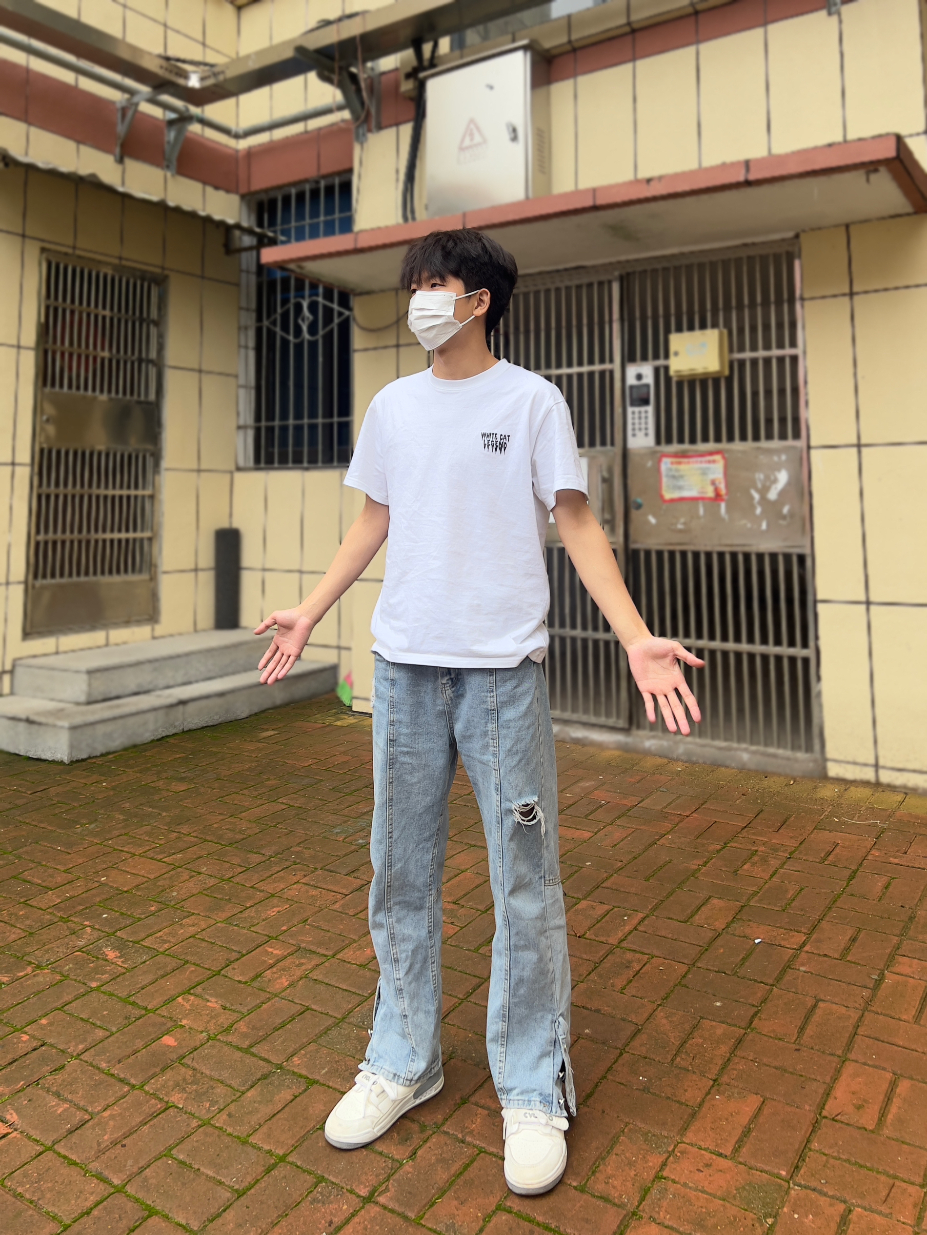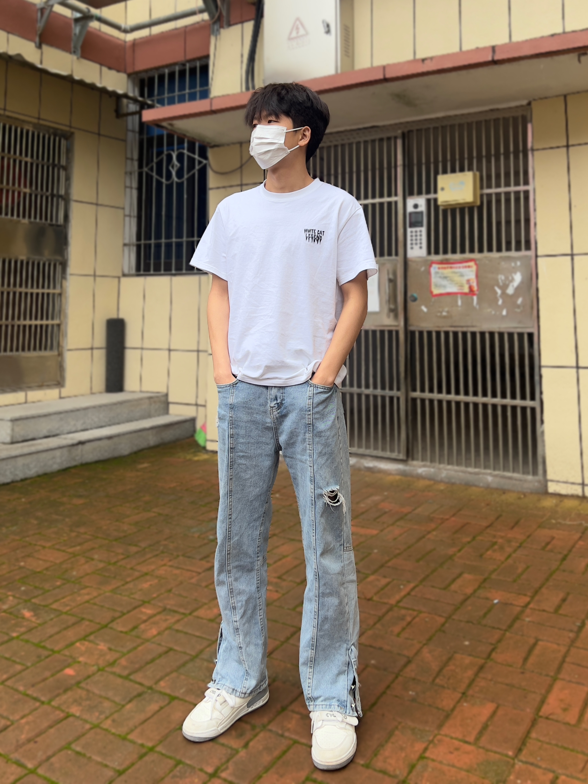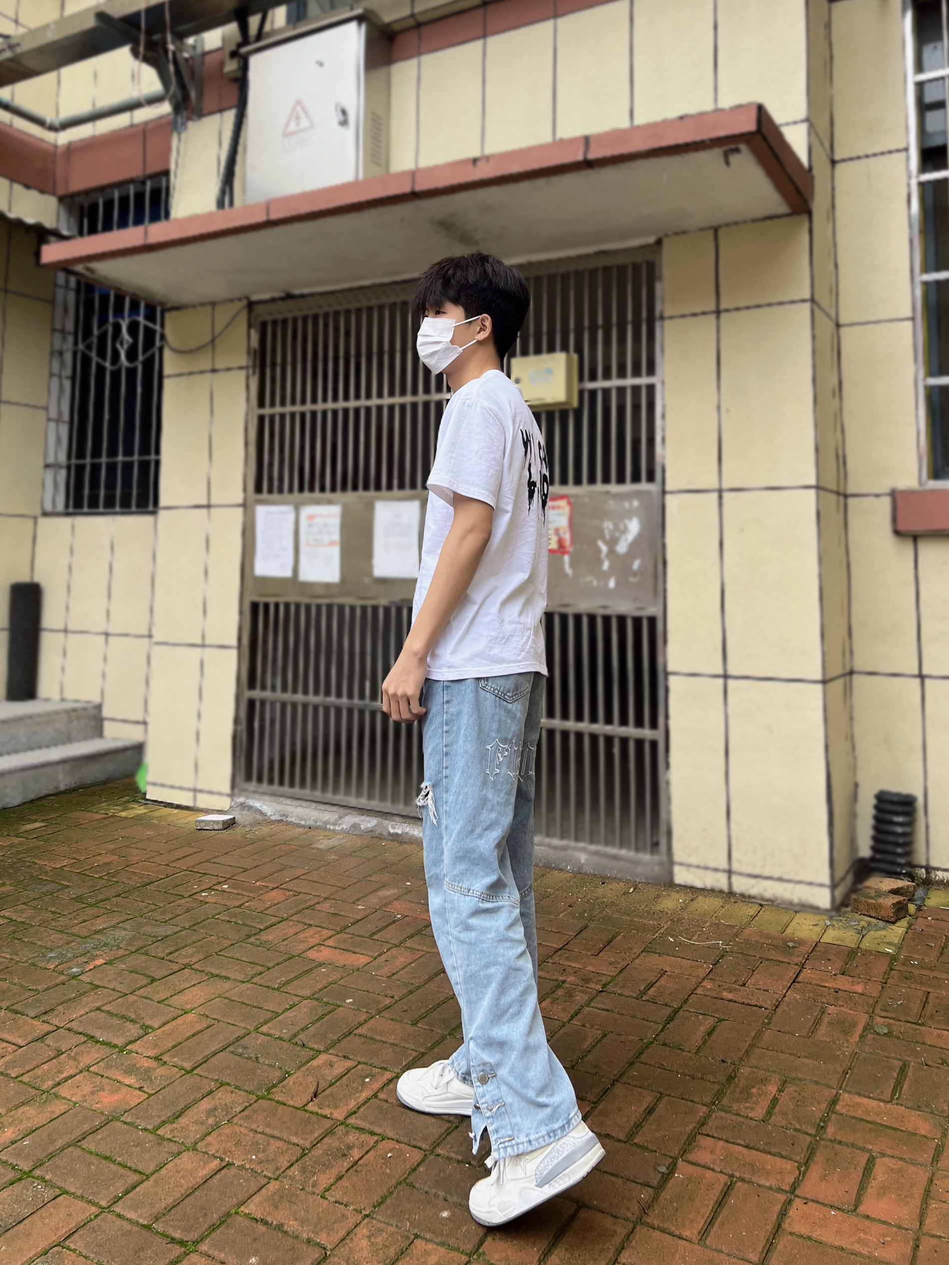 穿上这套衣服,简直就像找到了自己的舒适区。这件白色T恤上的图案和文字,真的就是我喜欢的那种简约又不失个性的风格,穿在身上感觉特别自在。 牛仔裤也是我的最爱,宽松舒适,走起路来特别带感。再配上那双白色运动鞋,简直就是“行走的时尚”。 至于口罩,我选了白色的,简单干净,和整体穿搭很搭。说实话,现在出门不戴口罩都觉得少了点什么。 站在人行道上,我觉得自己今天真的挺帅的,心情也特别好。这套穿搭不仅让我感觉...