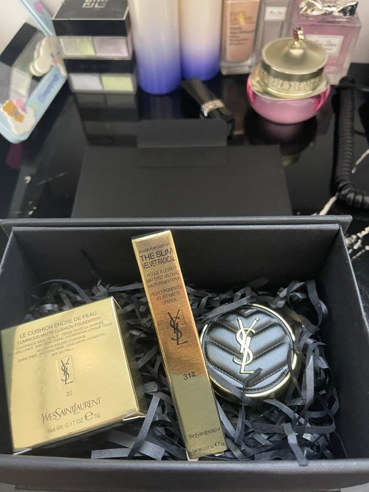 本篇笔记关联了YSL/圣罗兰 黑皮革轻垫彩妆礼盒 提亮肤色哑光丝绒雾面 小金条 N°21 2.2g+皮革黑气垫 B20 5g等商品,为用户提供真实的使用体验和购买参考。