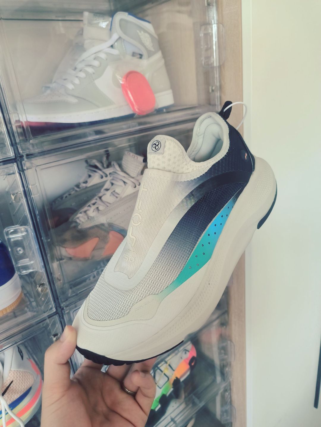 绝尘2.0天鹅配色,实物真的惊艳 上脚以后好看的不得了,ERKE.的标志真的是点睛之笔 铲形的TPU给足推力,久跑不累 初级跑步鞋也可以轻松驾驭