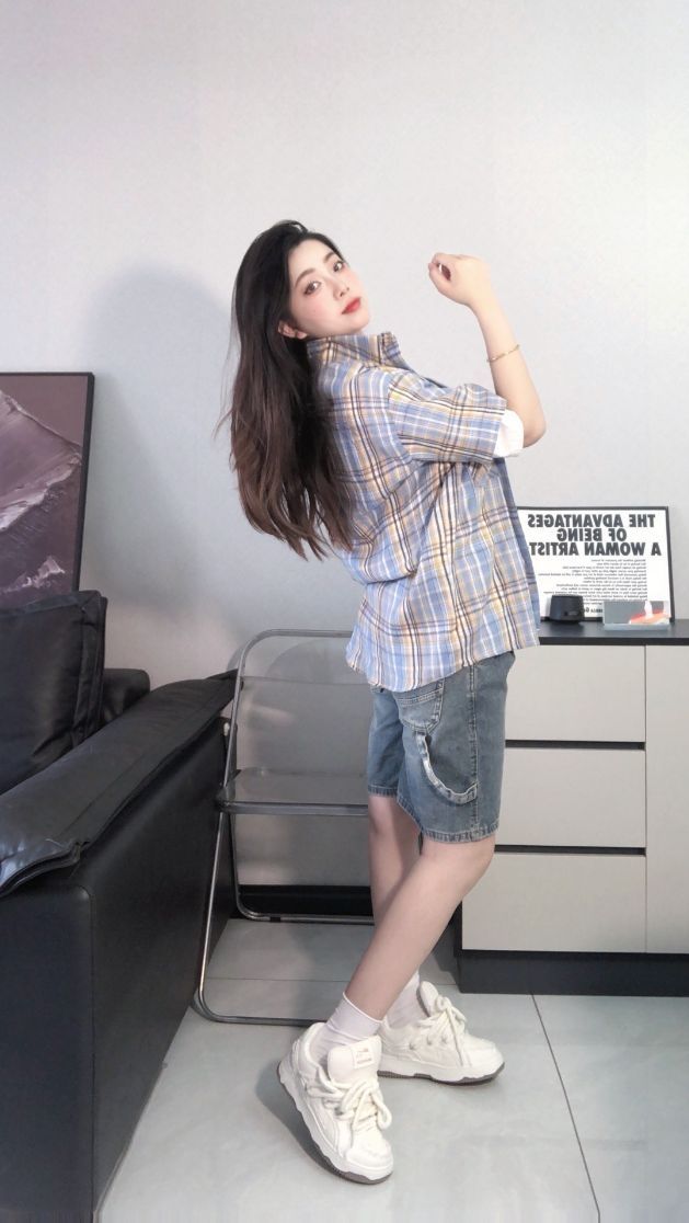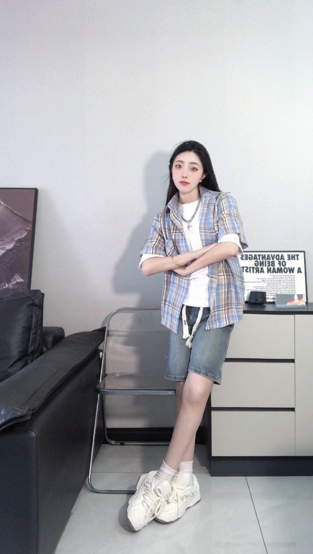 夏天第一件格子衫#黑马漫画 开始吧!叠搭白T恤漏白边别样风格,下搭牛仔阔腿短裤 有一种满满少年气息,慵懒随意十足,日常也可内搭小背心