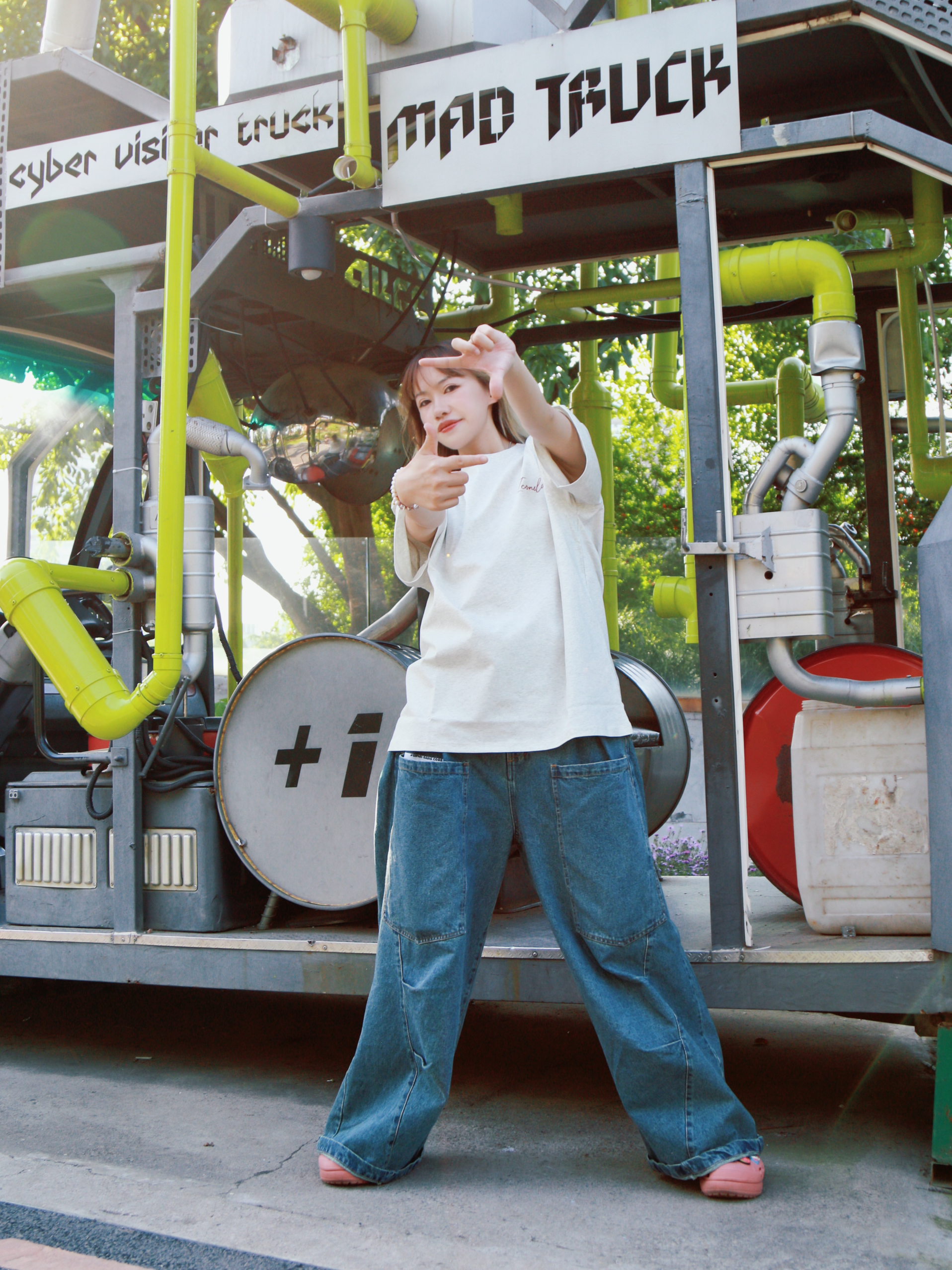 身高|体重:165 48kg 🧍♂️ 穿搭风格:Oversize校园风 👔 上衣:Iconslab 👖 下装:Soc 👟 鞋子:Crocs