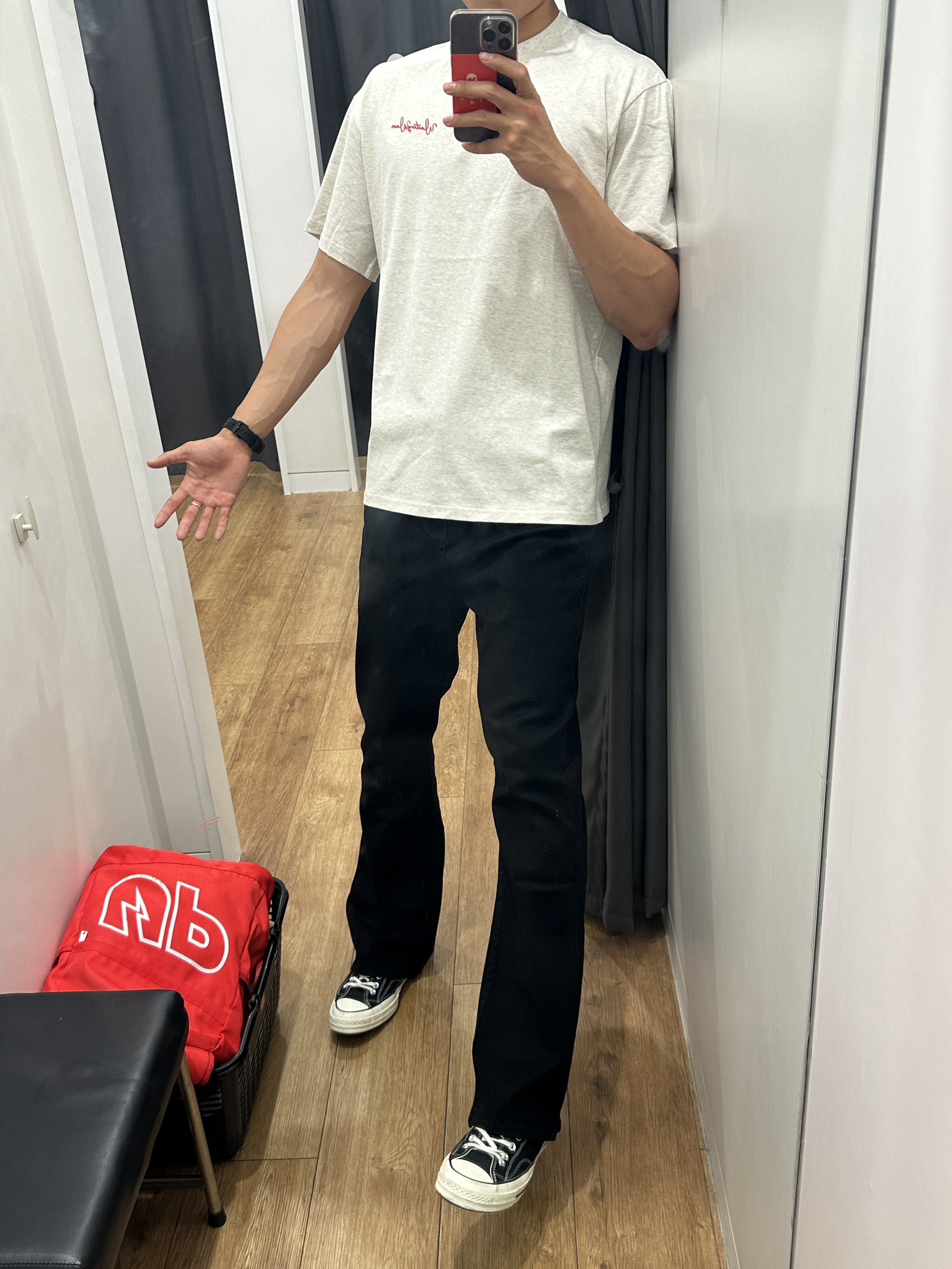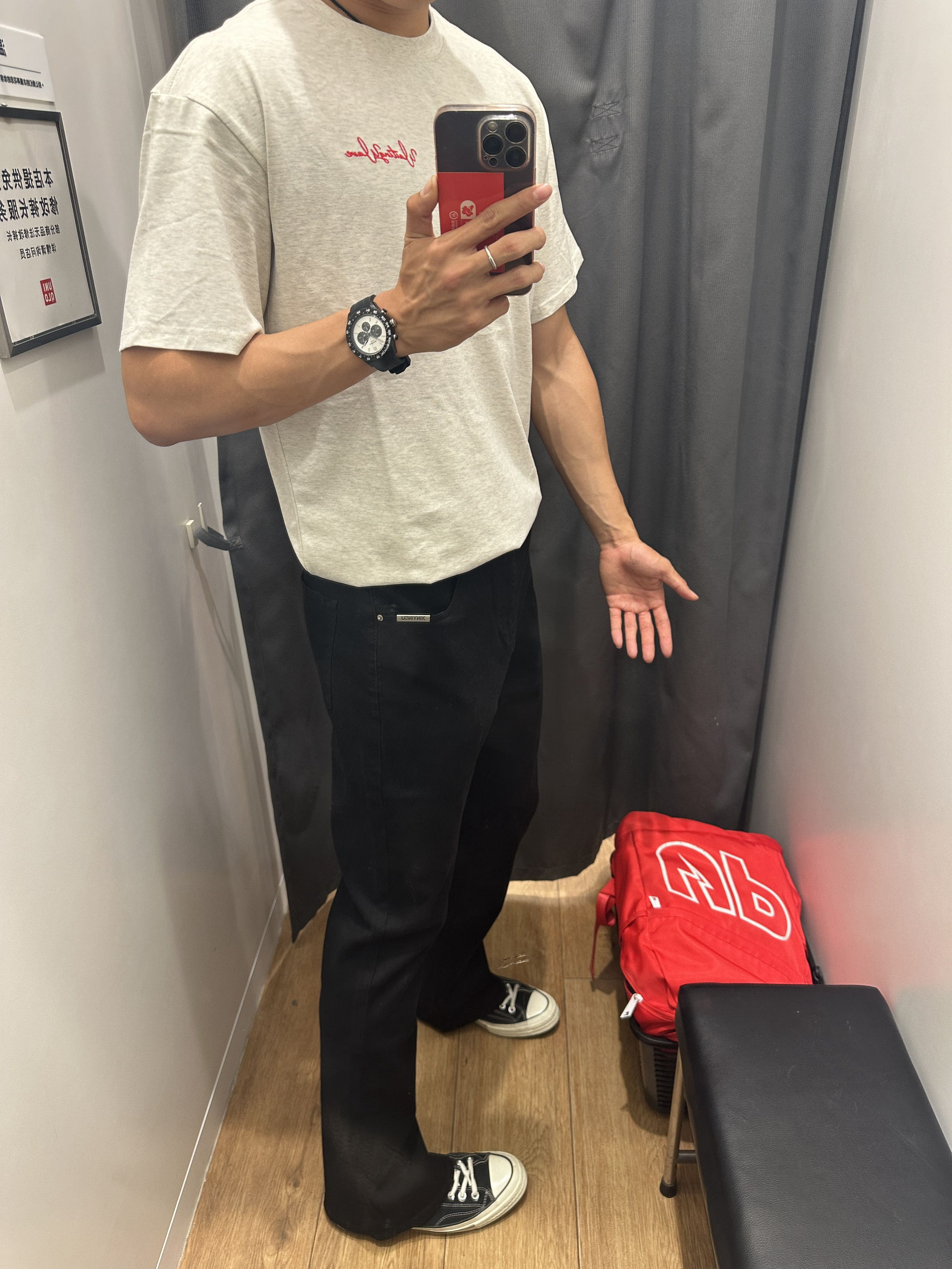 身高|体重:190/83kg 🧍♂️ 穿搭风格:cleanfit 👔 上衣:热销印花t 👖 下装:新因素 👟 鞋子:匡威 🎒配饰:
