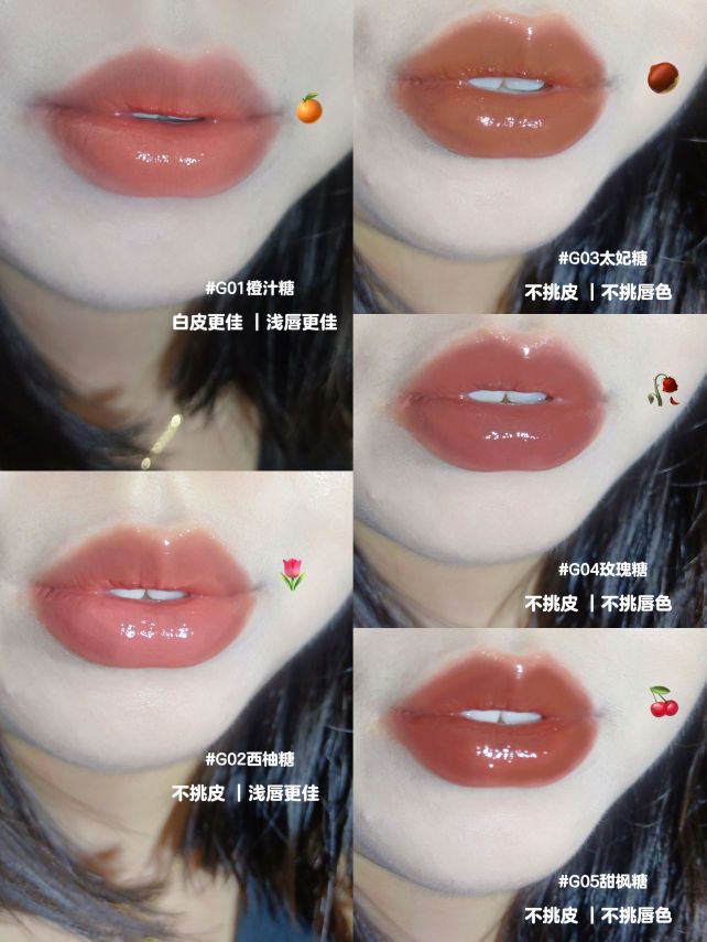 本篇笔记关联了橘朵 镜面唇釉 低饱和哑光雾面 G01橙汁糖、橘朵 镜面唇釉 低饱和哑光雾面 G02西柚糖、橘朵 镜面唇釉 低饱和哑光雾面 G03 太妃糖等商品,为用户提供真实的使用体验和购买参考。