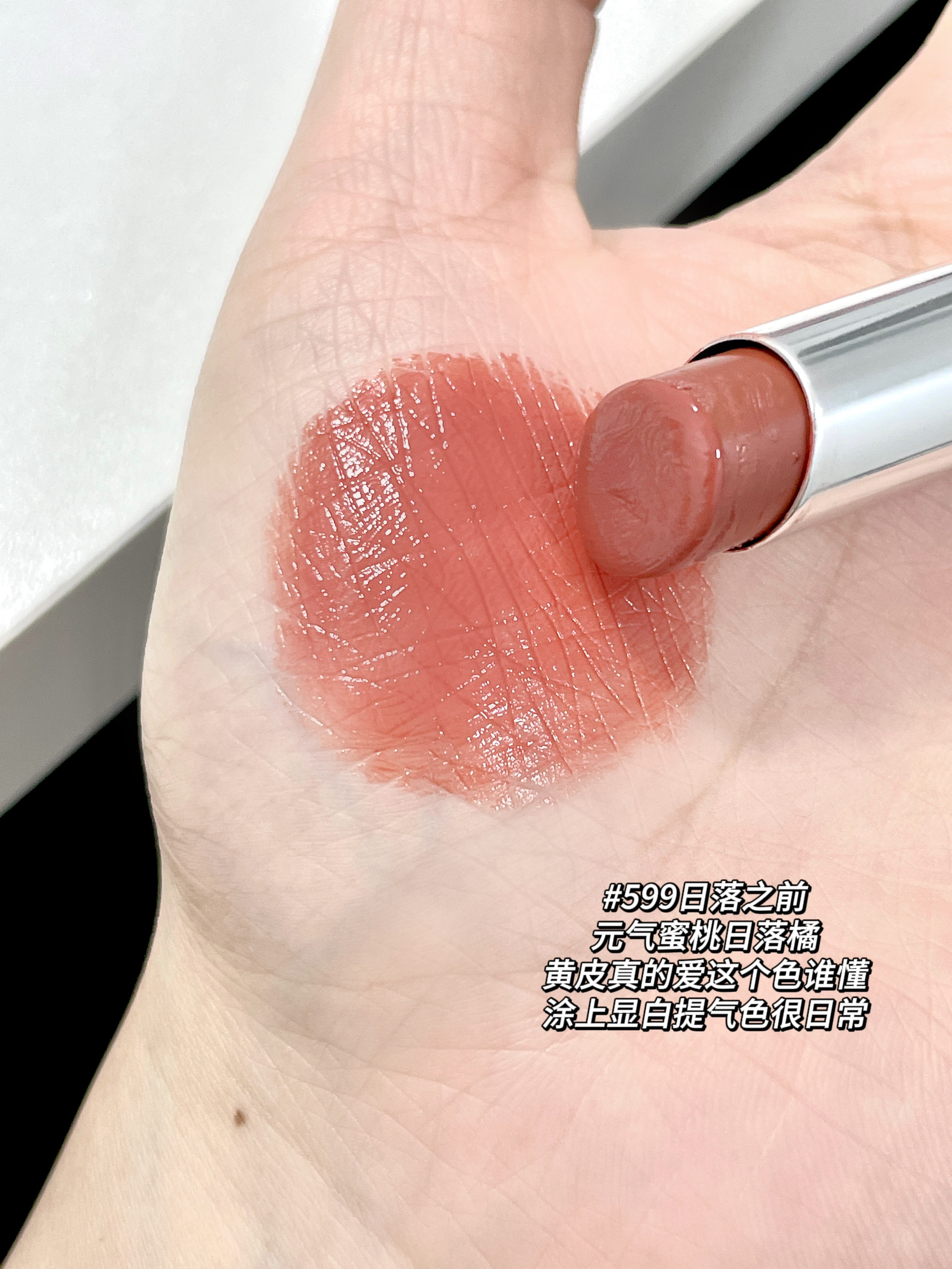被董洁种草的有色唇膏 本干唇宣布…真的是伟大的发明! 越涂越爱!越涂越嫩! 水水润润的膏体 涂在嘴巴上嘟嘟嫩嫩 出门随手涂一下提气色and护唇一举两得 559本黄皮的本命色 涂一次就爱上了! 素颜涂也很绝 元气蜜桃日落橘黄 嘎嘎显白