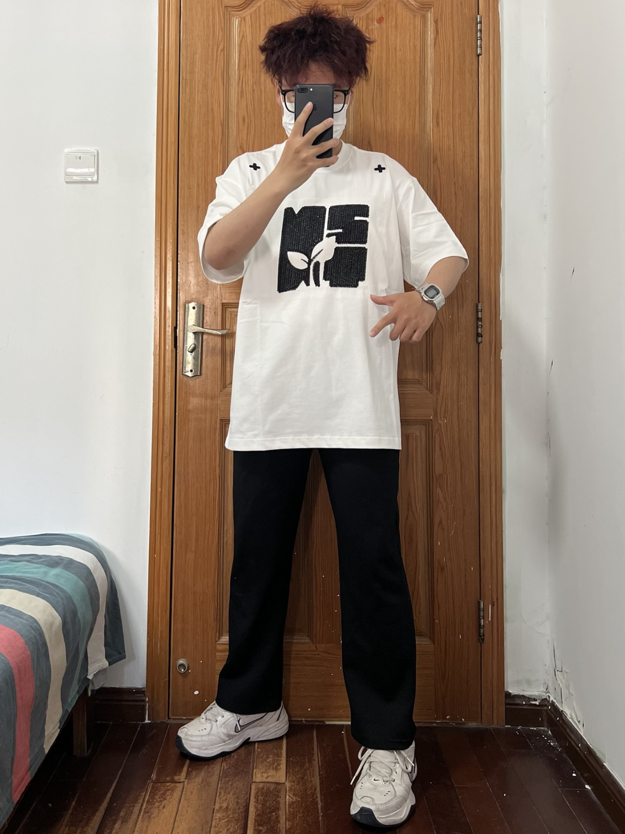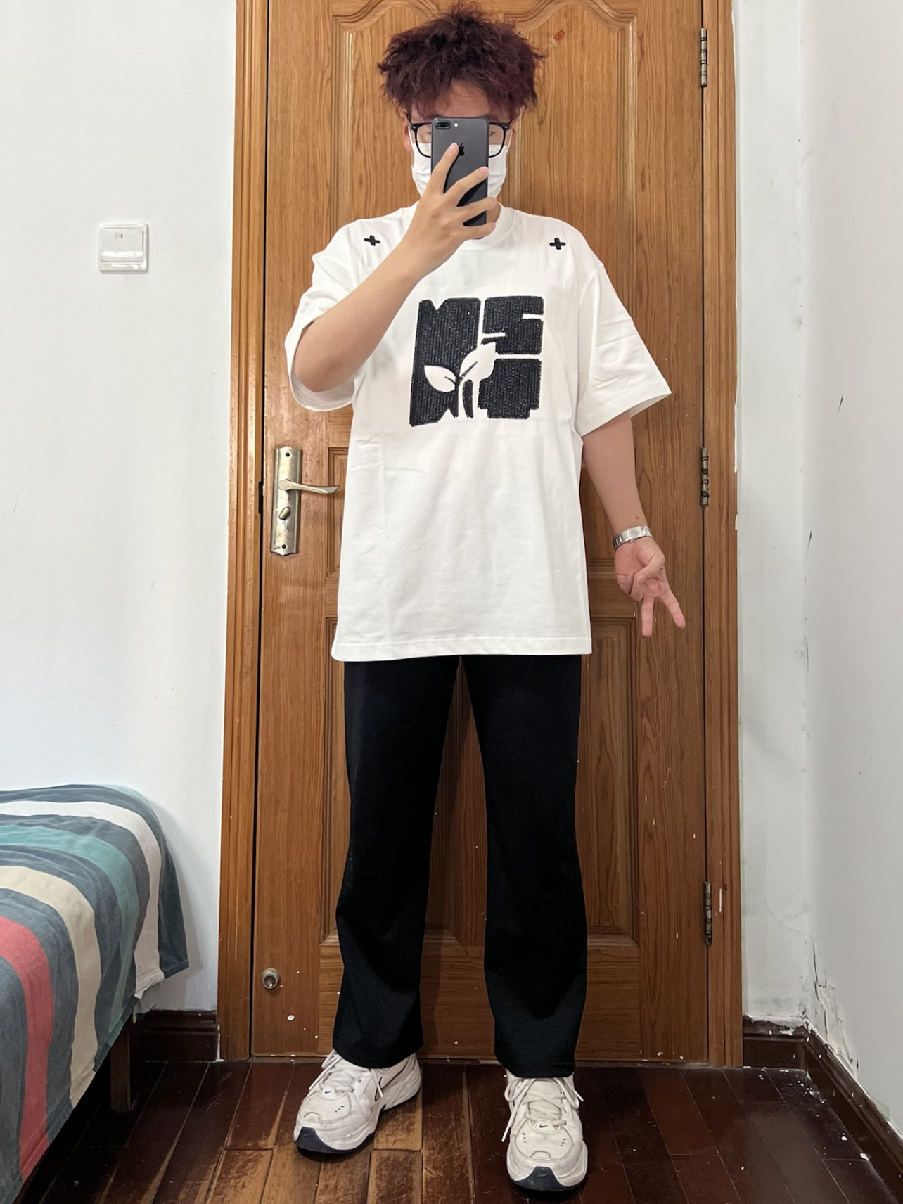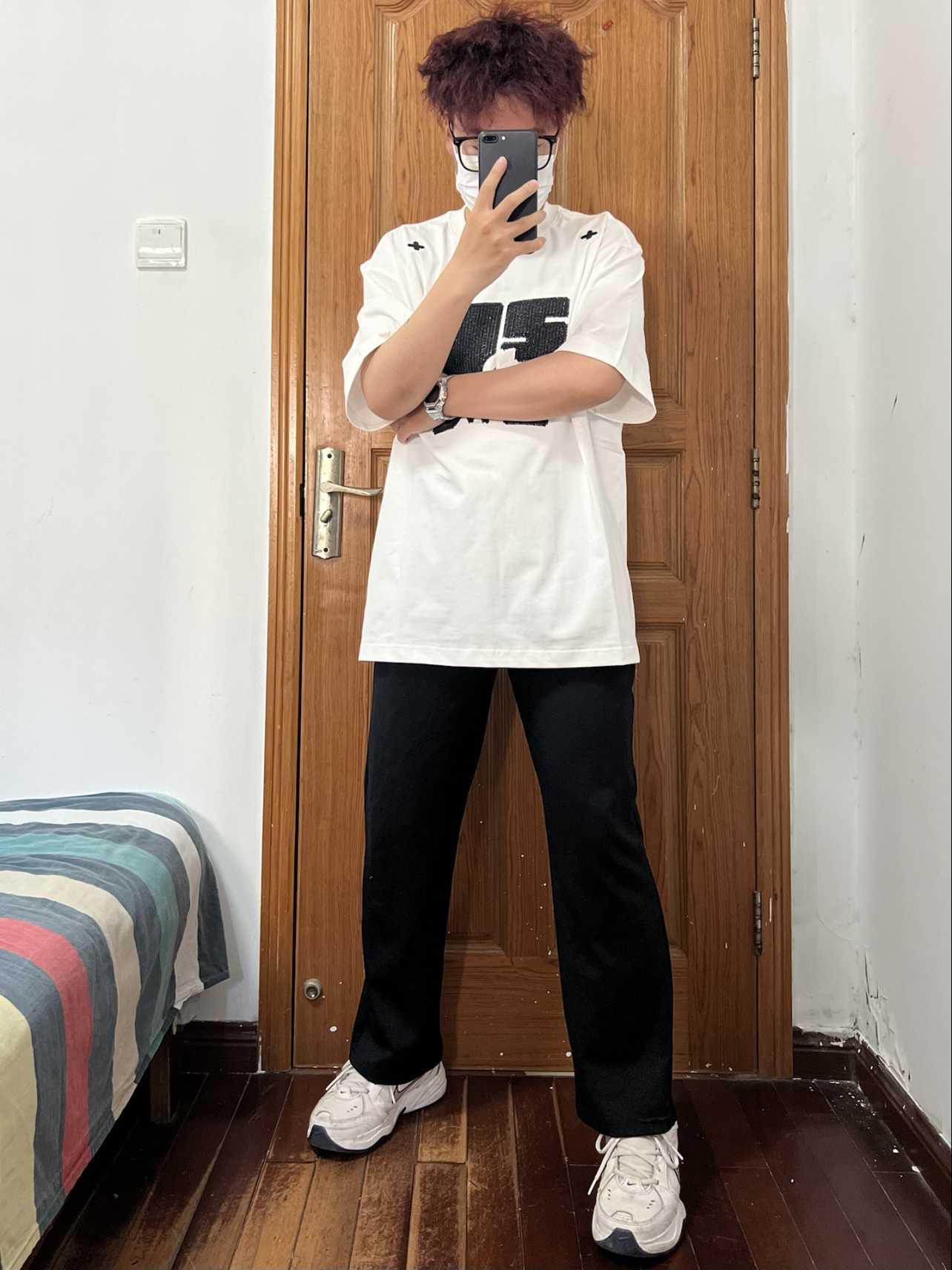今日份穿搭分享🎉 NSTNEW START 刺绣短袖T恤 白色作为基础款短袖搭配一个巨大刺绣 居然意外的好看帅气谁能忍❗️ 是logo与绿芽的组合贴合品牌的环保理念 肩膀处的两个❌❌很有特色 在众多白T中走出独属于自己的帅气哦 关键它的面料也很不错谁懂啊🉑️ 搭配一条黑色长裤和白色运动鞋 越简单越觉得帅气❗️ 👔 NSTNEW START 👖 黑色长裤 👟 Nike 🙋♂️ 170/120斤...