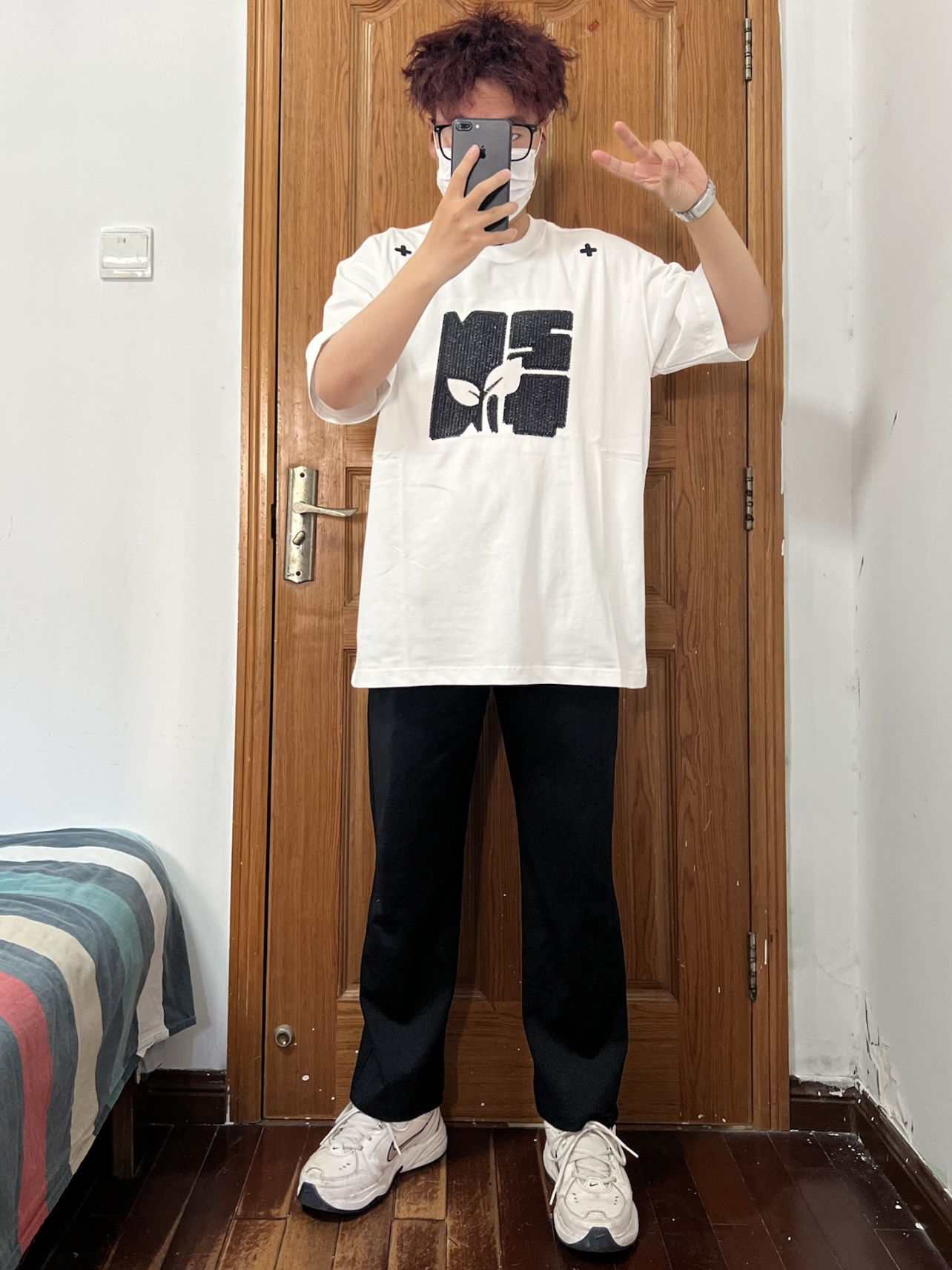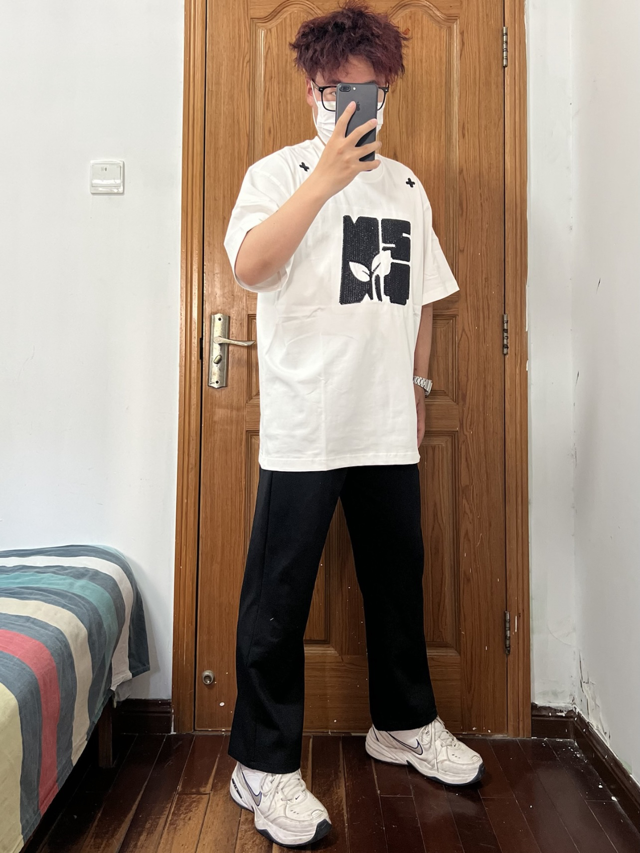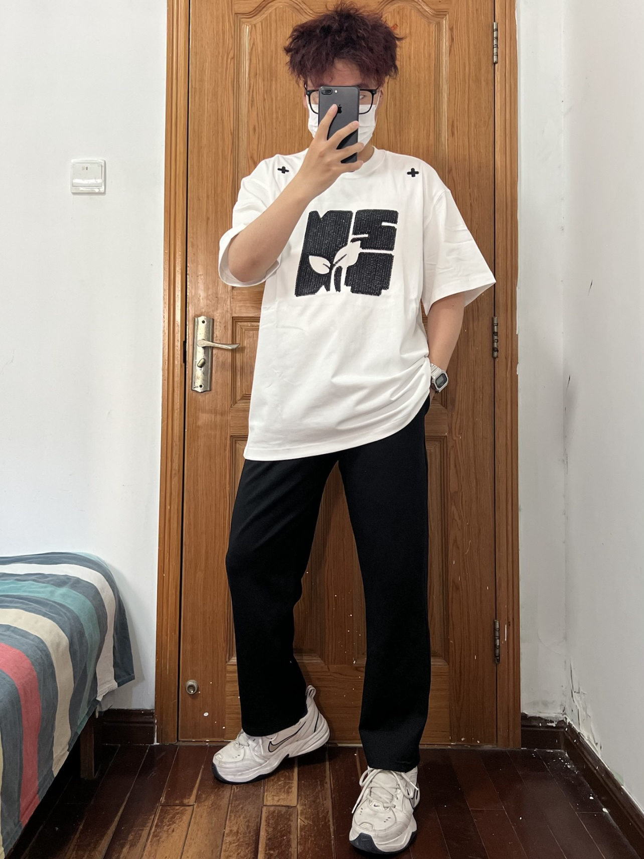 今日份穿搭分享🎉 NSTNEW START 刺绣短袖T恤 白色作为基础款短袖搭配一个巨大刺绣 居然意外的好看帅气谁能忍❗️ 是logo与绿芽的组合贴合品牌的环保理念 肩膀处的两个❌❌很有特色 在众多白T中走出独属于自己的帅气哦 关键它的面料也很不错谁懂啊🉑️ 搭配一条黑色长裤和白色运动鞋 越简单越觉得帅气❗️ 👔 NSTNEW START 👖 黑色长裤 👟 Nike 🙋♂️ 170/120斤...