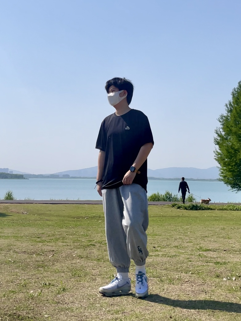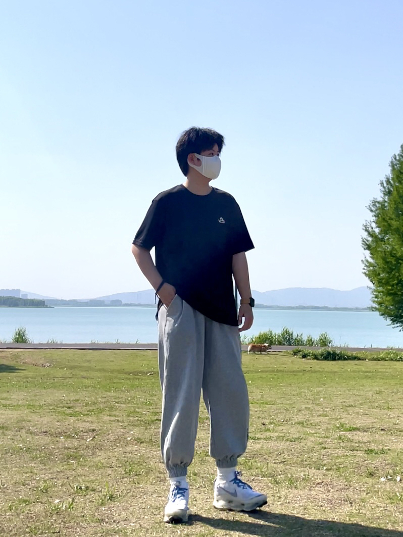 今日穿搭 T恤@伯希和PELLIOT 灰色束脚裤 nike气垫鞋 ——————————————— 简单干净的运动look 夏日户外活动的时候 一件吸汗透气的T恤真的太有必要 藏青色也十分的好搭配 速干的面料在炎炎夏日真的很舒服 上身超舒服的一件t