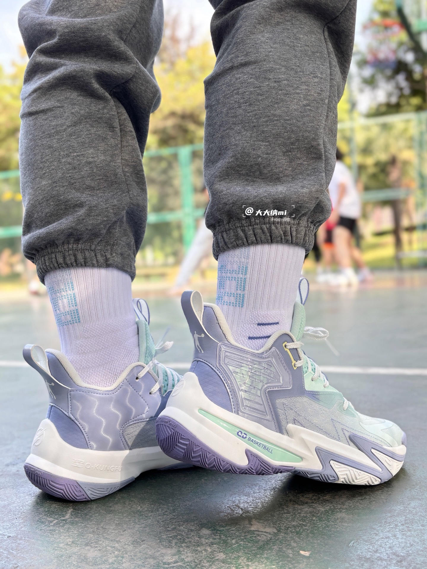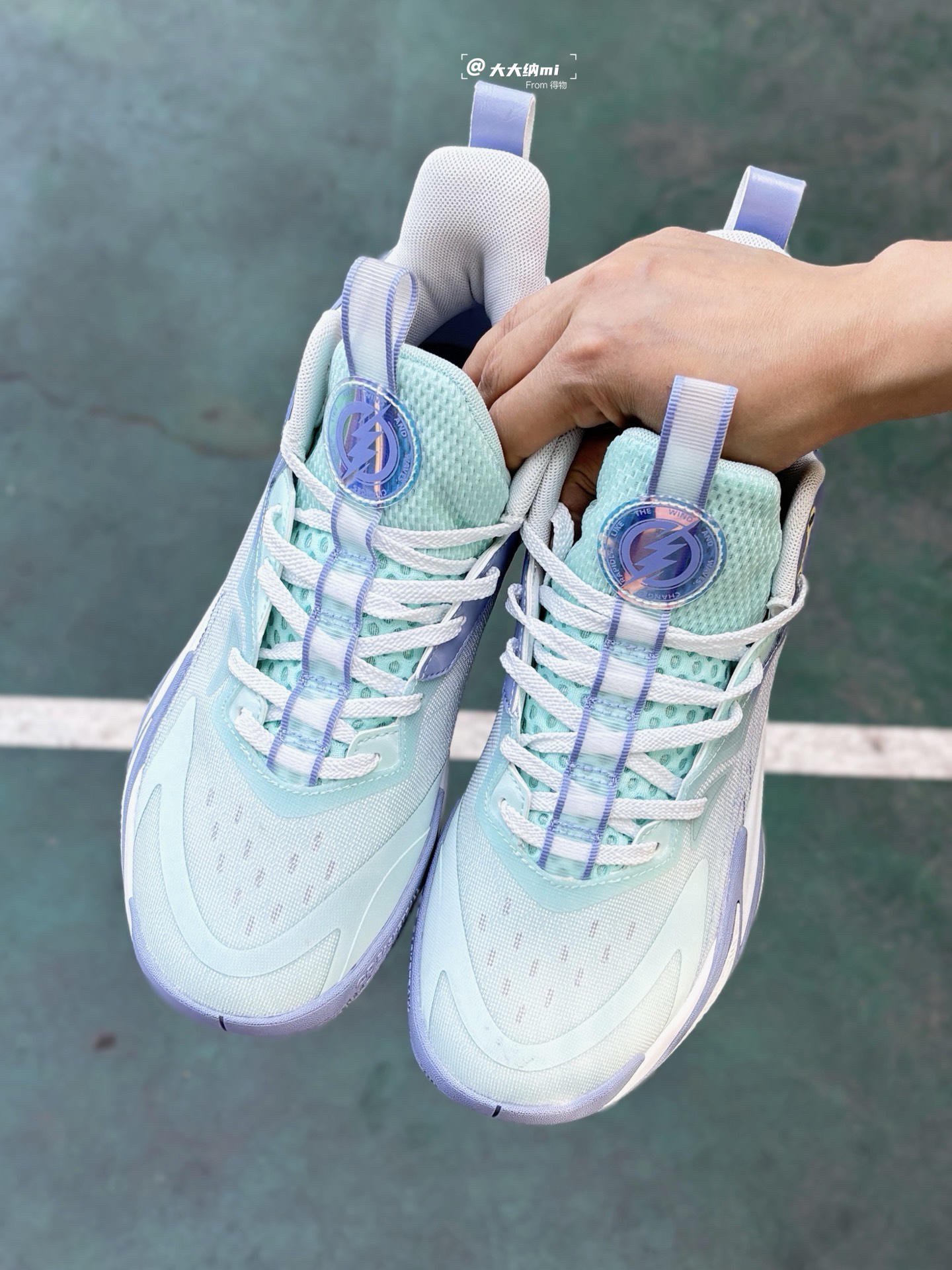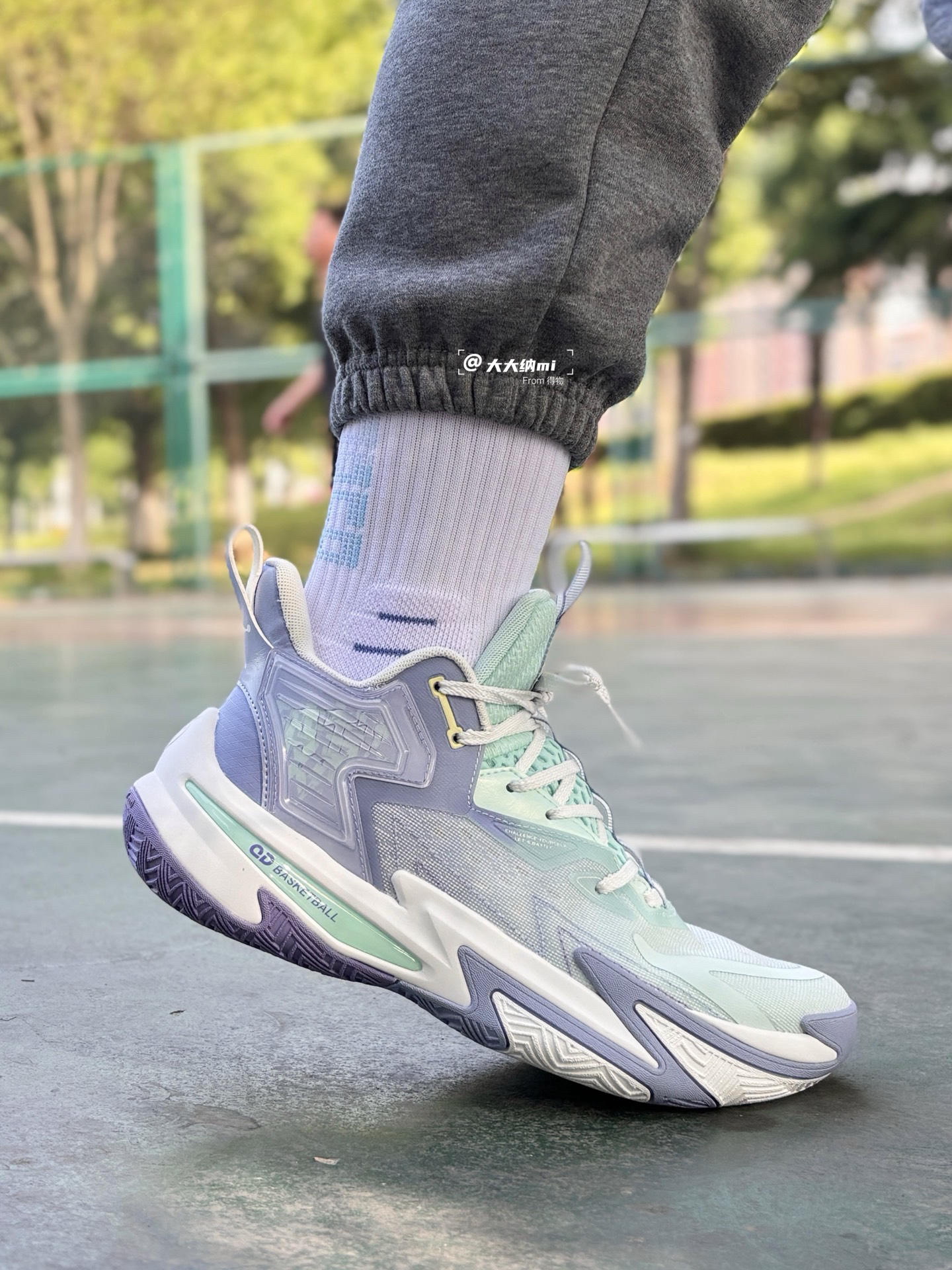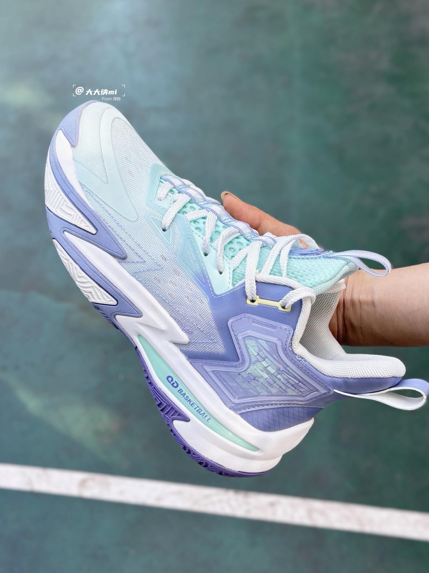 最近入手了这双乔丹 破影5 低帮篮球鞋,在外场实战体验了一番,分享下感受! 尺码方面: 身高175cm,体重60kg,体型和脚型都是偏瘦型,平时板鞋和运动鞋穿40码,由于要穿篮球袜的缘故,这双选择的40.5码就正好,喜欢的朋友建议大半码上脚会更舒服一些。 外观设计 配色是星黛紫色,也就是淡绿色+深浅蓝色,比较淡雅清新,我感觉这配色用来穿搭也会很好看,哈哈。鞋底则是篮紫白三色,与鞋身配色很好的...