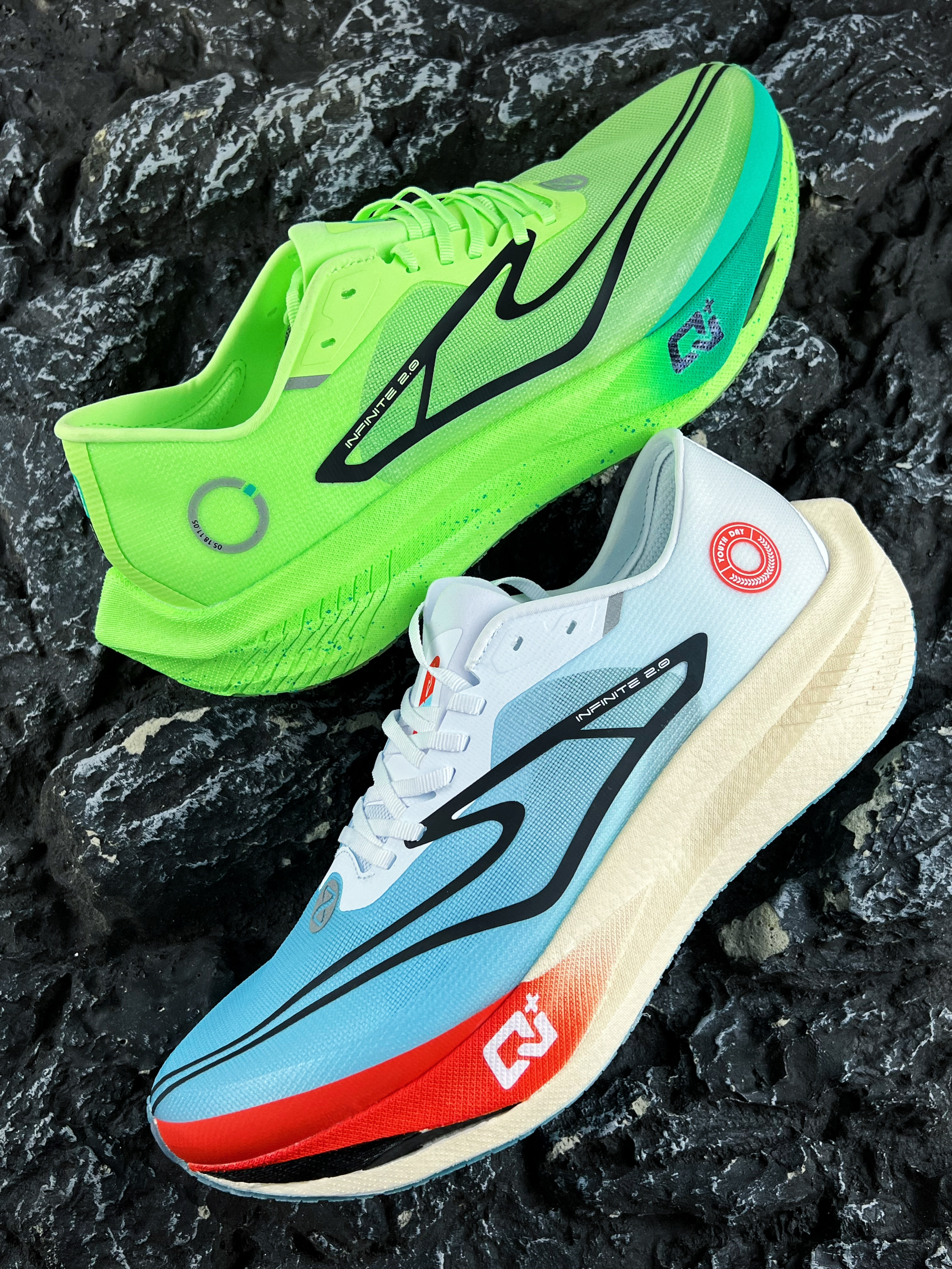 🍃开箱即分享 今天和大家分享两款高颜夏日实战竞速跑鞋 就是我手上这款鸿星尔克芷境2.0芷茵和红蓝配色 两款鞋子的实物颜值还是蛮酷炫呢 中底双密度超临界科技,脚感澎湃,推进力十足 橡胶外地的抓地以及耐磨表现还是蛮不错的 对于体测、马拉松、进阶跑着还是蛮推荐的 尺码不偏,正码