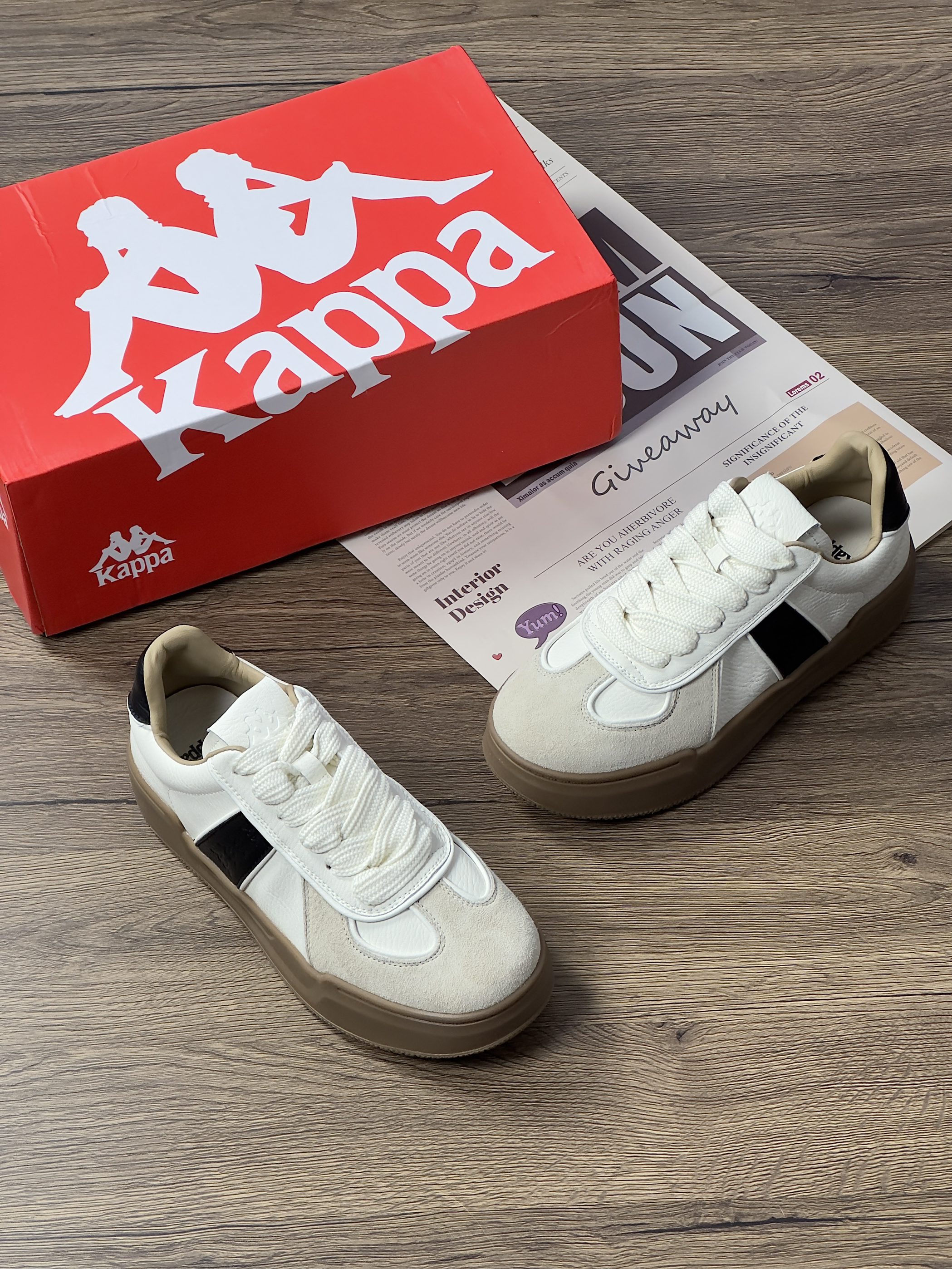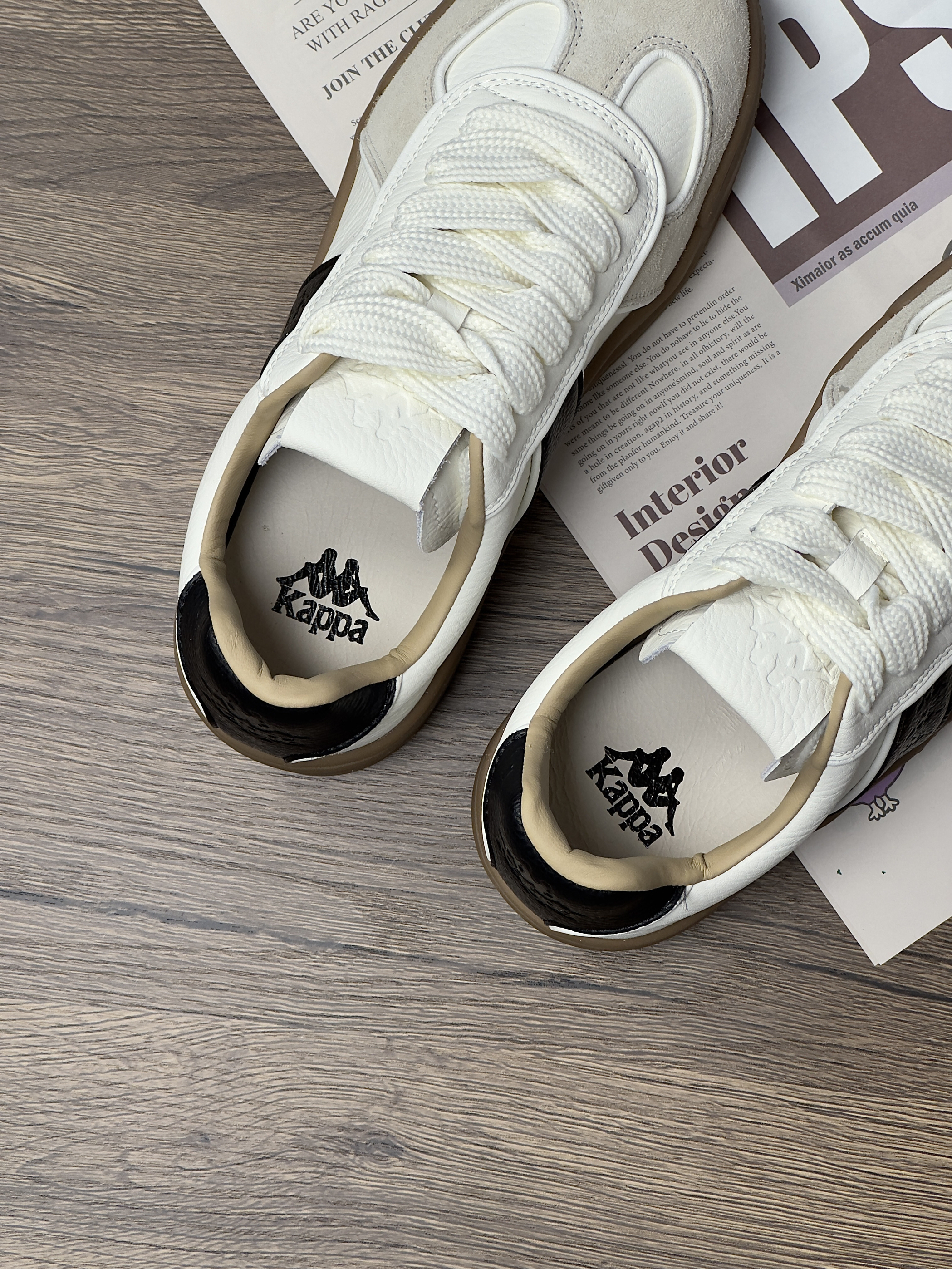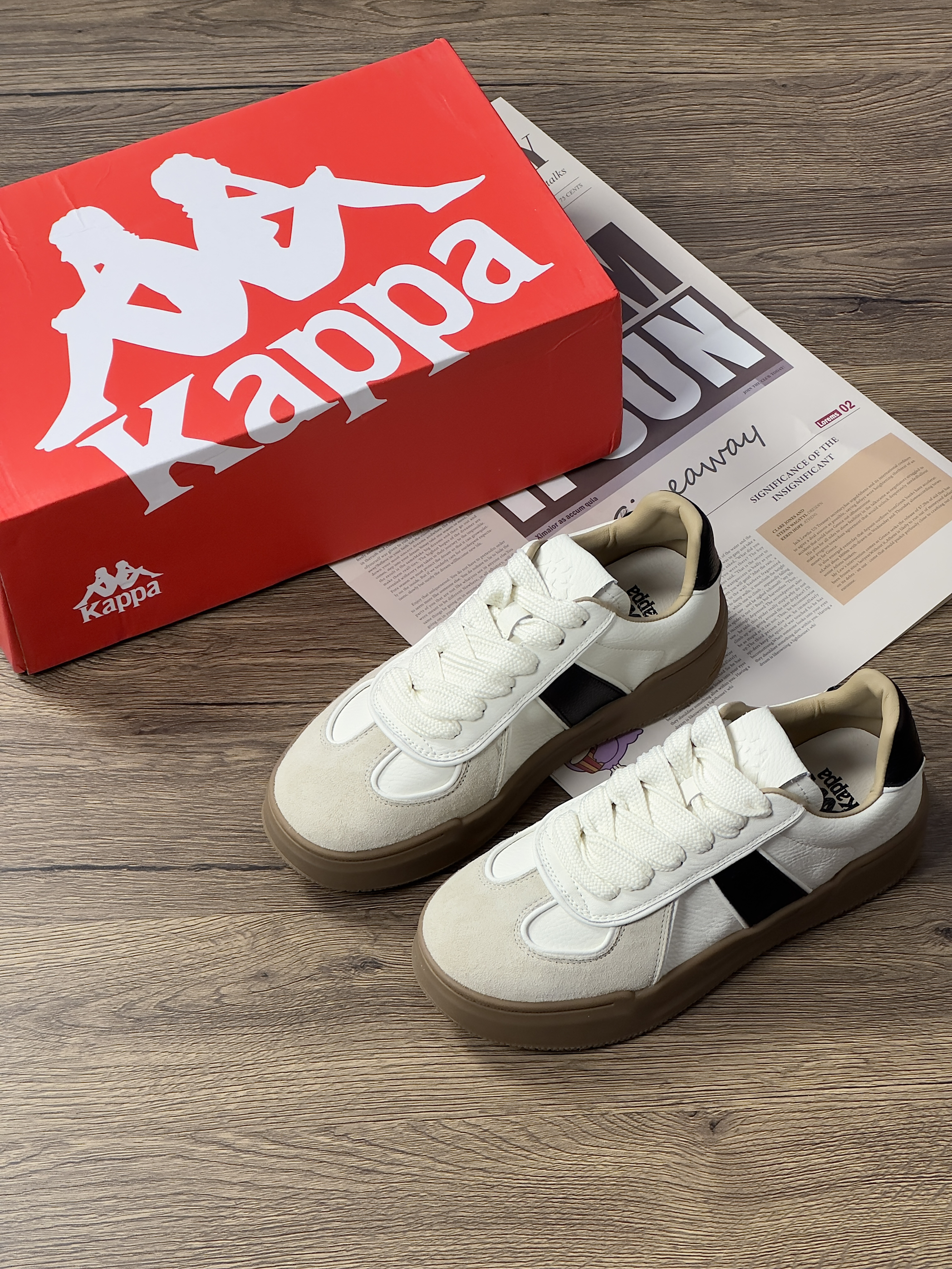 👟:Kappa 转角巴黎系列 厚底低帮板鞋 女款 米黑色 hello,这里是陈白羊🐑!今天给大家分享一款Kappa的厚底德训鞋 TA的鞋面整体由米白色为主调,细节部分辅以黑色🖤与浅灰色修饰,以及自带氧化效果的棕色🤎大底,在翻毛皮材质的衬托下,给人一种即复古又高级的感觉。 对于日常通勤来讲,任意搭配牛仔裤👖、工装裤,或者裙装和短裤➕小白袜🧦都是好看的,大厚底设计还有着3cm左右的显著增高。🌟:...