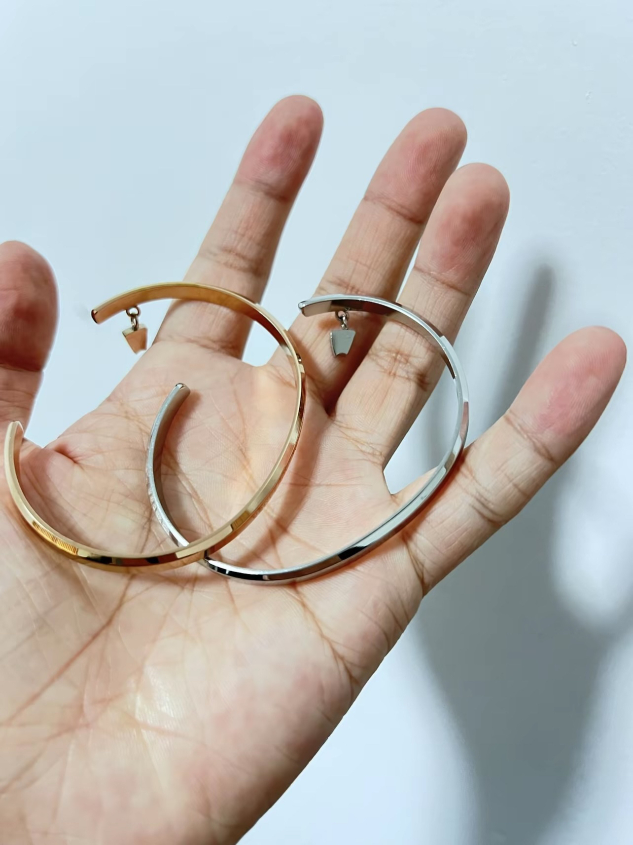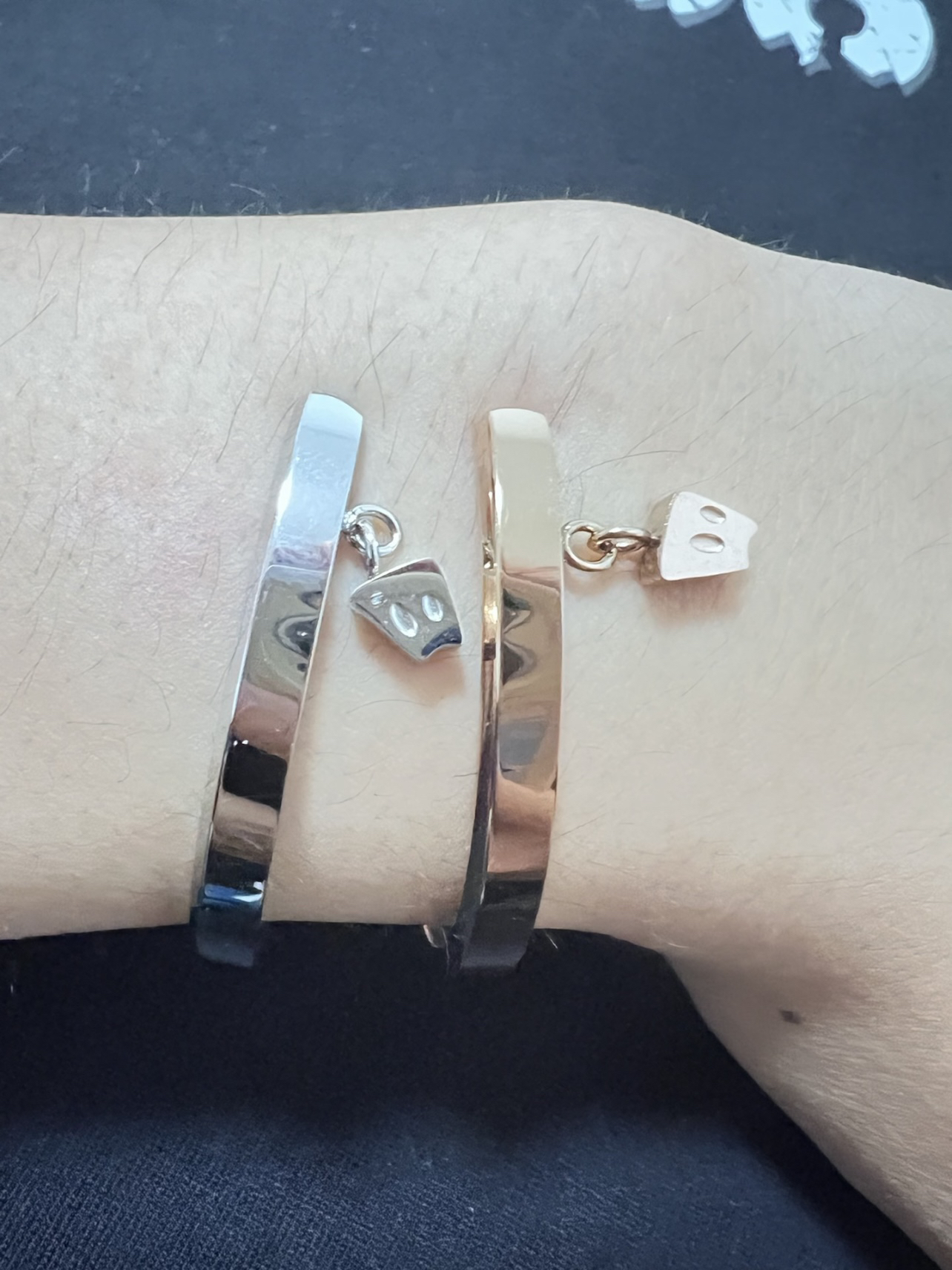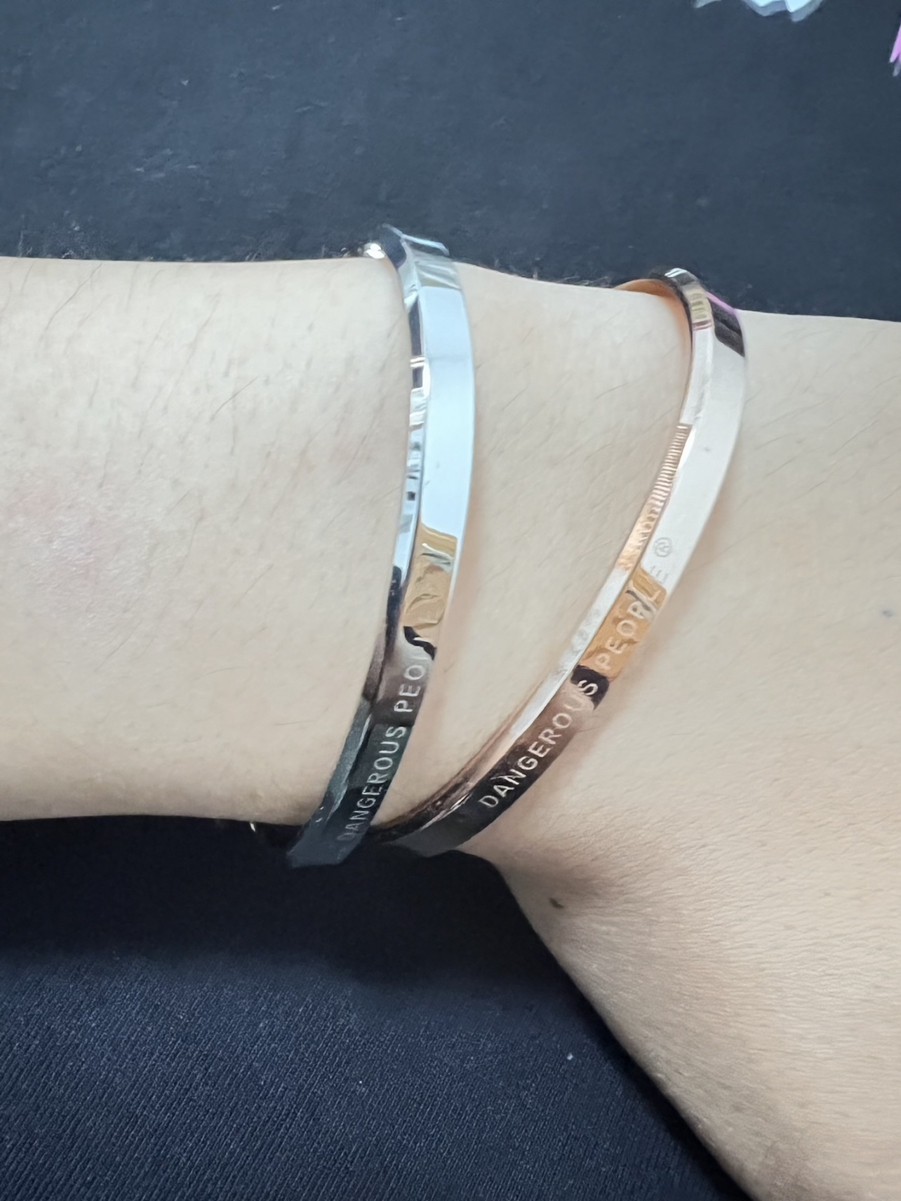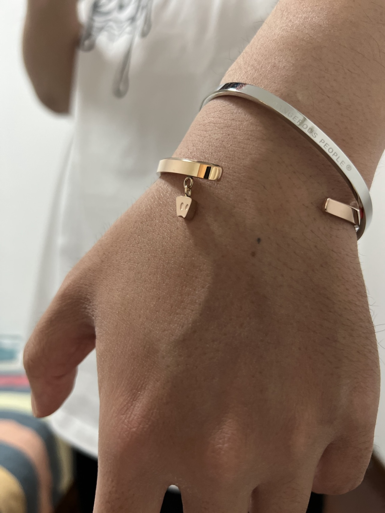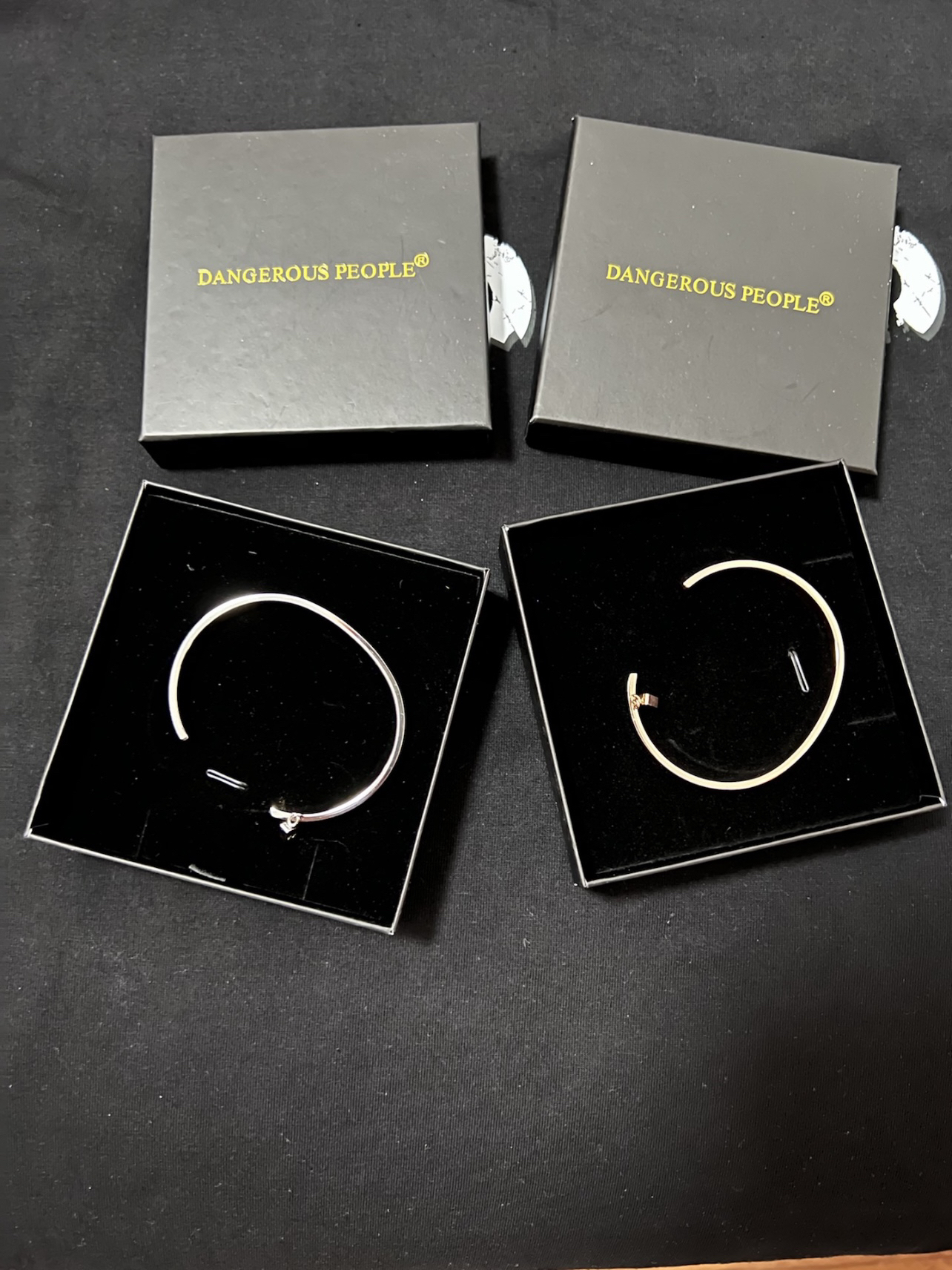 今日份宝藏配饰分享🎉 DANGEROUSPEOPLE 纸袋人吊坠半开口手镯 材质是316L不锈钢的分为玫瑰金和银色巨好看 亮面反光还有字母logo和纸袋人吊坠 送女朋友绝对会被一顿猛夸哈哈哈 情侣搭配还是个人穿搭都蛮不错的 关键它这两个颜色都巨显白有没有❓ 这里是伤心黑灯的宝藏配饰分享 喜欢的可以关注点赞哦