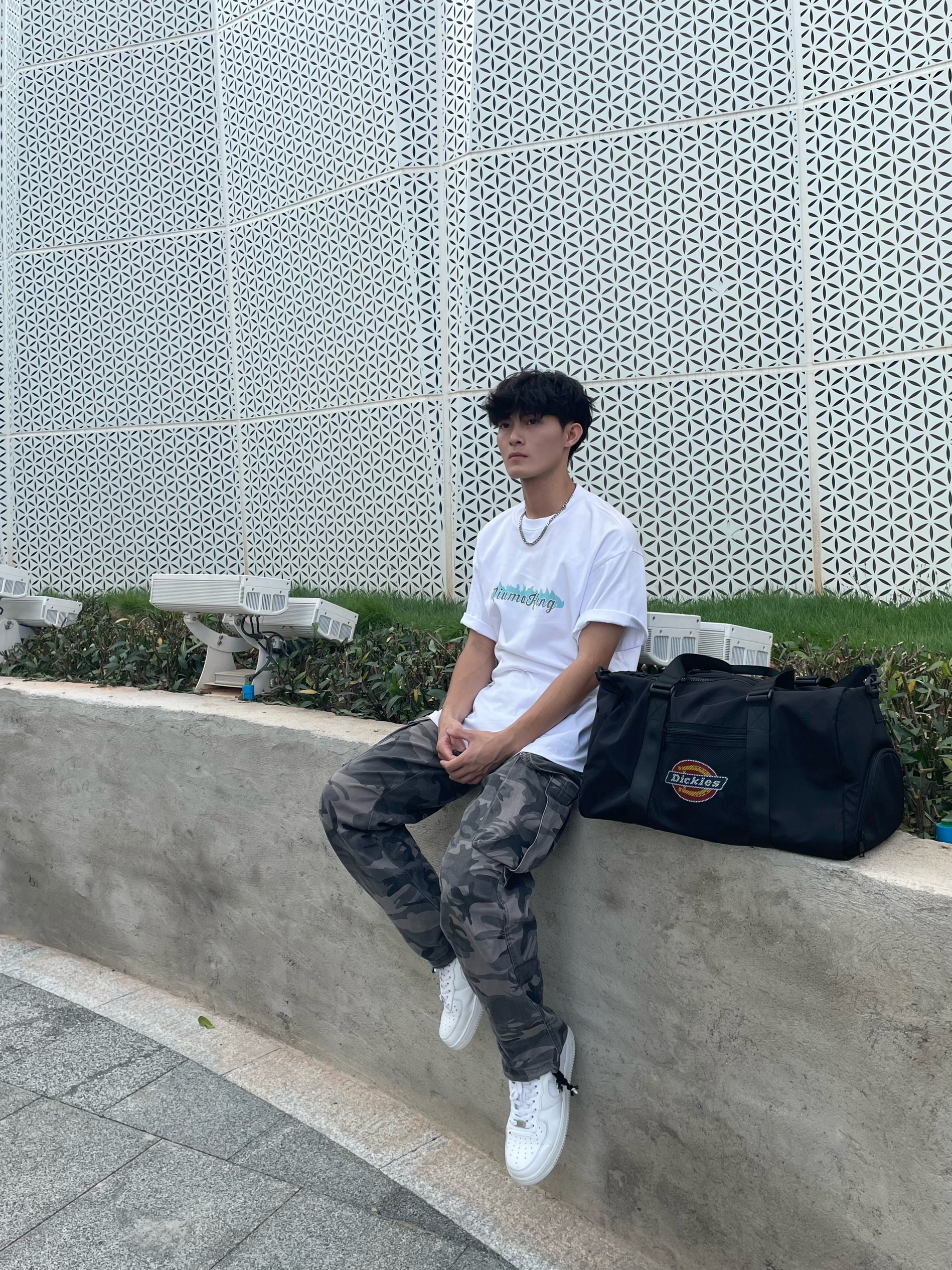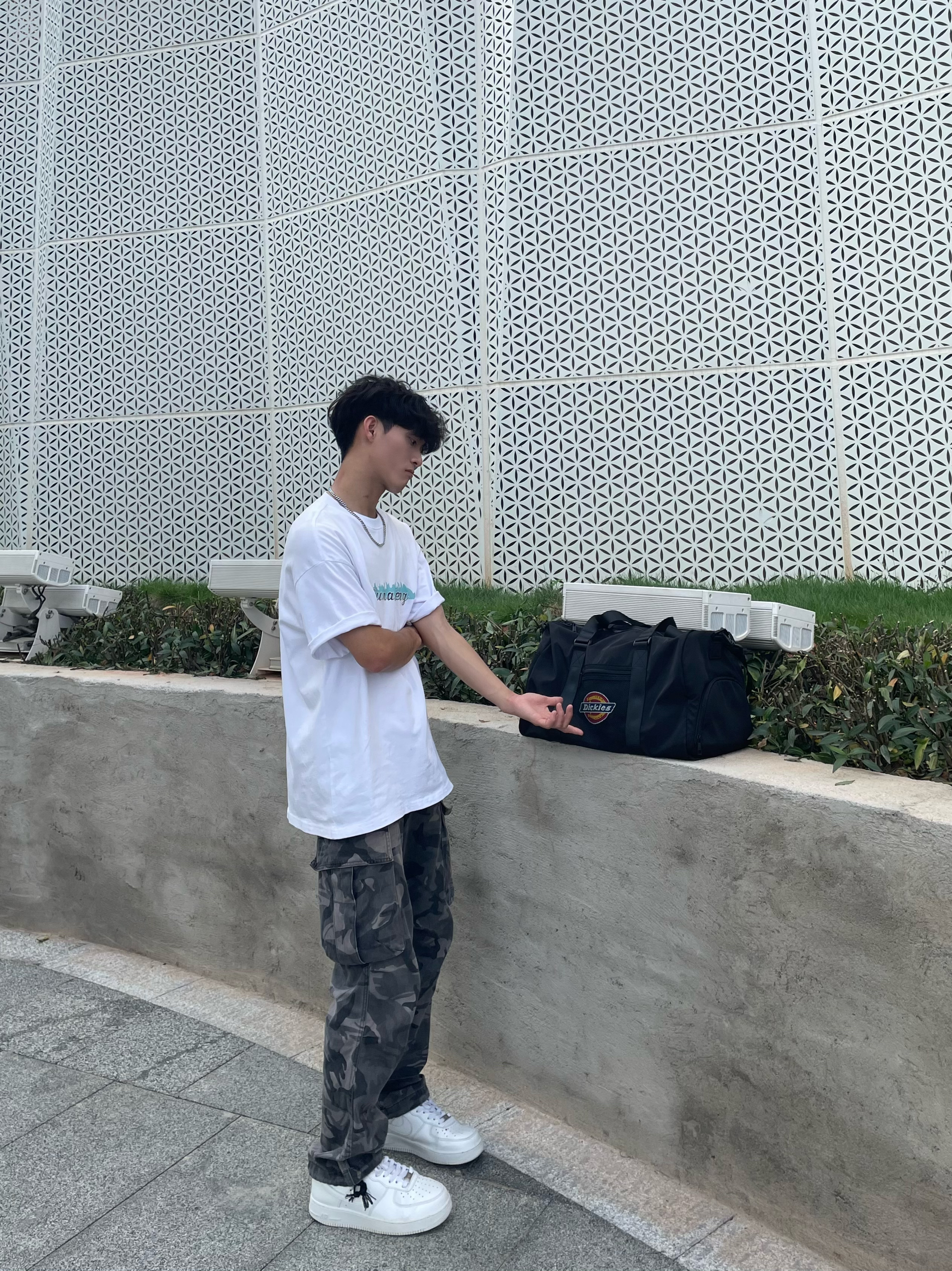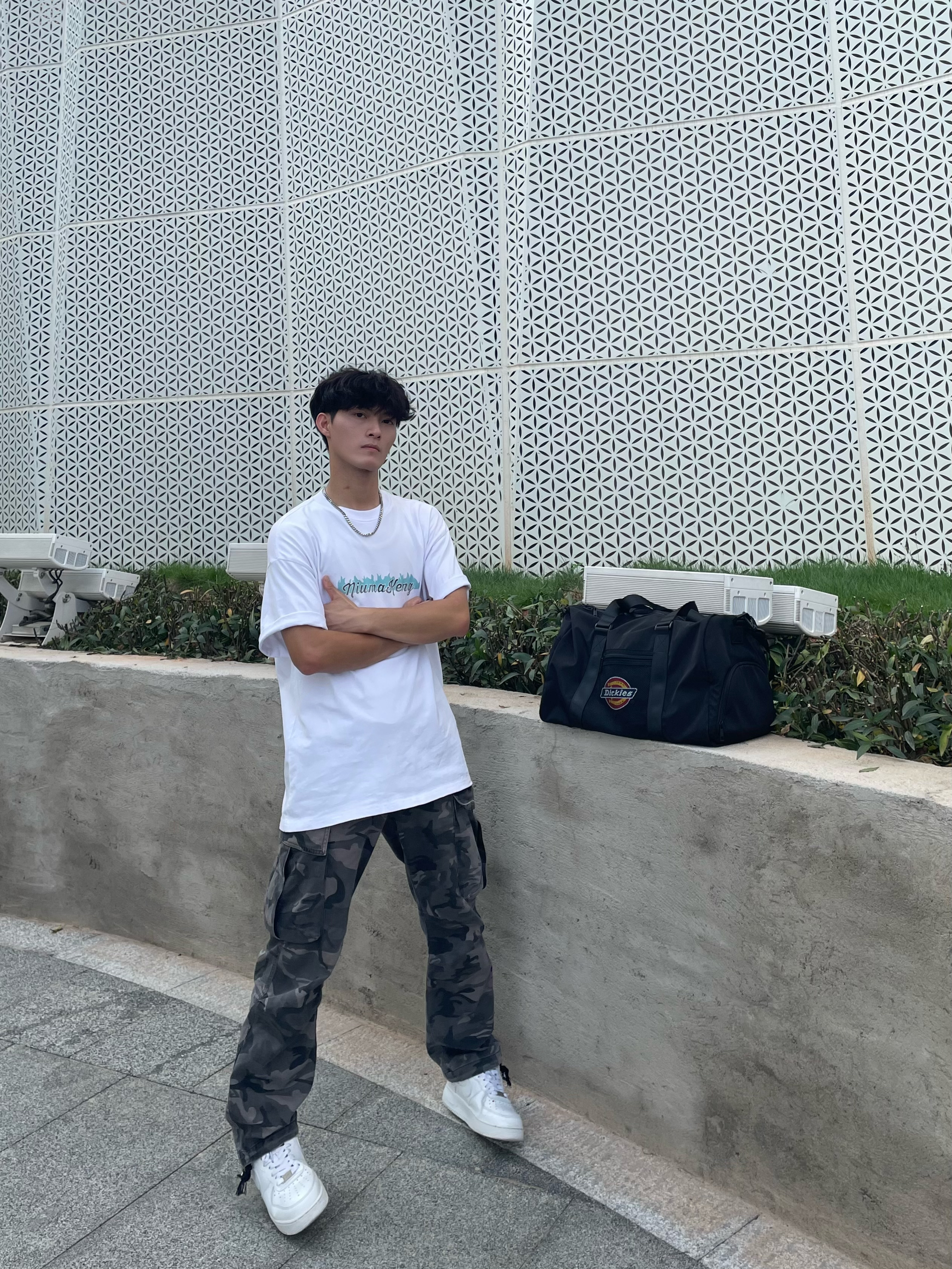 介绍分享一下今天的休闲穿搭吧 男生平时外出时也得搭配一个健身挎包[机智_blue] 夏天穿着一件简约式白色T恤,面料不闷热透气性好,宽松休闲的版型不挑身材,再搭条同样是宽松直筒式的迷彩裤,百搭又不单调,情人节这么穿搭女朋友准夸你帅[得意_blue] — 拥有一个斜挎包,不是什么大事,可在我们出门运动去打球的时,还是上健身房健身的时,我们需要携带一些装备的时候,这个包就能体现出很大的作用,大容量的包...