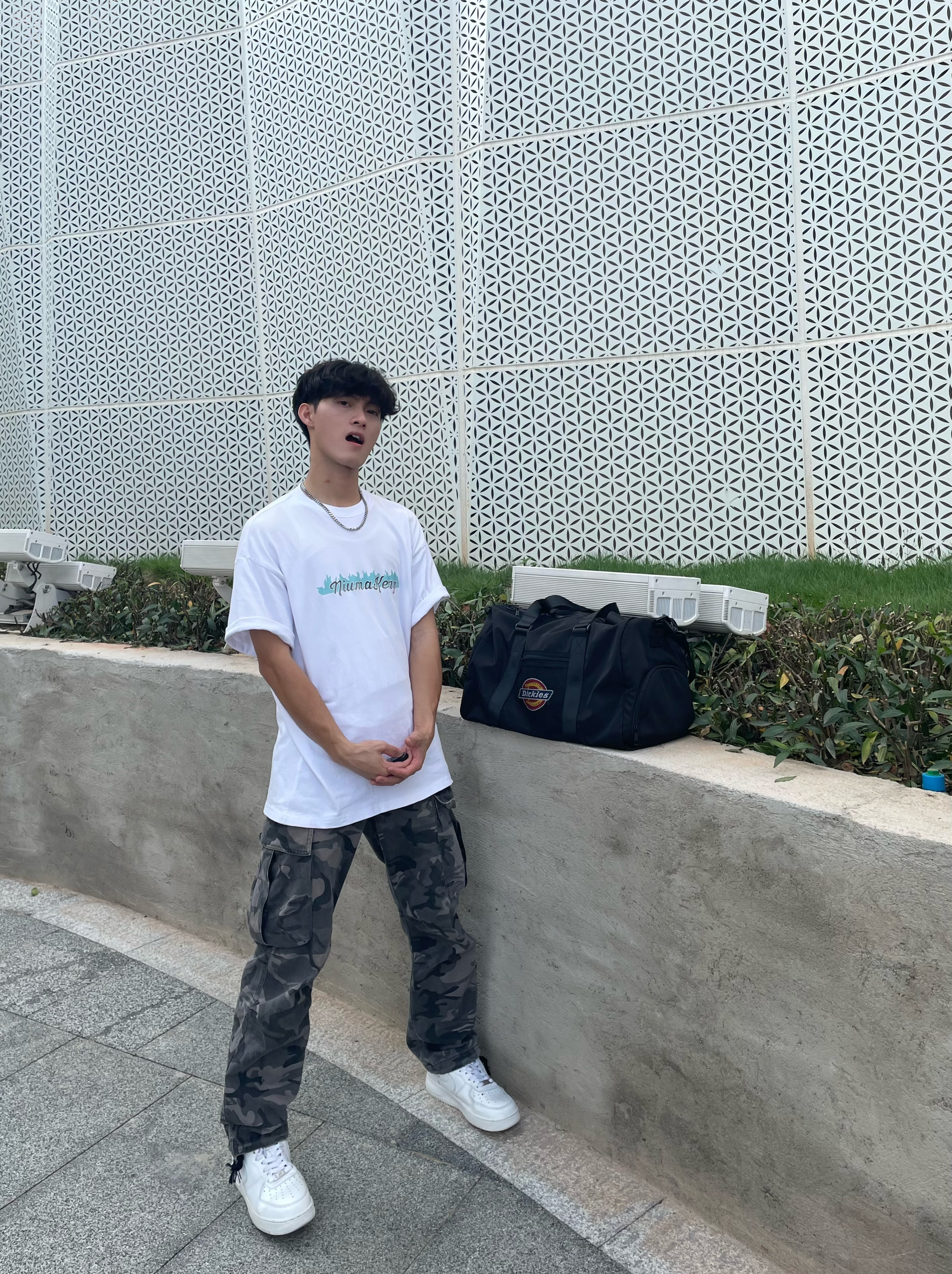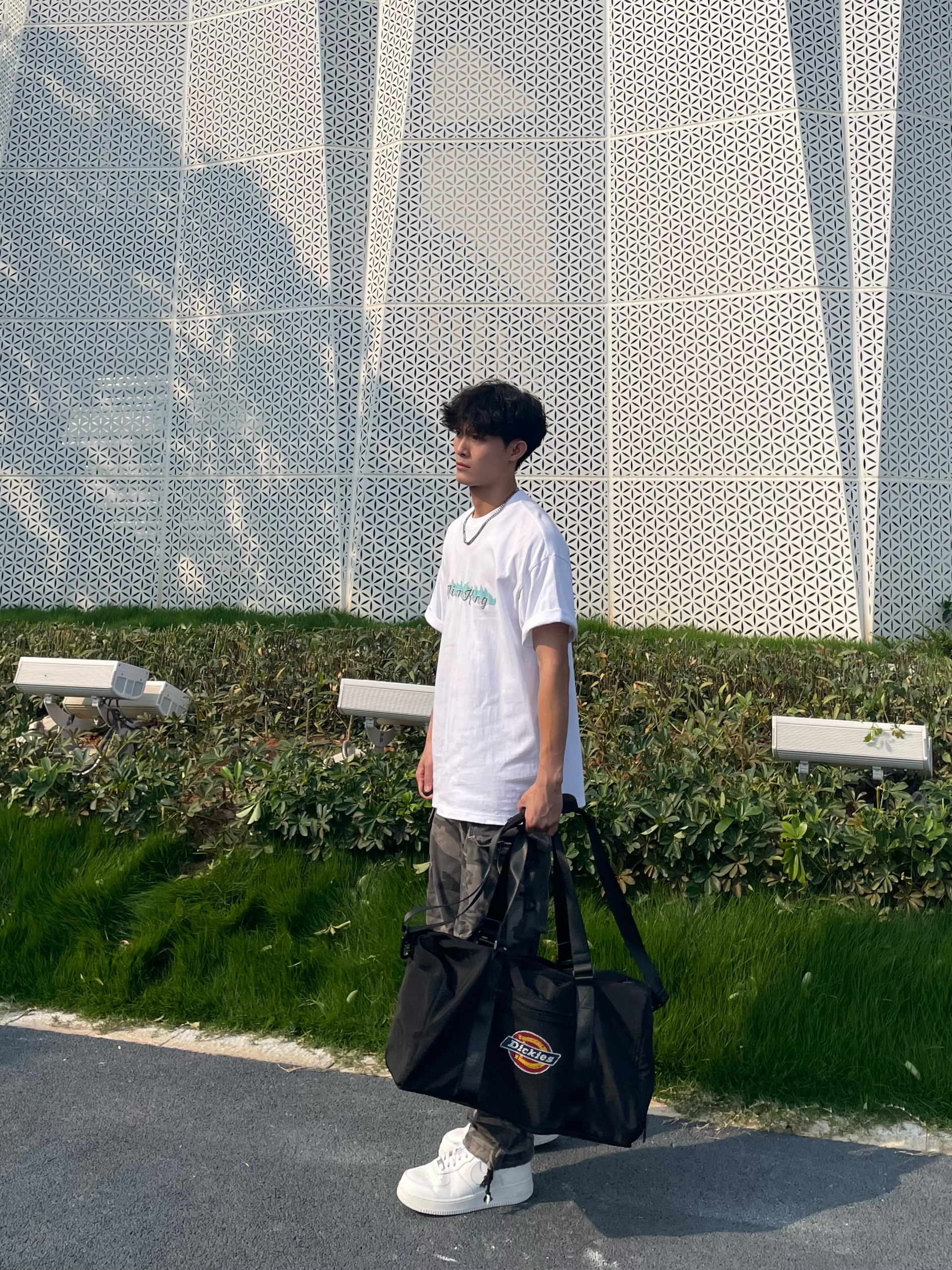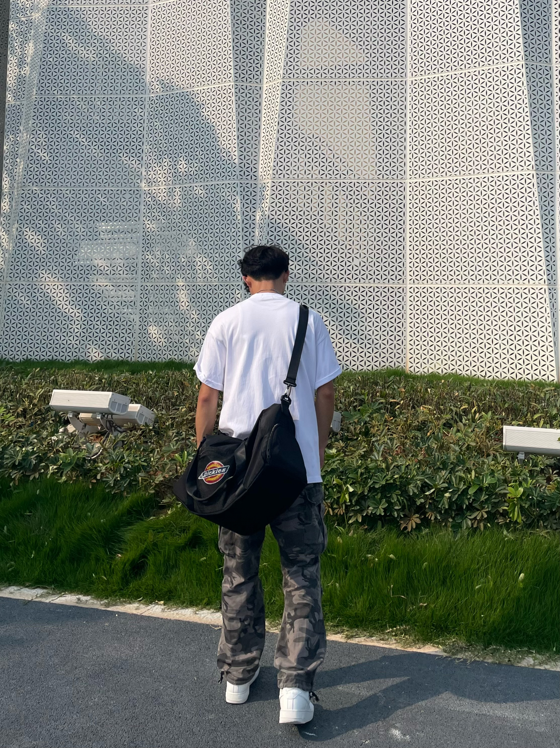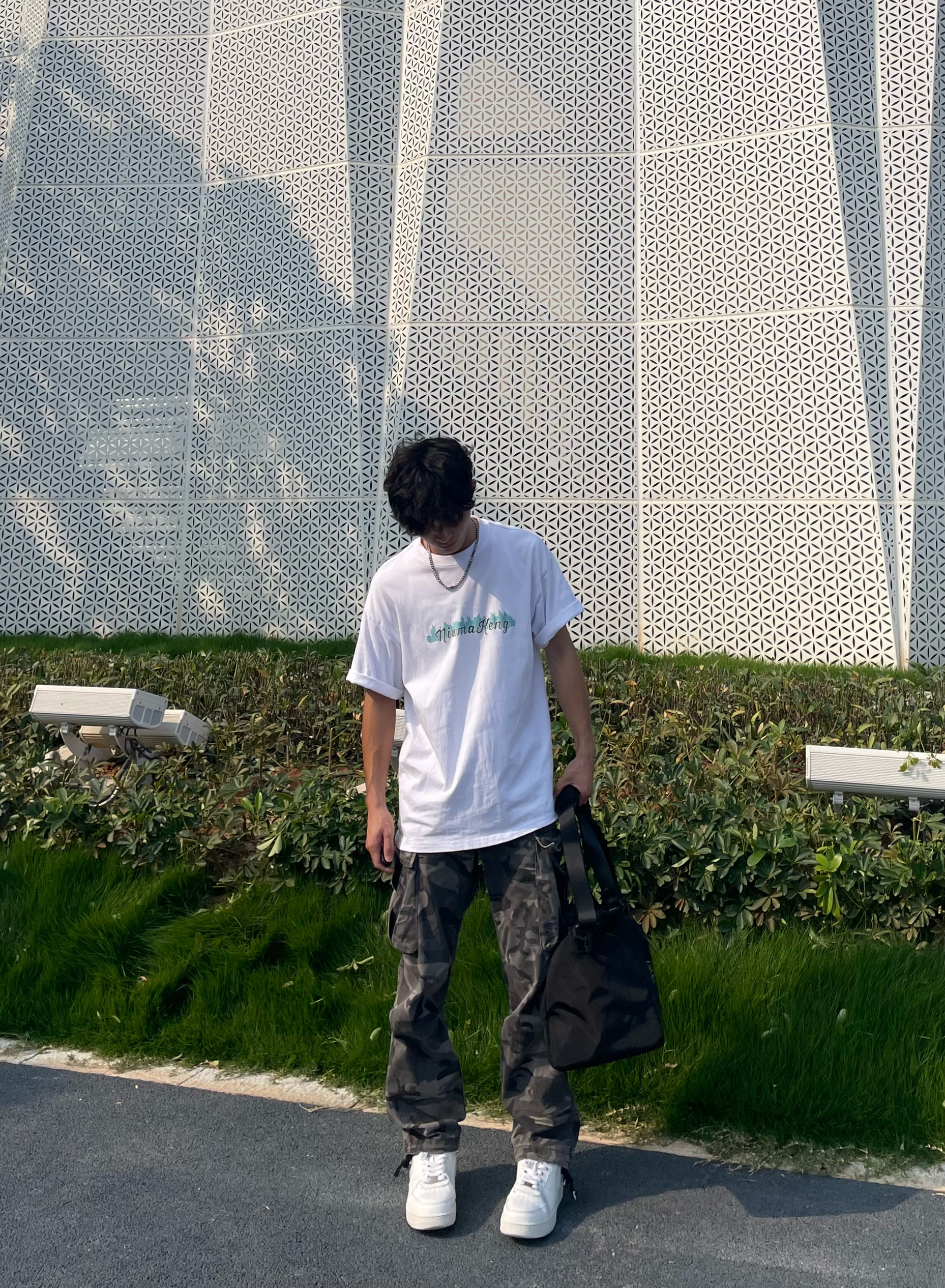 介绍分享一下今天的休闲穿搭吧 男生平时外出时也得搭配一个健身挎包[机智_blue] 夏天穿着一件简约式白色T恤,面料不闷热透气性好,宽松休闲的版型不挑身材,再搭条同样是宽松直筒式的迷彩裤,百搭又不单调,情人节这么穿搭女朋友准夸你帅[得意_blue] — 拥有一个斜挎包,不是什么大事,可在我们出门运动去打球的时,还是上健身房健身的时,我们需要携带一些装备的时候,这个包就能体现出很大的作用,大容量的包...