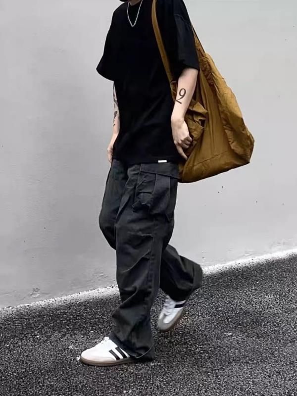 裤子黑色的颜色,整体做了水洗做旧处理,表面会有泛白的做旧感。面料的硬度适中,不影响舒适度的情况下保证了整体立体感。 裤子小腿处做了一些打褶的设计,褶皱感使正面看层次感更丰富,整体的裤型也略微呈现一个更时尚又不夸张的弯刀型。 #男生工装裤穿搭 #百搭工装裤 #工装穿搭 #懒人穿搭攻略 #每天一个穿搭灵感 #可持续时尚 #潮流时尚 #每日穿搭 #OOTD穿搭 #工装裤 #男生穿搭 #春季穿搭 #开春...