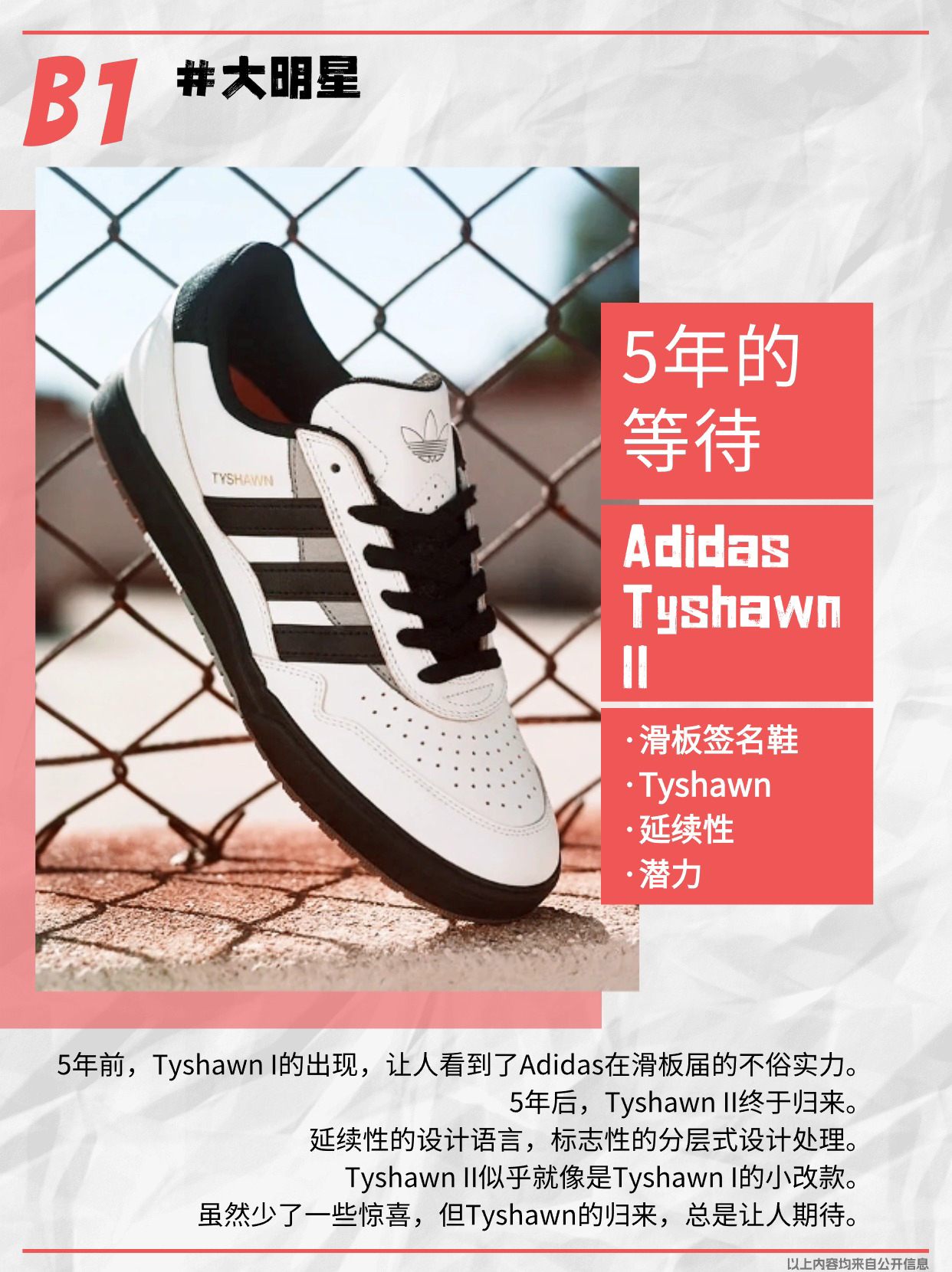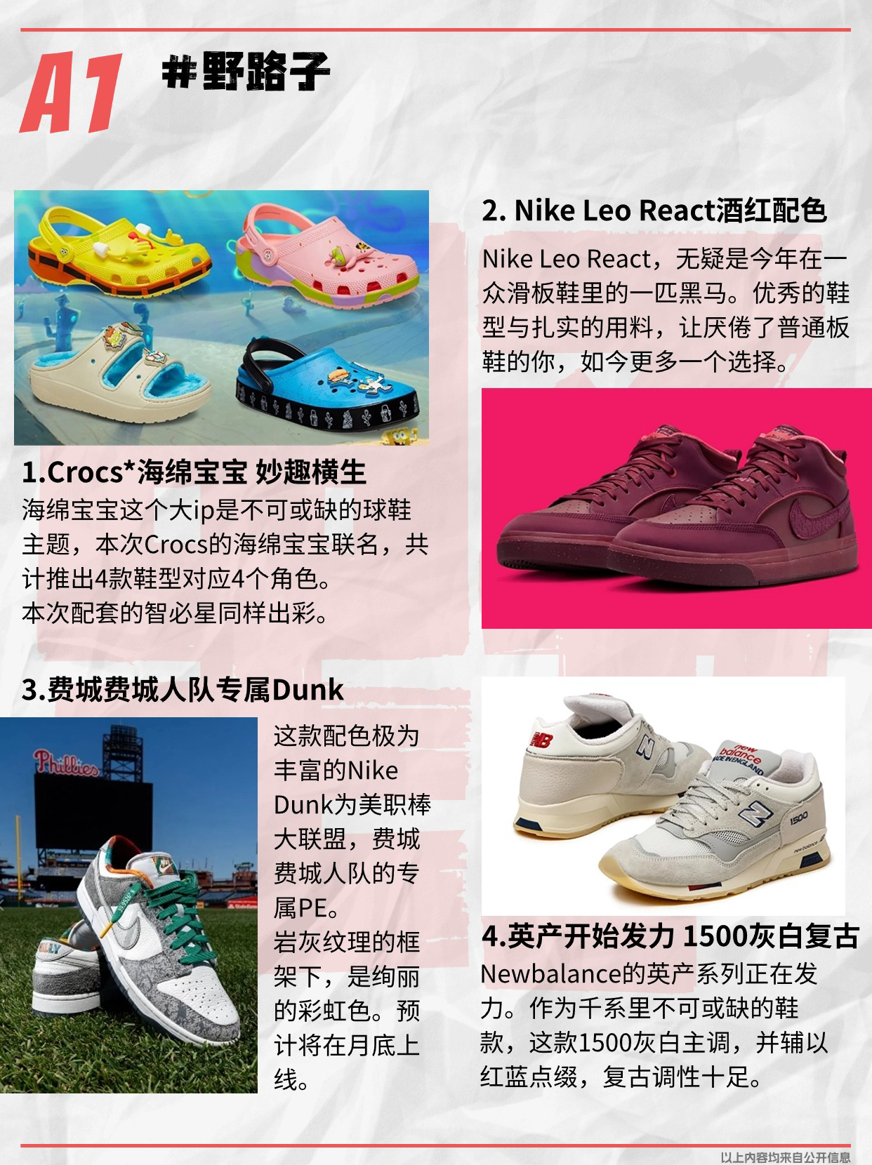 欢迎收看今日份的《好鞋有好报》,今天是2024年05月24日。 以下是今日汇总: · 封面明星 —大明星:Adidas Tyshawn II · A1 野路子 —1.Crocs*海绵宝宝 妙趣横生 —2. Nike Leo React酒红配色 —3.费城费城人队专属Dunk —4.英产开始发力 1500灰白复古 · A2 野路子 —5.经典黑红 CB94复刻归来 —6.优雅 Air Max ...