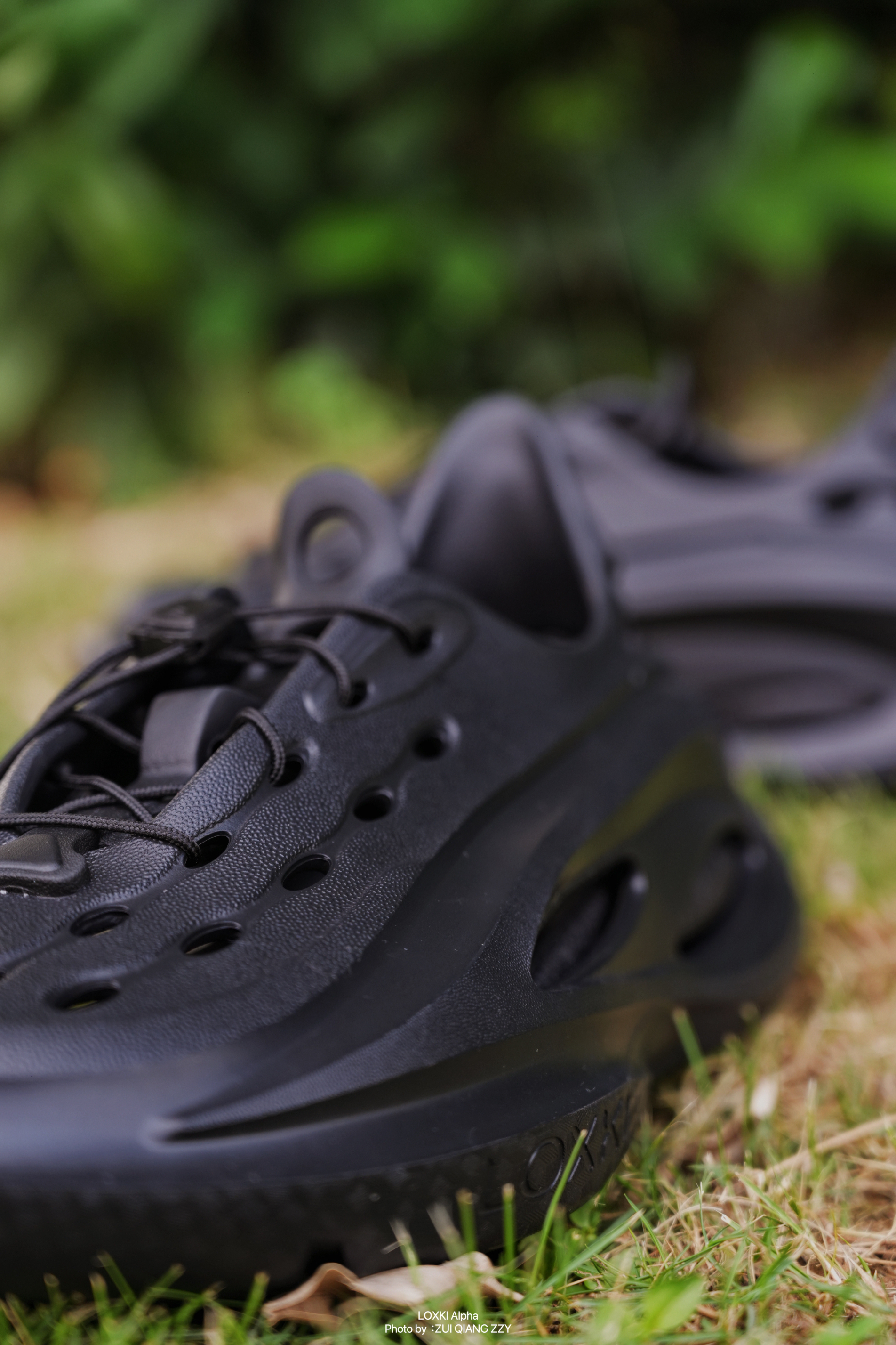 分享我的夏季新鞋,方便好穿的LOXKI Alpha洞洞鞋,选择的是全黑配色,整一个黑武士风格~酷🆒 -抽拉式绑缚系统、可拆卸软弹带中足支撑的EVA发泡中底、流线具有未来感的造型等等,种草很久了,终于这个夏天成功“拔草”。 -夏天户外溯溪走起~