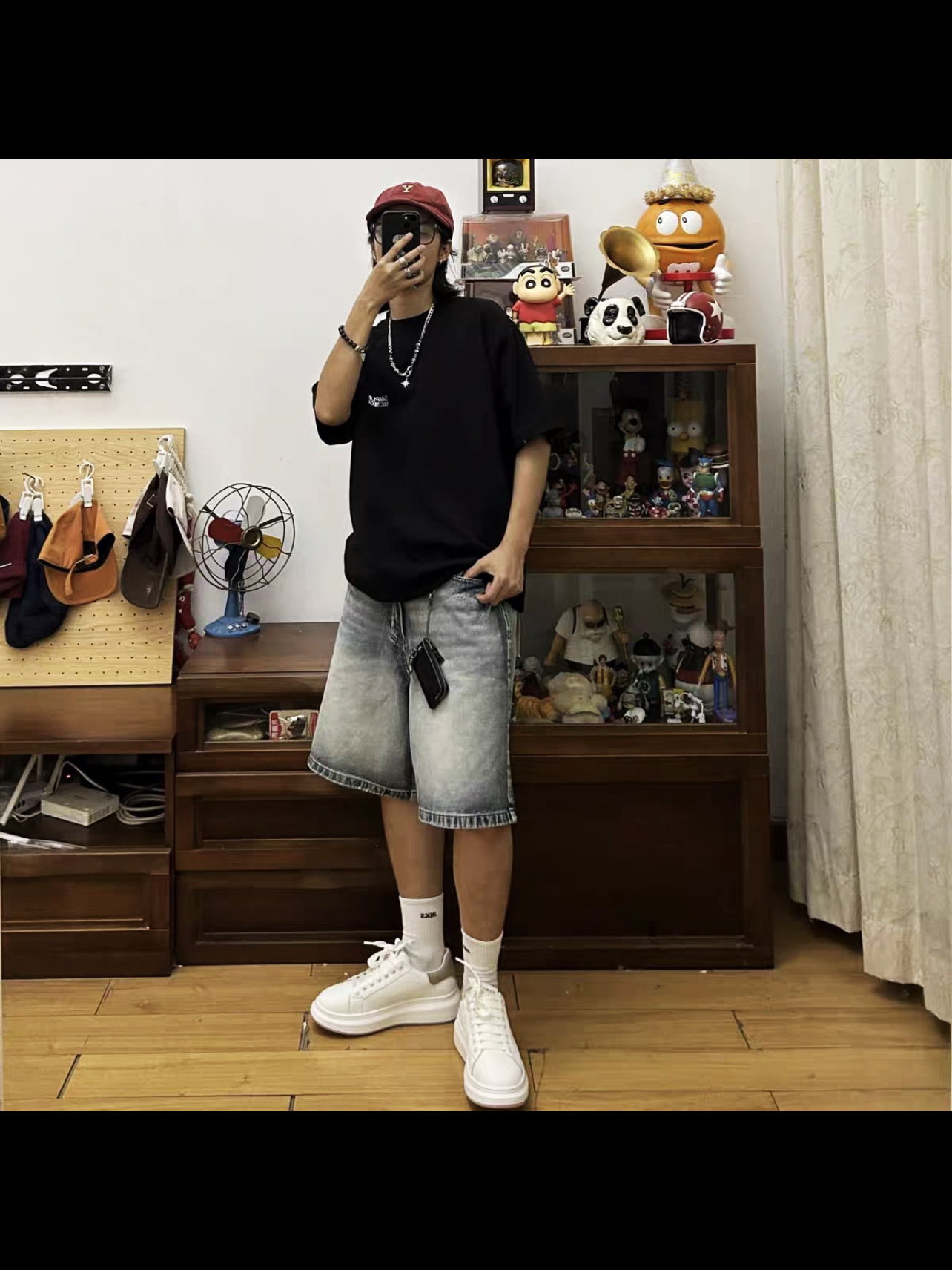 夏日简单大方的休闲穿搭 简单的黑色穿搭也可以很好看 夏日穿黑灰色也OR 分享今日的OOTD 上身是黑色印花美式T恤 搭配黑色运动短裤 当然夏日穿搭怎么能少得了百搭老爹鞋呢 今天搭配的鞋子是马克华菲FAIRWHALE的春夏四季 都可穿的老爹鞋,柔软舒适还透气,隐形增高5厘米 哈哈,款式简约百搭,很潮流的一双鞋子。 夏日这样穿就OK啦,简单好看。