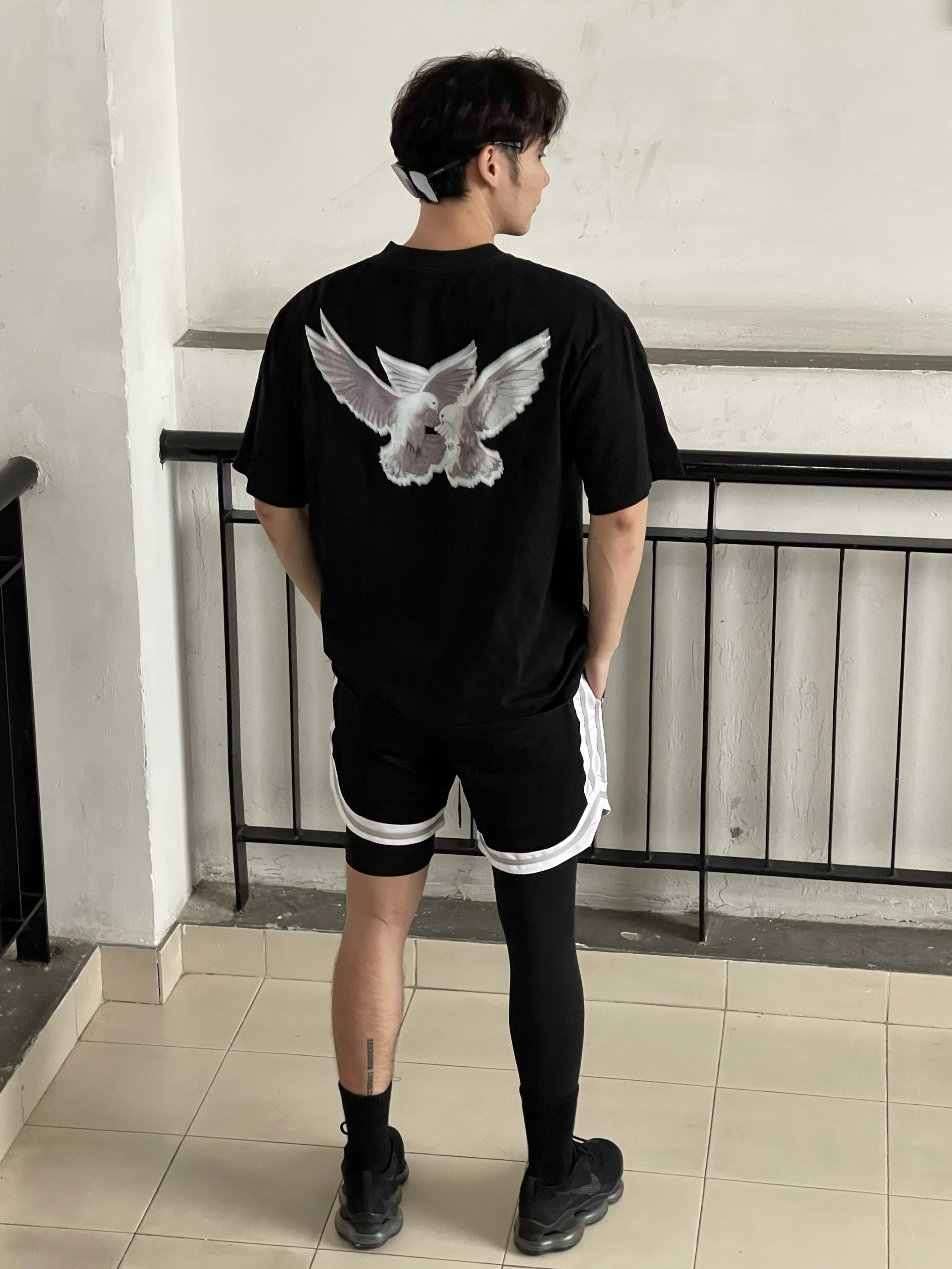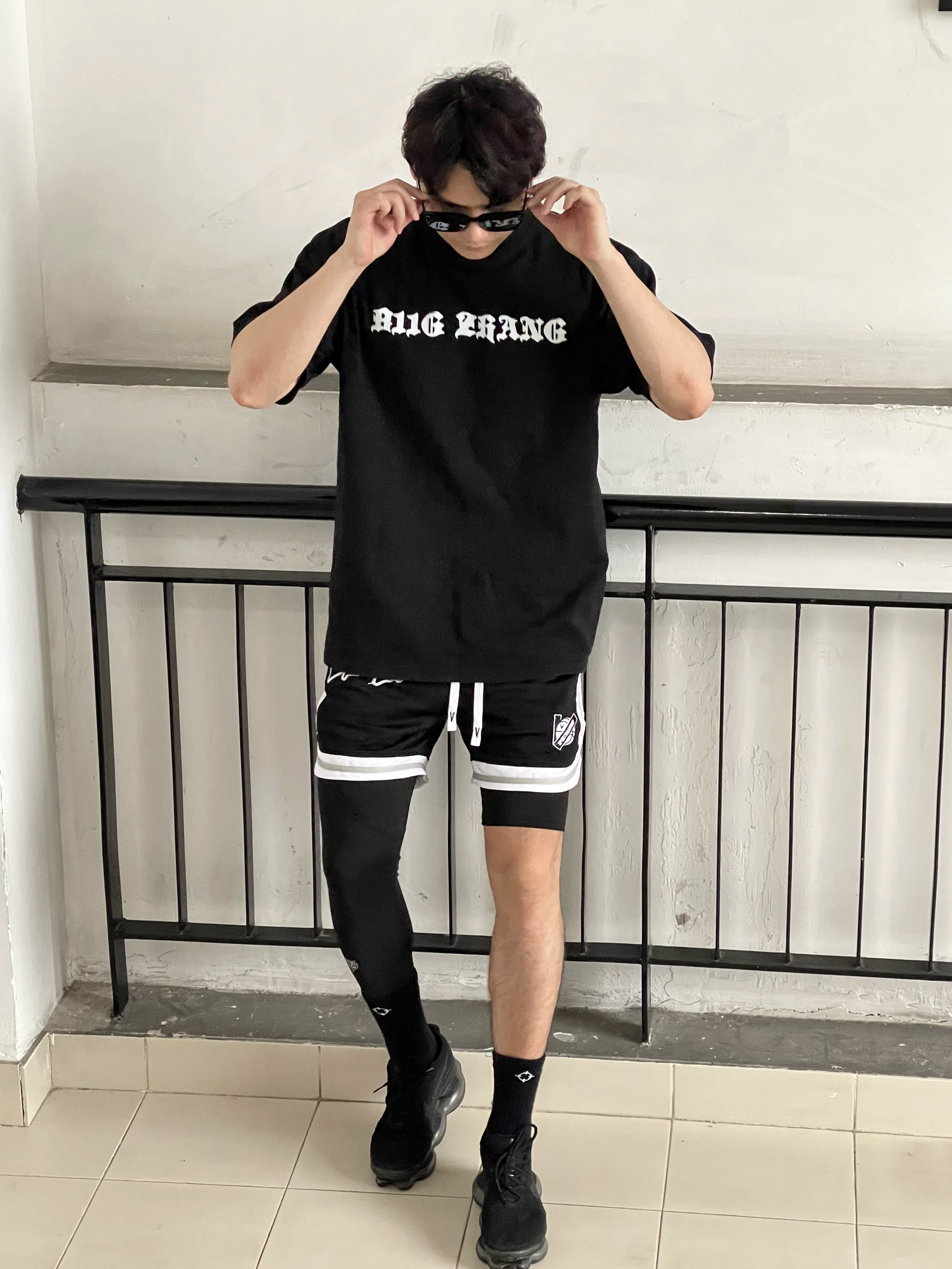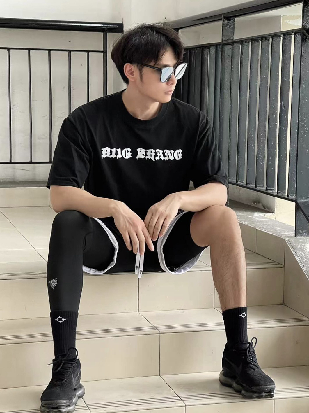 ✅今天ootd是黑色系运动穿搭 上身搭配重磅字母短T👕 下身搭配黑白字母短裤🩳 内搭长短款防护裤 让运动更有活力 带墨镜🕶️,是因为穿这样户外walk,也是非常nice