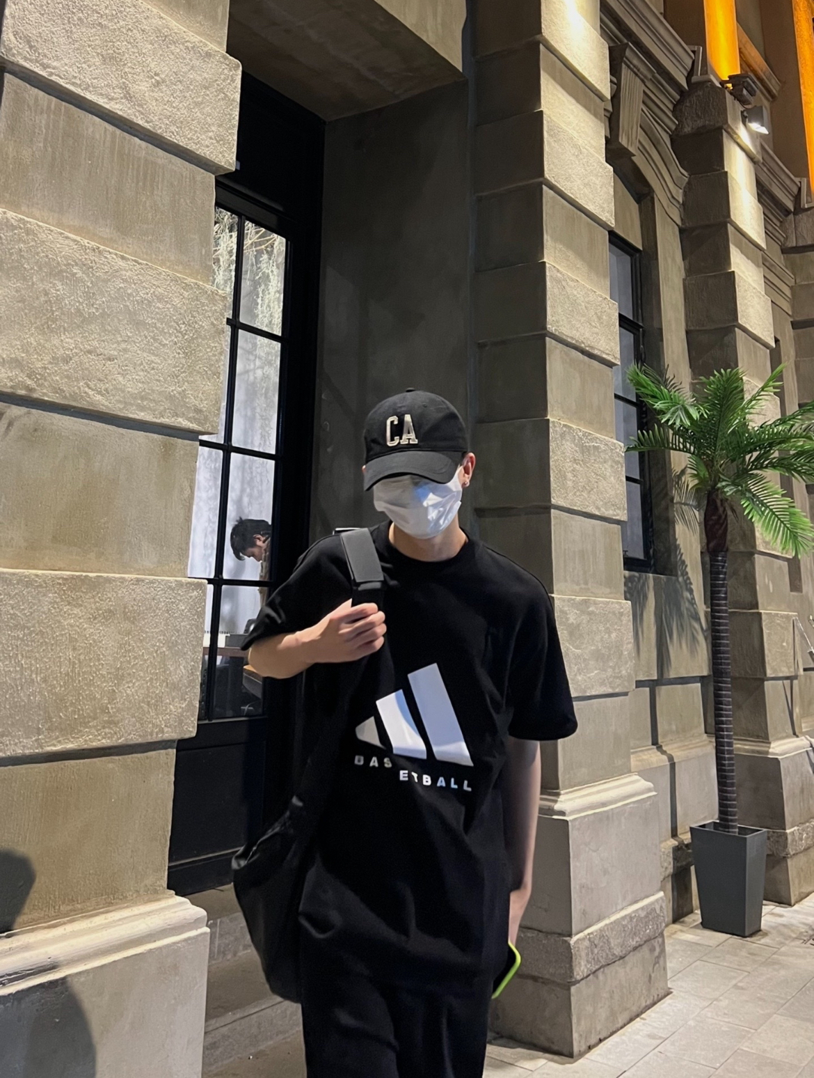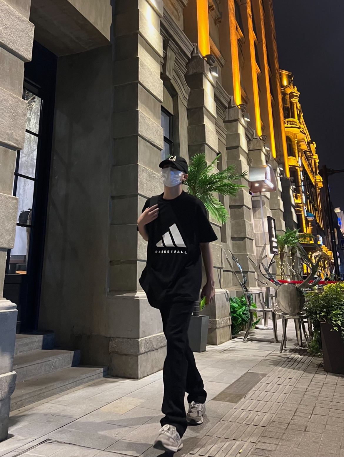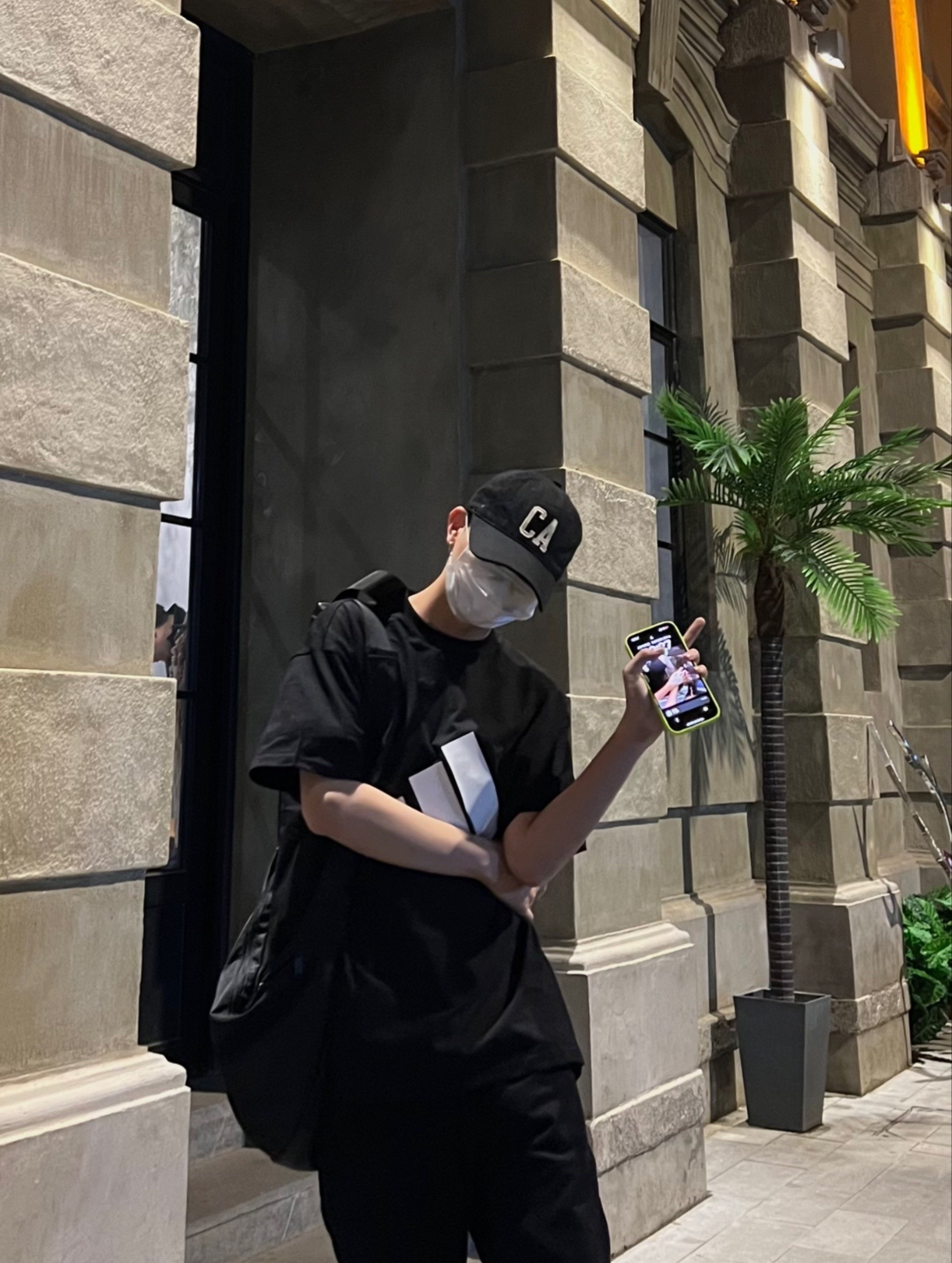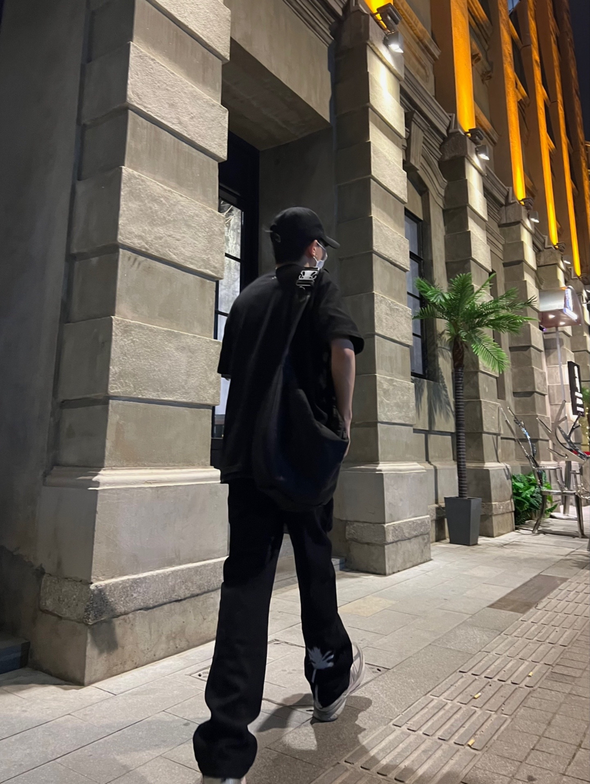 173/51 这一身黑的穿搭真的帅,永远不会出错的配色! 下身穿的是一件一点微喇的黑色牛仔裤,穿起来很显腿长,裤脚的椰子树🌴印花,显得很特别!