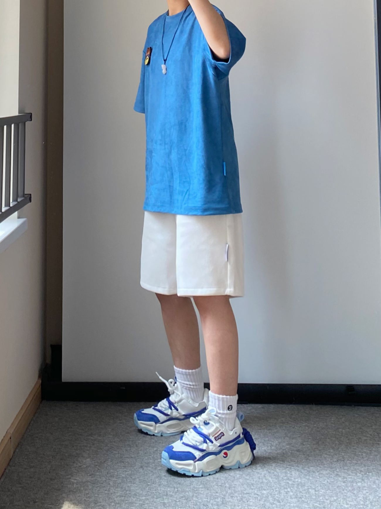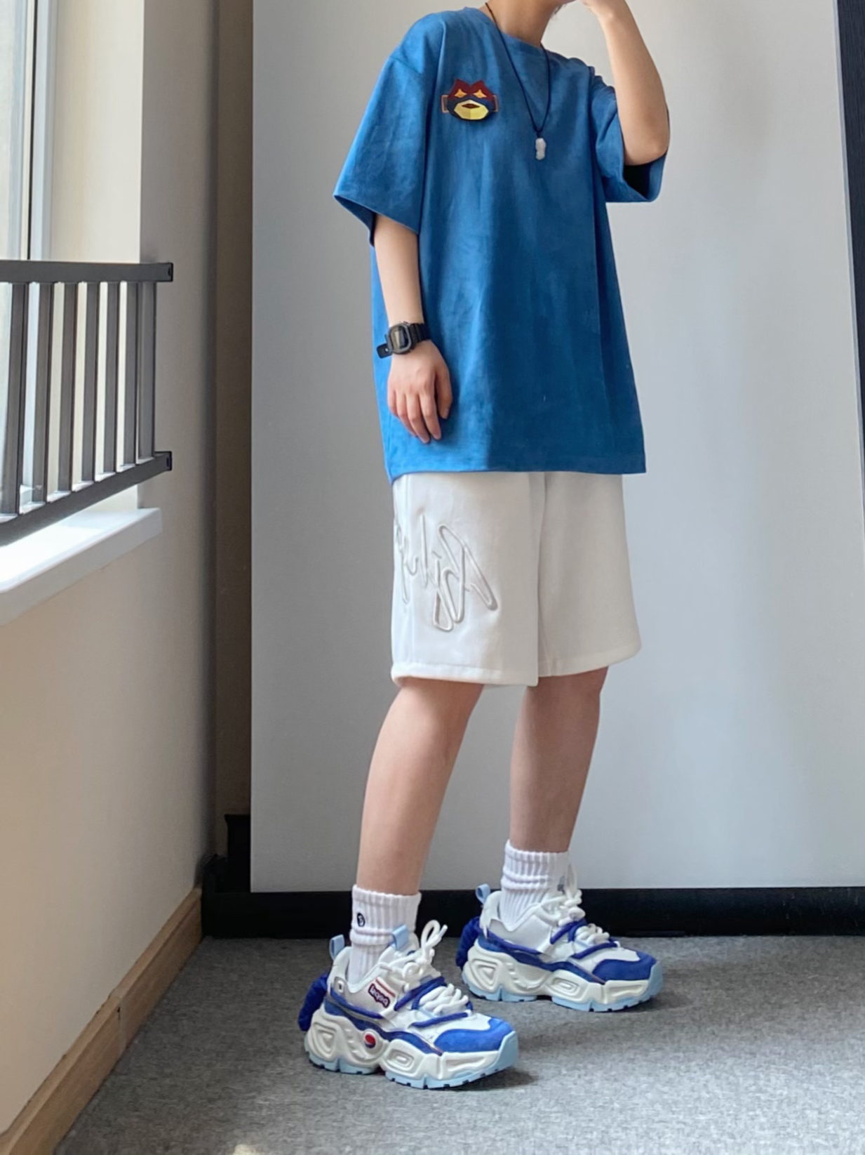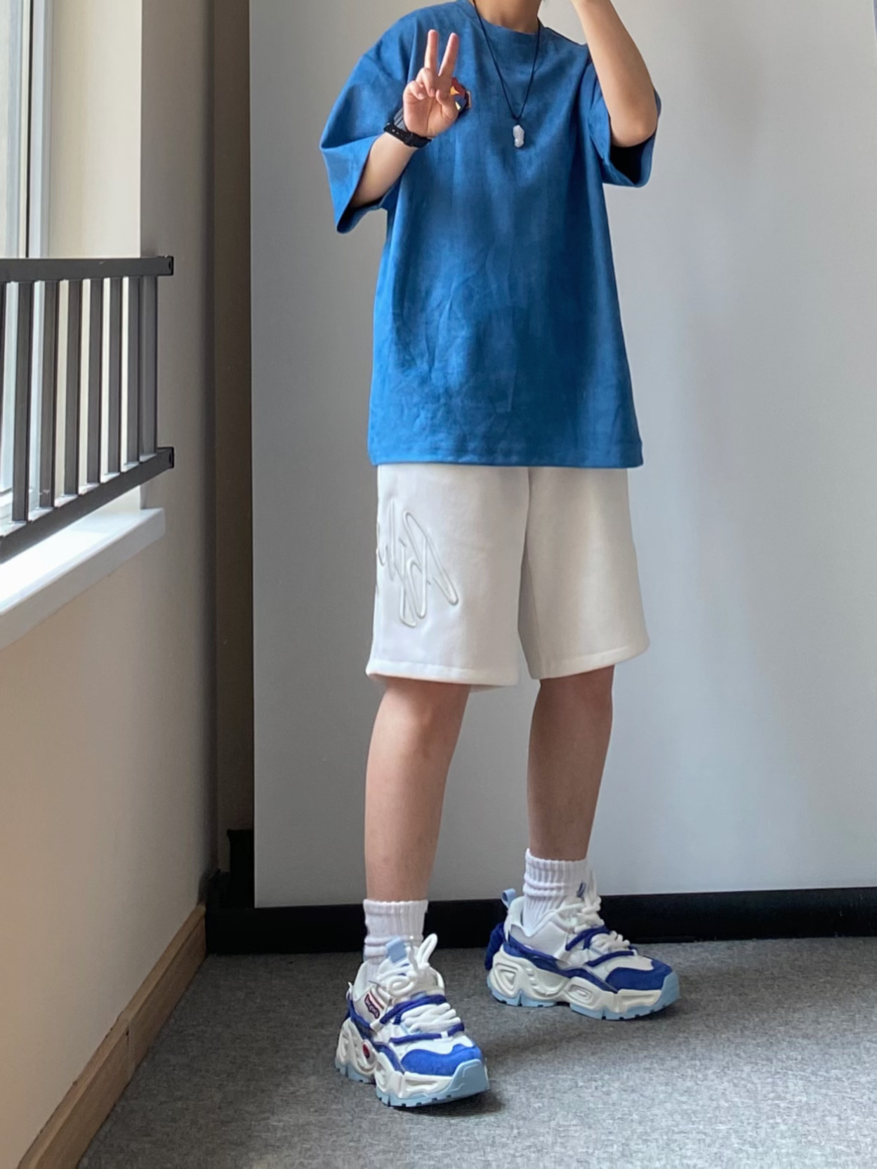 挖趣✨玩具蓝这样搭也太帅了! 最近很喜欢的一件Tee 夏天穿出去拍照也太出片了!📷 搭配一双白➕蓝色的百事果冻老爹鞋 活力感满满🏃 双鞋带的设计很有层次感 增高效果我感觉有5-6厘米了🤣 矮个子男生的福音 上身可以视觉效果拉伸身材比例