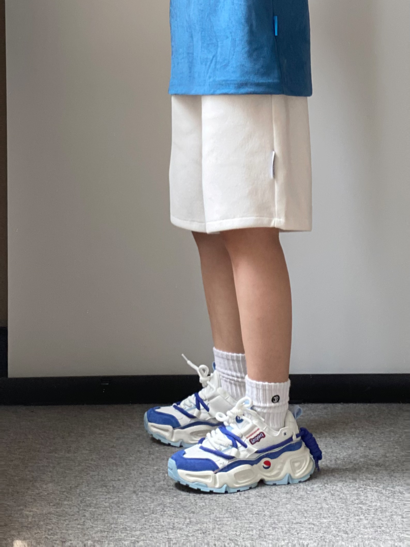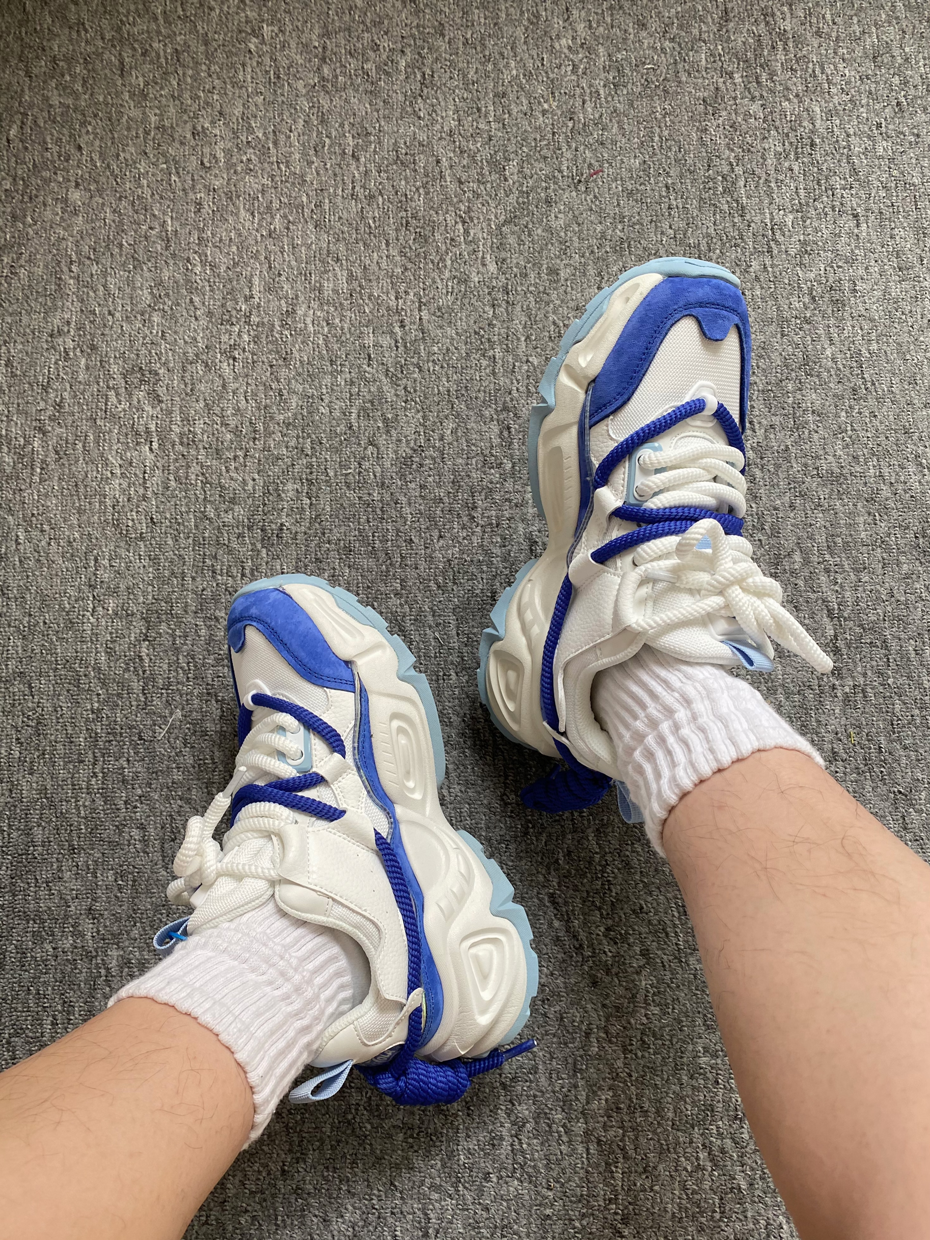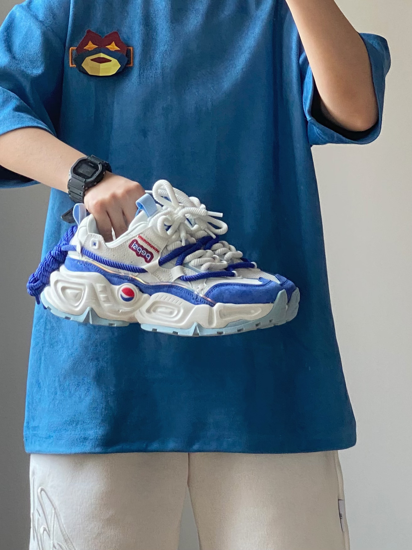 挖趣✨玩具蓝这样搭也太帅了! 最近很喜欢的一件Tee 夏天穿出去拍照也太出片了!📷 搭配一双白➕蓝色的百事果冻老爹鞋 活力感满满🏃 双鞋带的设计很有层次感 增高效果我感觉有5-6厘米了🤣 矮个子男生的福音 上身可以视觉效果拉伸身材比例