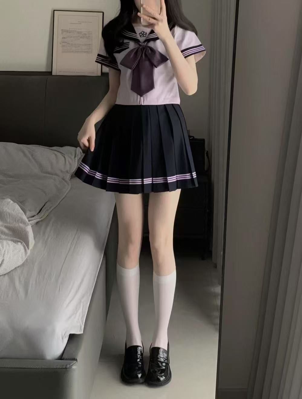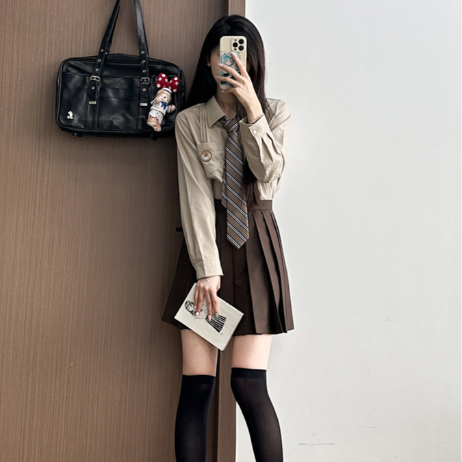 一套衬衫领带+百褶裙套装,让你秒变学院范儿。小衬衫带来的正式感和百褶裙的甜美,完美结合,凸显女性魅力。不仅显高显瘦,还能展现出优雅与知性。选择深色系,更有年轻的质感。无论是上班、约会还是日常穿搭,都能轻松驾驭。 (图片来自网络,侵删)
