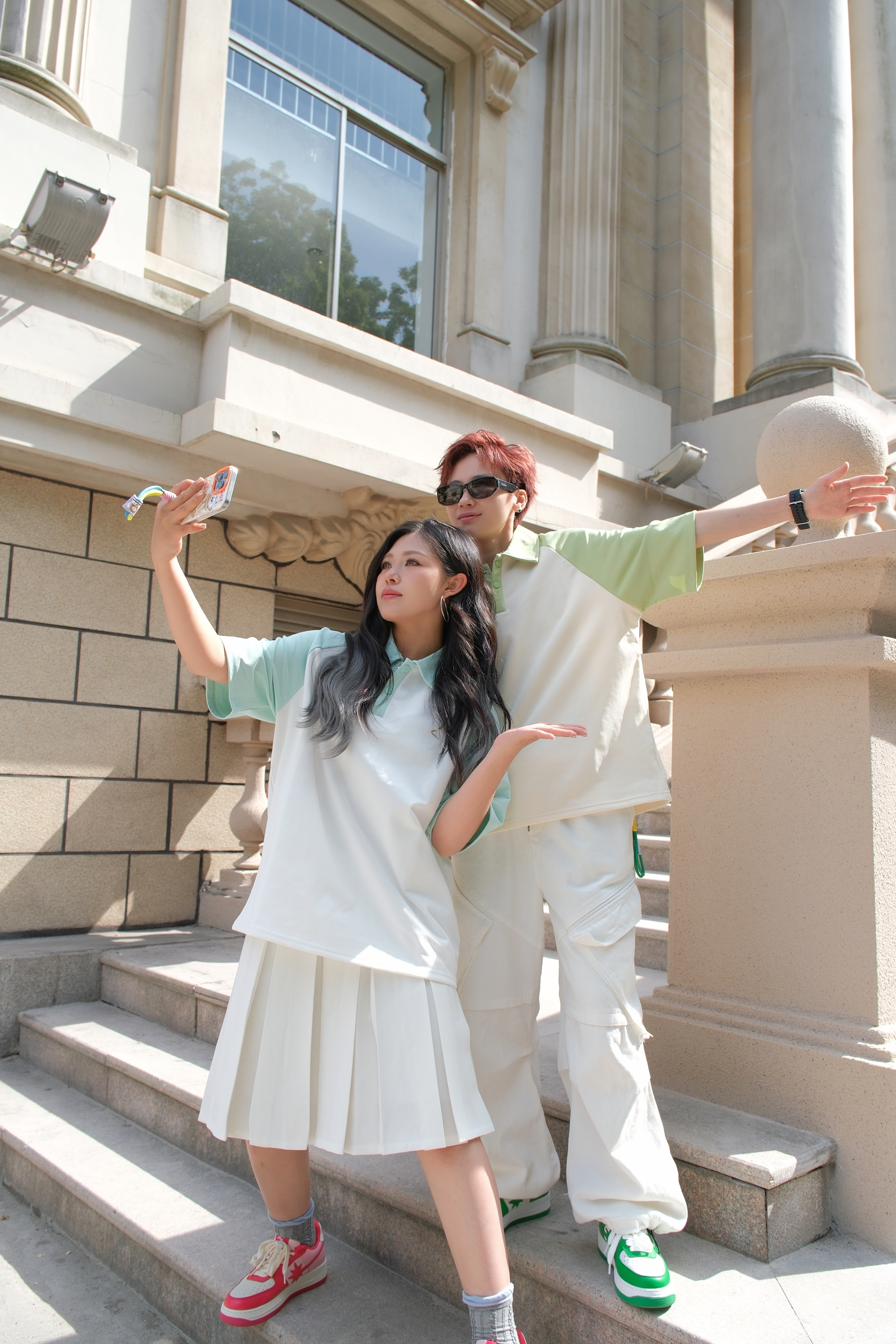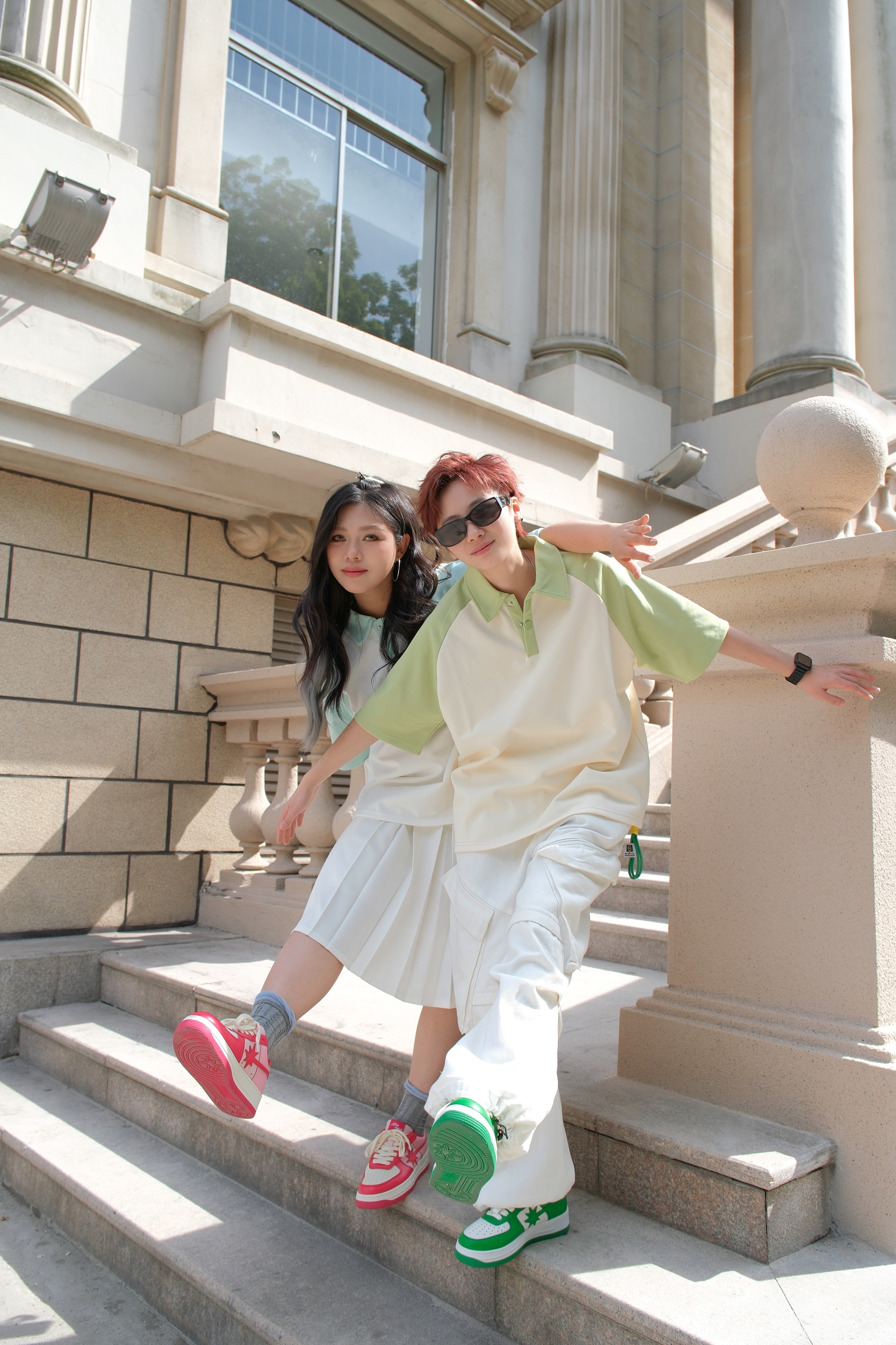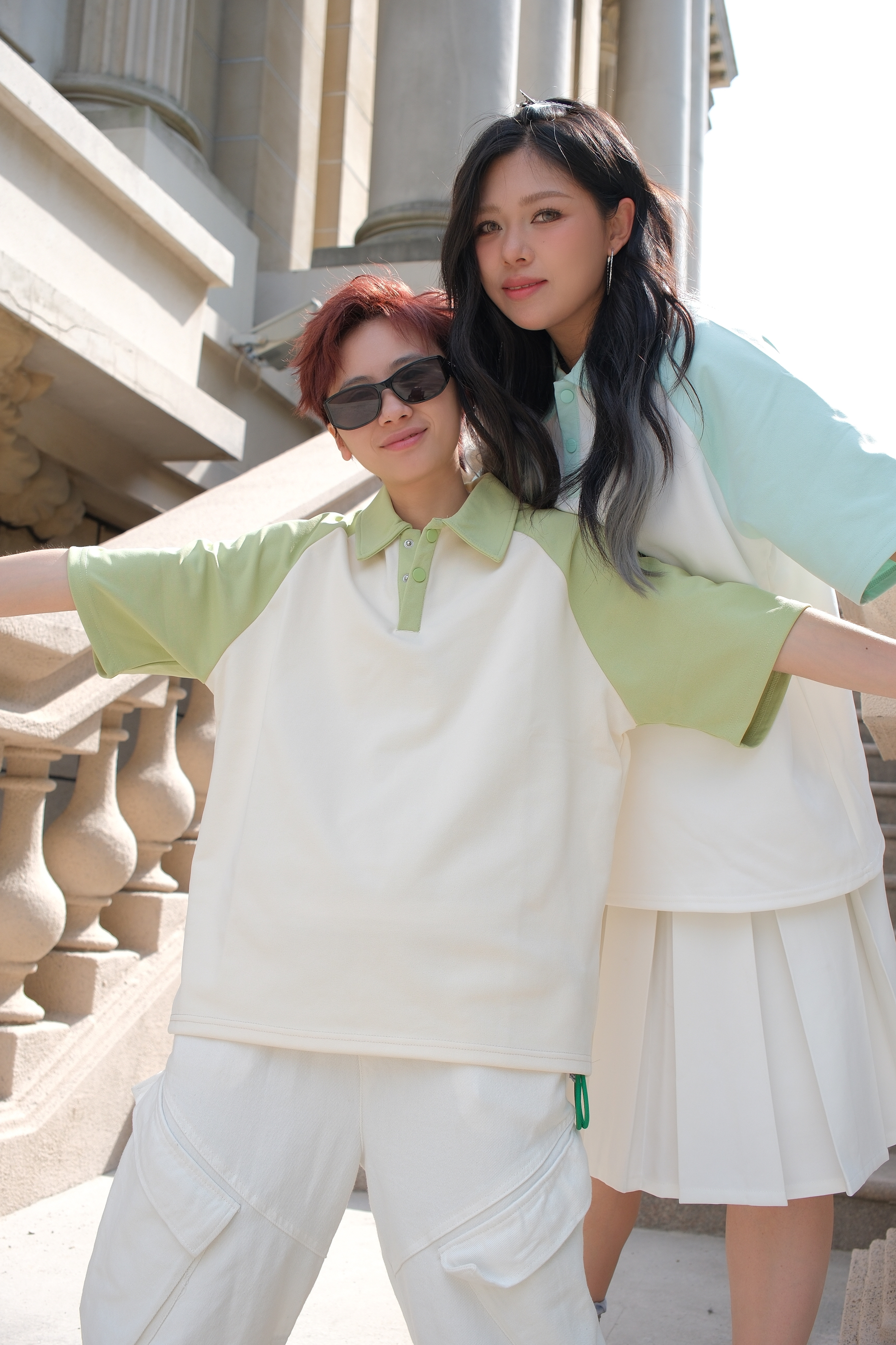 今年流行的薄荷曼波穿搭,今天也算是穿上了 👱🏻:一件米色和果绿色拼接的POLO衫,上身非常清新,自带干净的少年感,下身搭配白色直筒工装裤,白色搭一切,可以说是懒人不费力出门的穿搭公式了。最后来一双白绿拼色板鞋,和上衣呼应起来。侧边的🌠图案也是很有辨识度,日常又百搭。 👩🏻🦰:上身同款白色和浅果绿拼接的POLO衫,看起来清爽有活力,下身搭配白色半身裙,再来一双板鞋,浅粉色和玫粉色的拼接,上脚有层次...